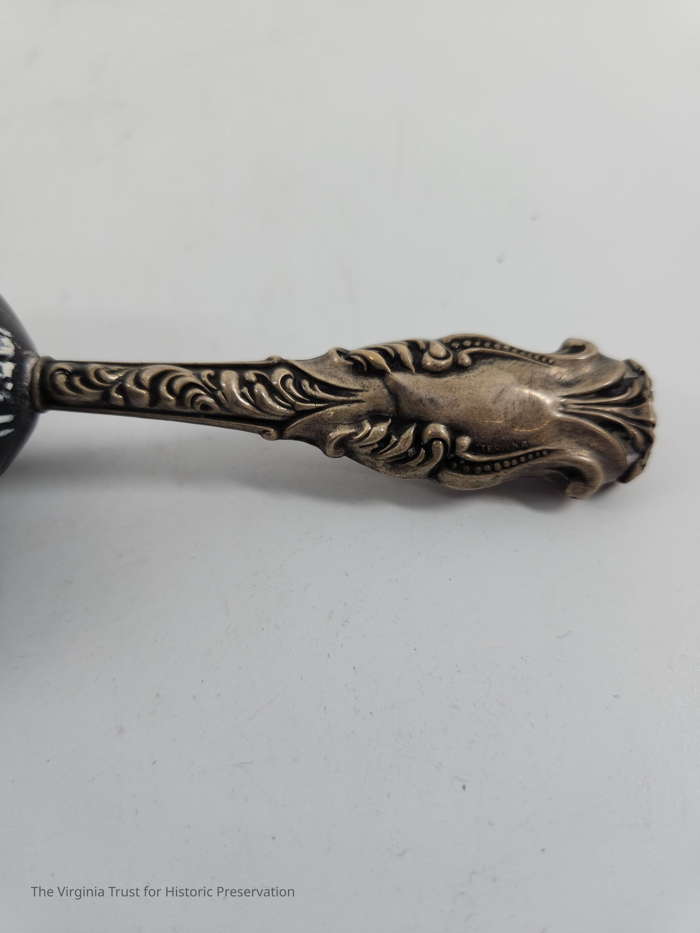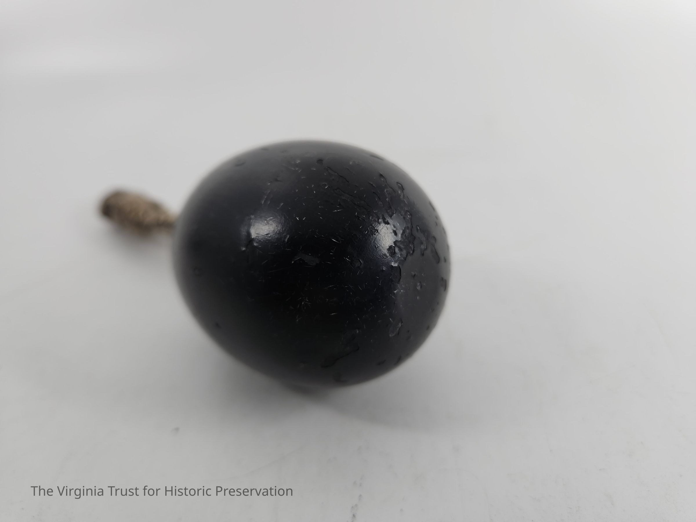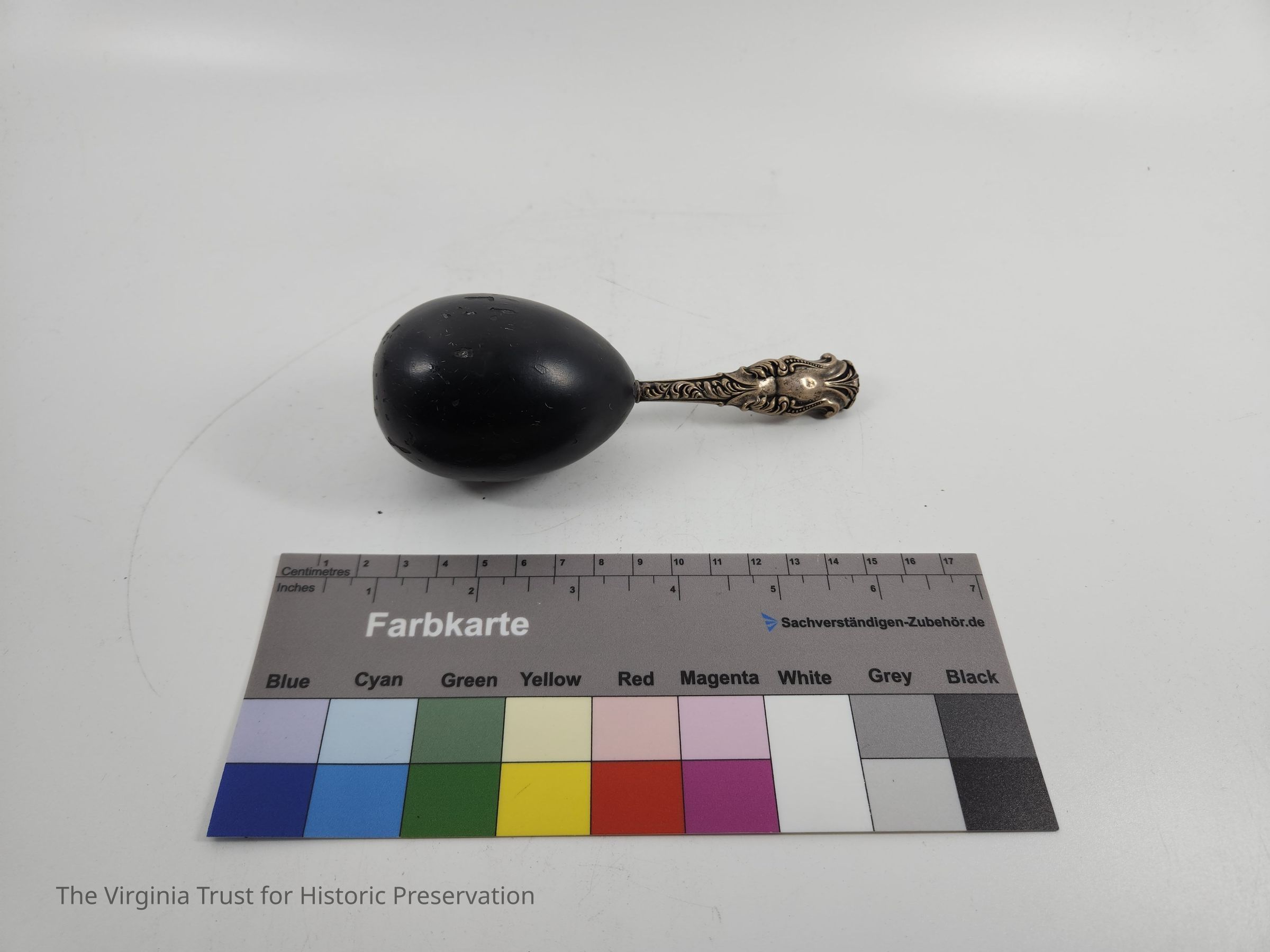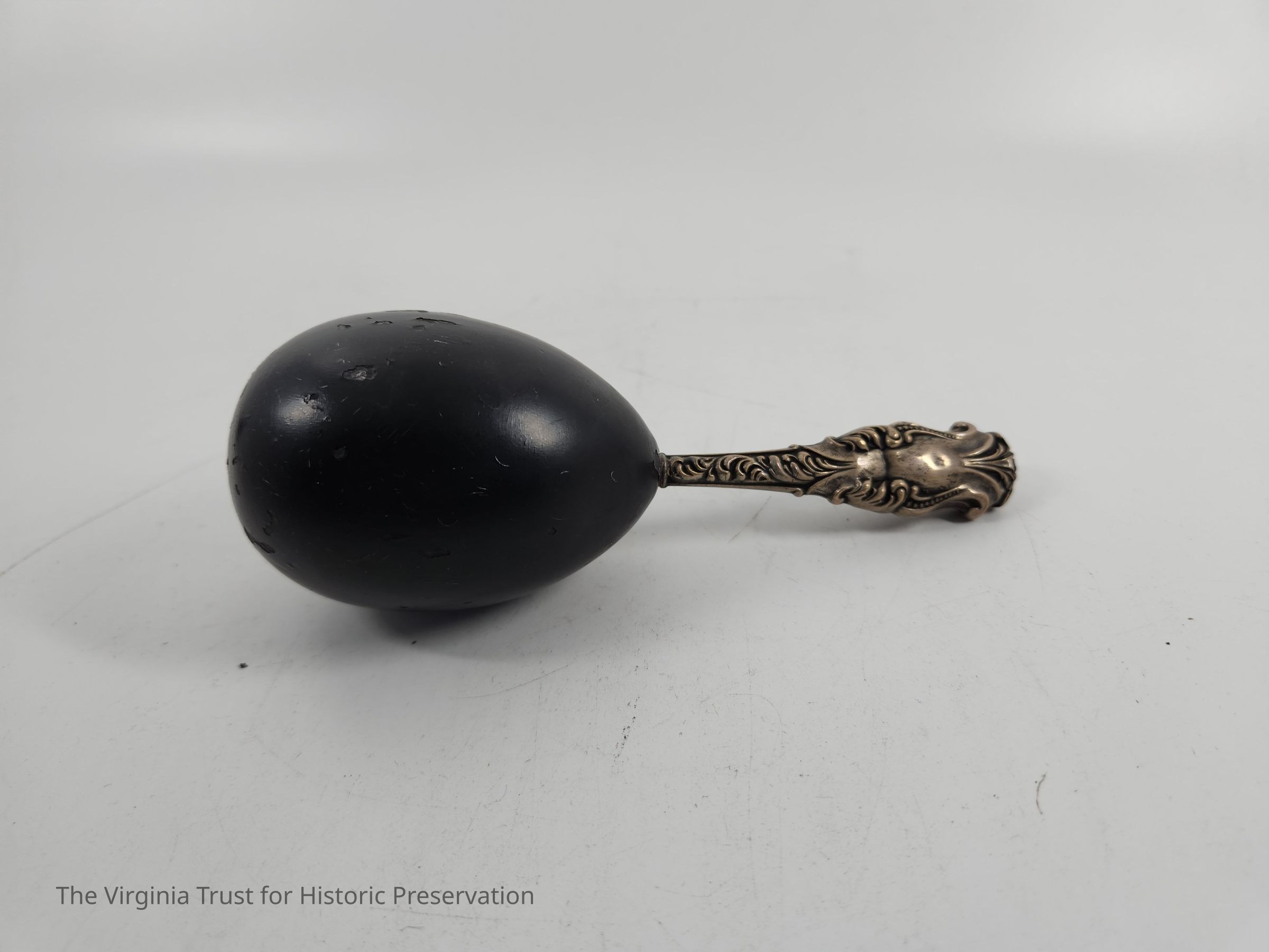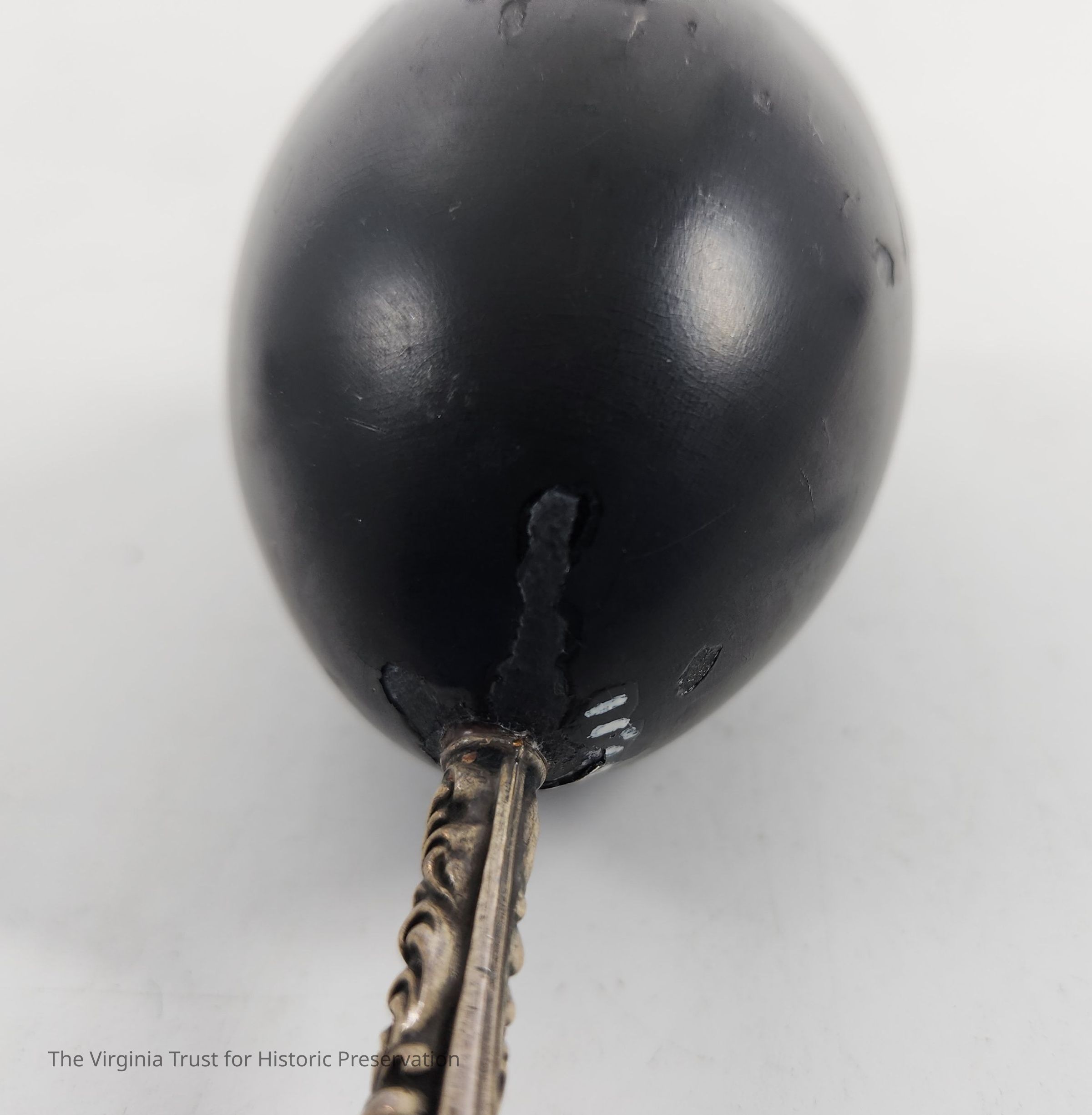 Darning egg or Bodkin. Black wooden "egg" with ornate sterling silver handle.