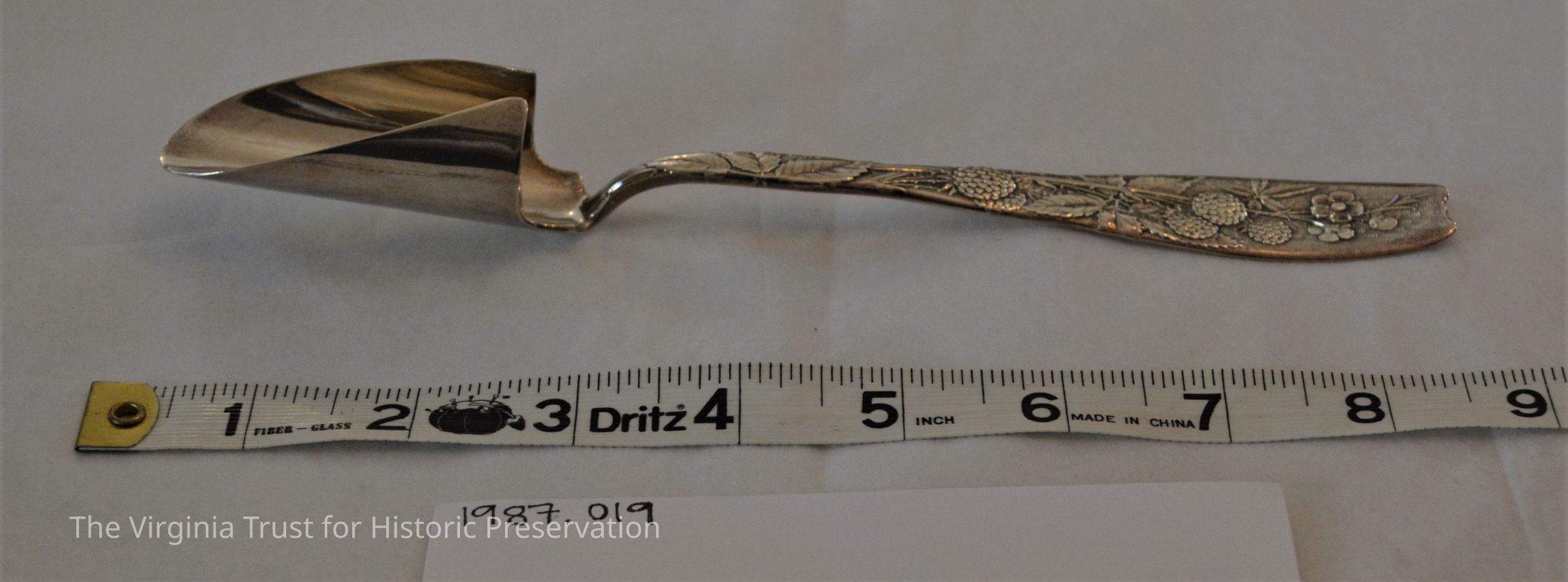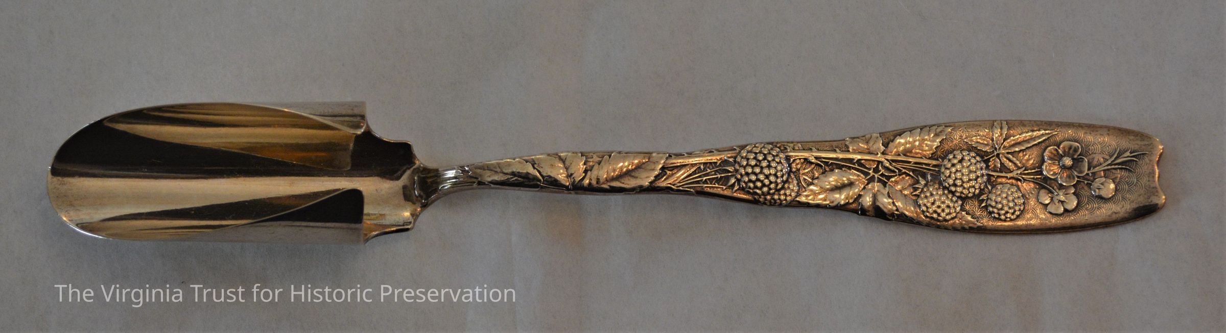 1880 sterling silver cheese scoop or cheese spoon in Whiting Manufacturing Company Berry (black raspberry) pattern.