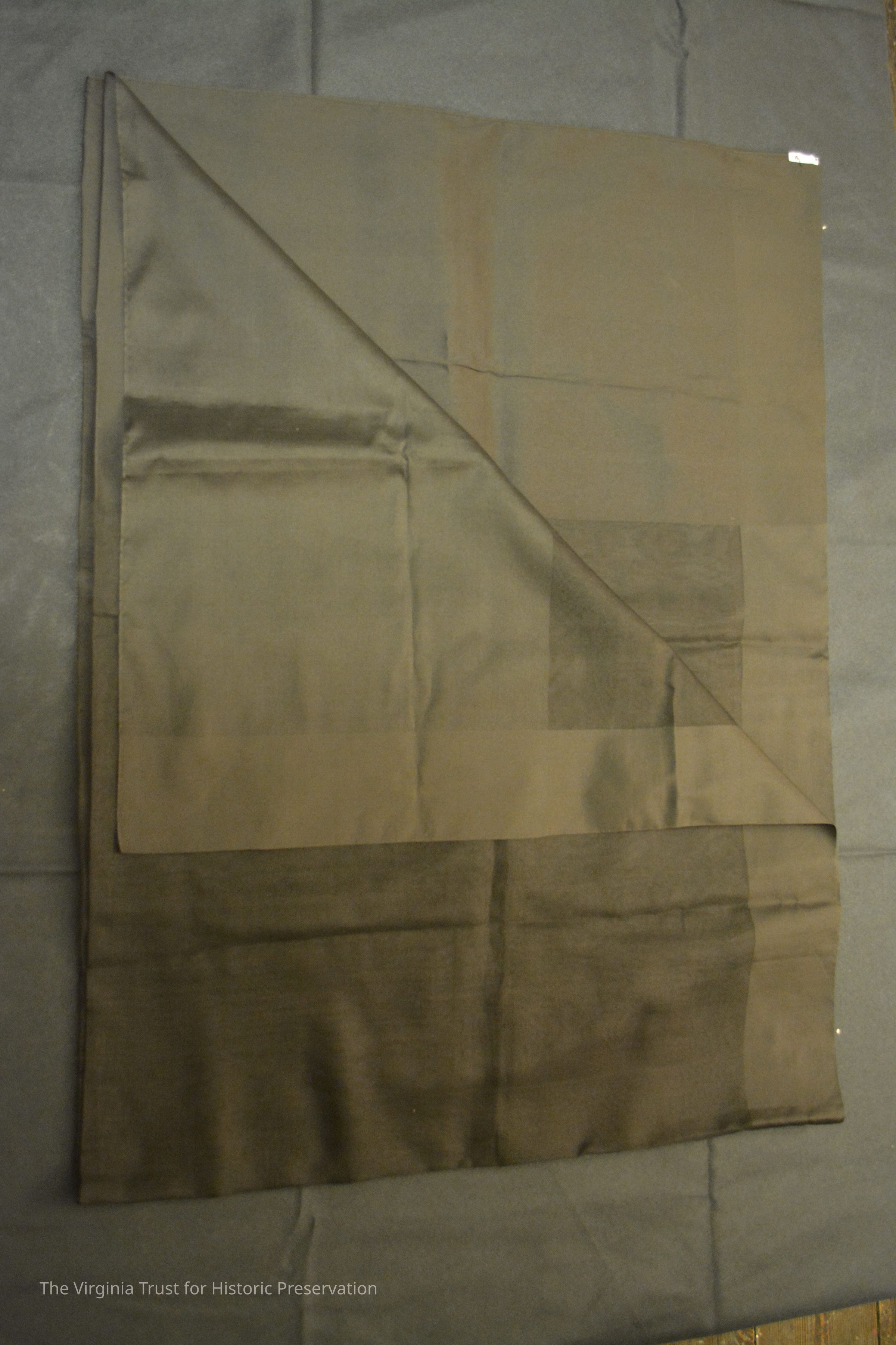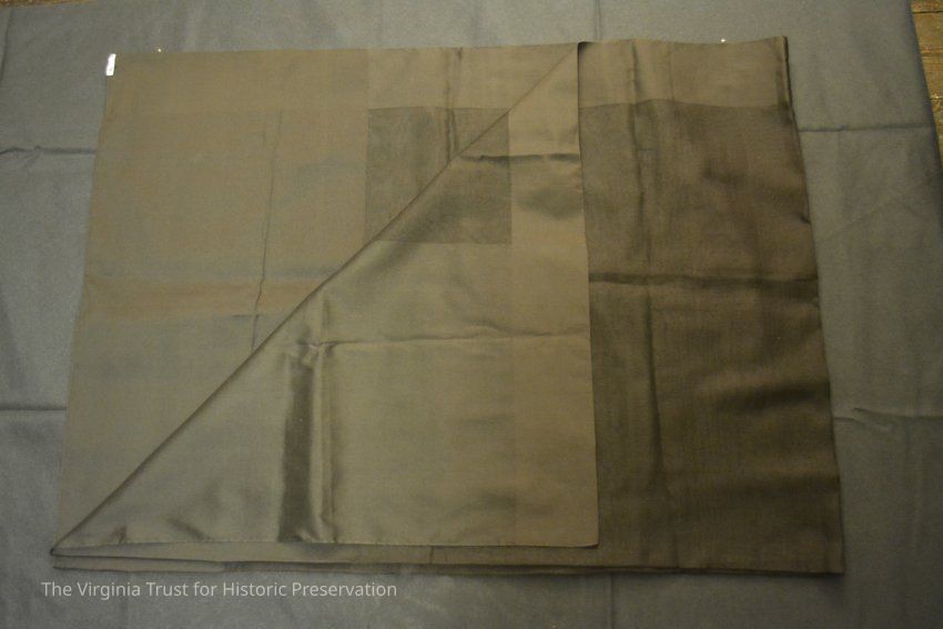 Black mourning veil, with opaque black border. Border is contiguous on all sides, and wider on the short sides than the long sides. Worn during the first stage of mourning.