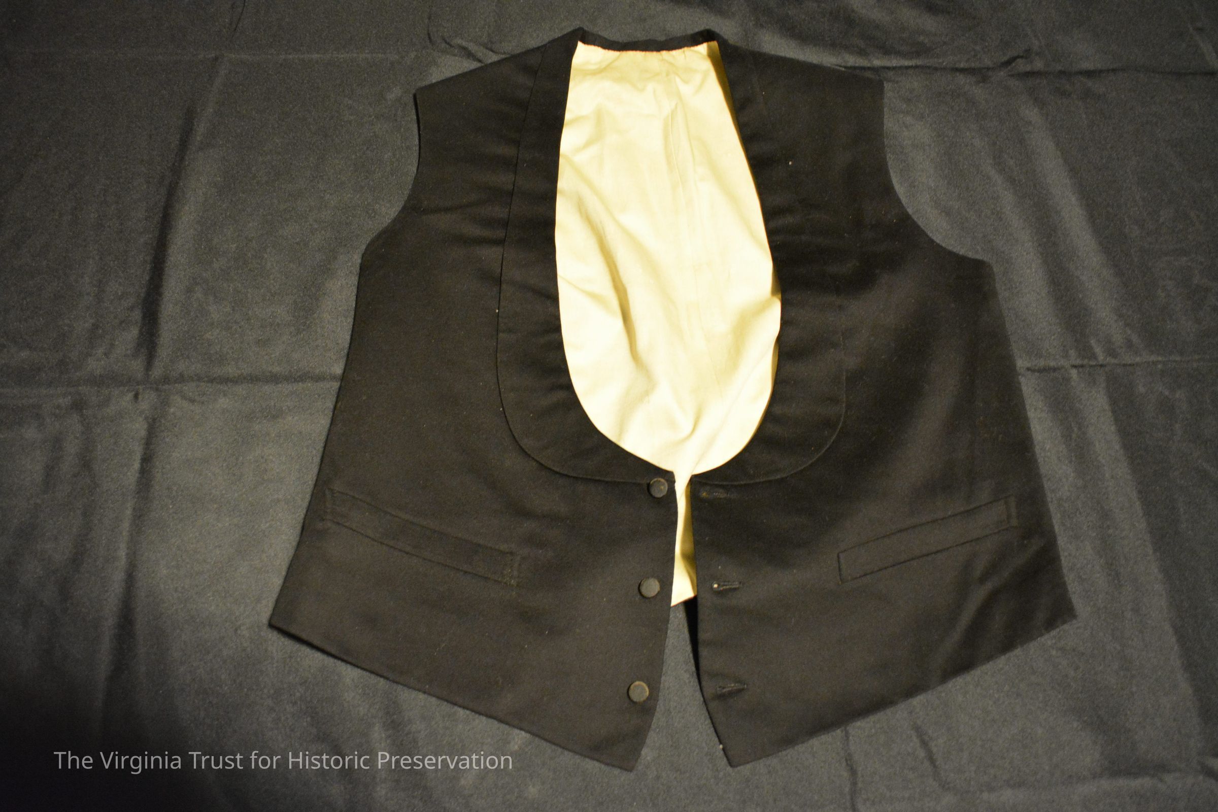 Gentleman's black wool evening suit made by Airey and Wheeler, 129 Regent Street, London. Includes coat, vest, and trousers.