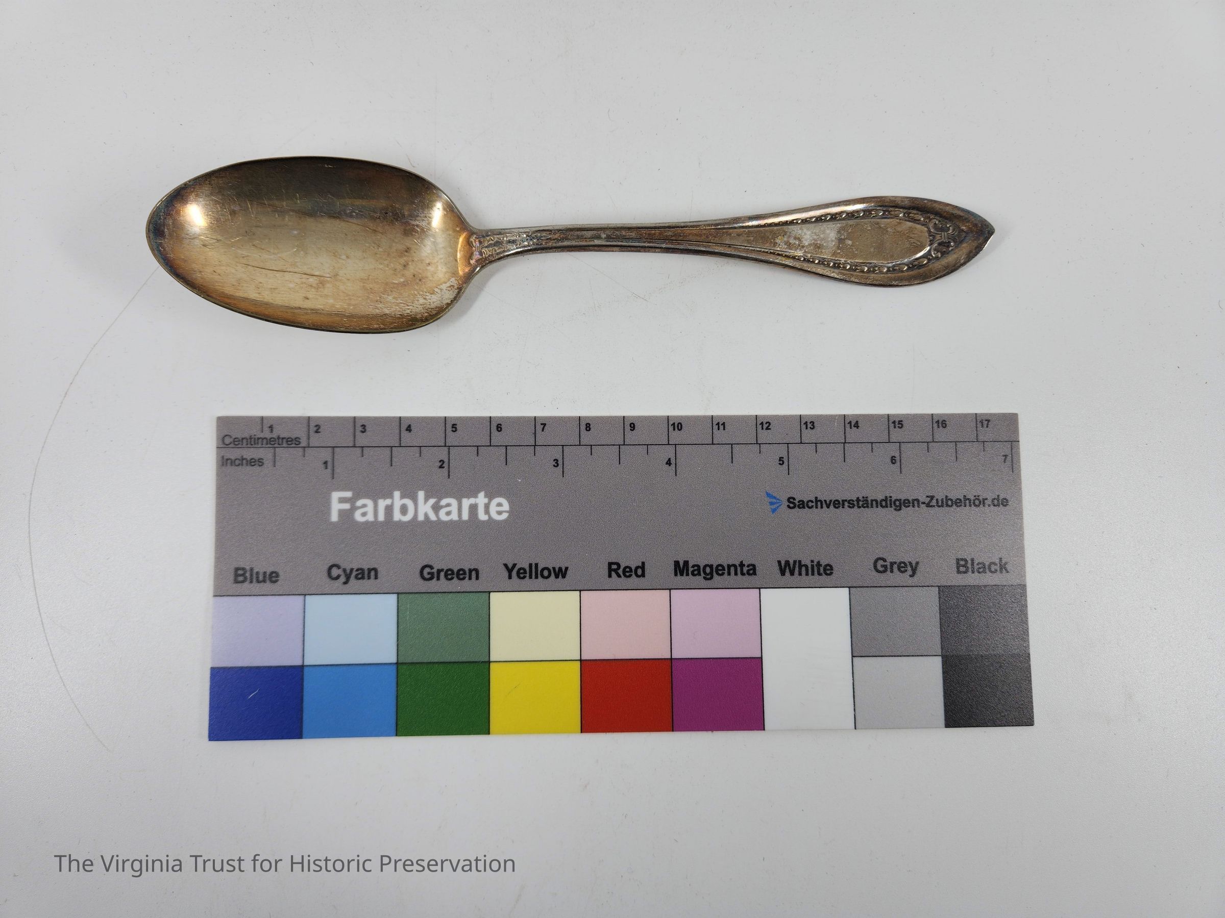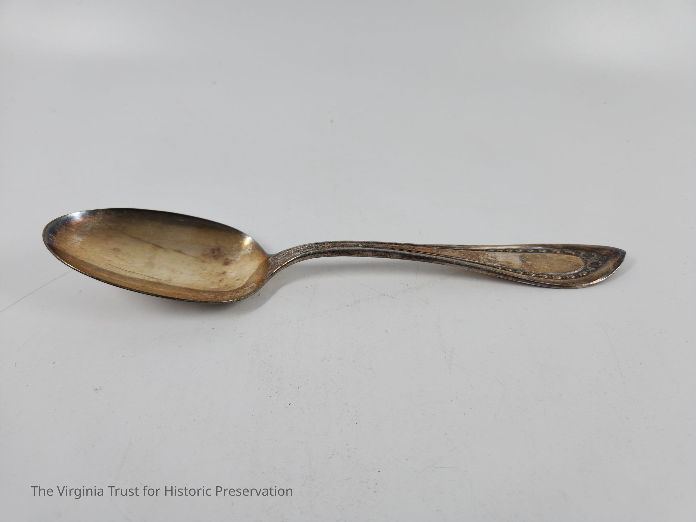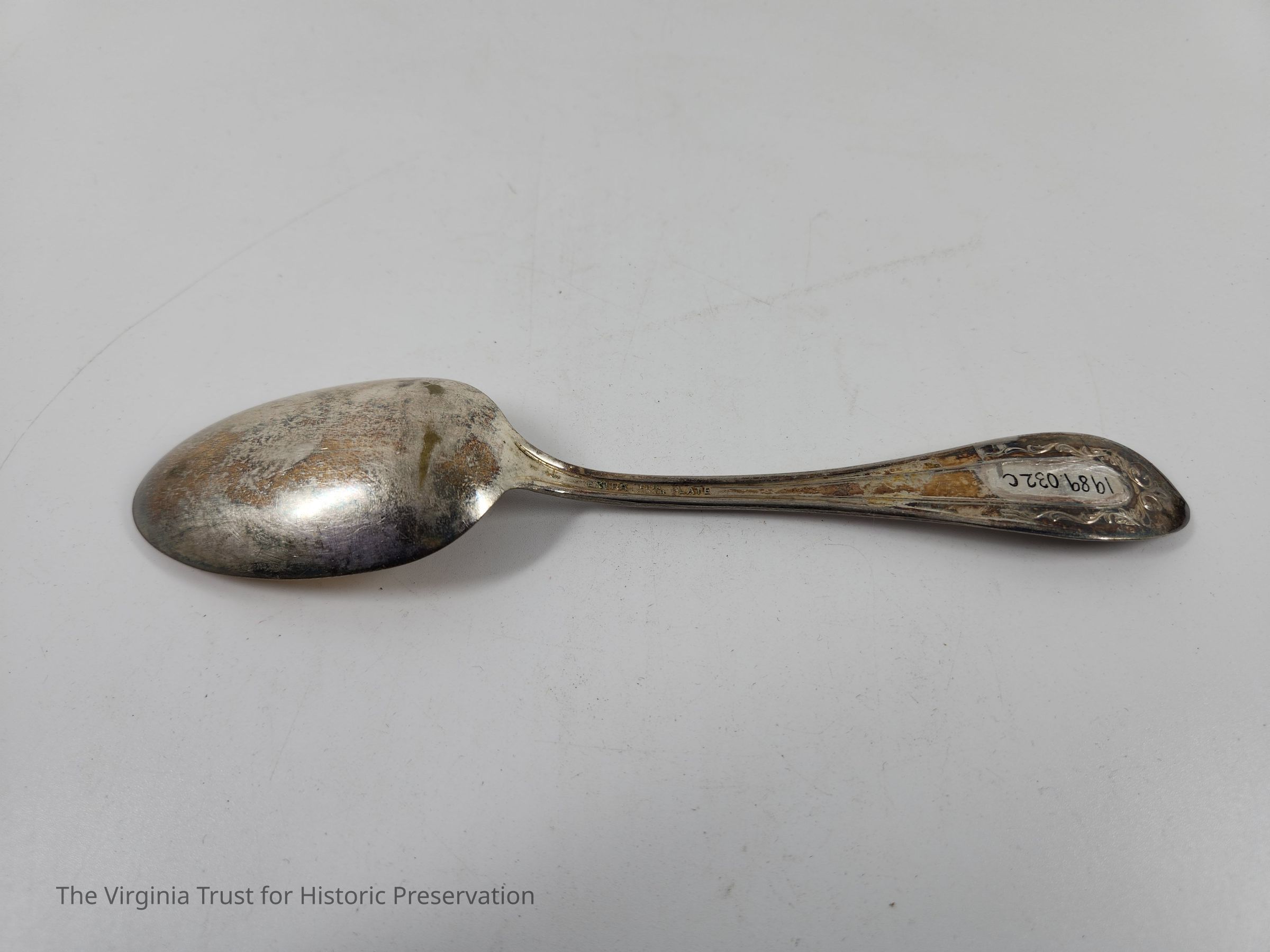 Part of 20 piece set, one of four coin silver dessert spoons in set.