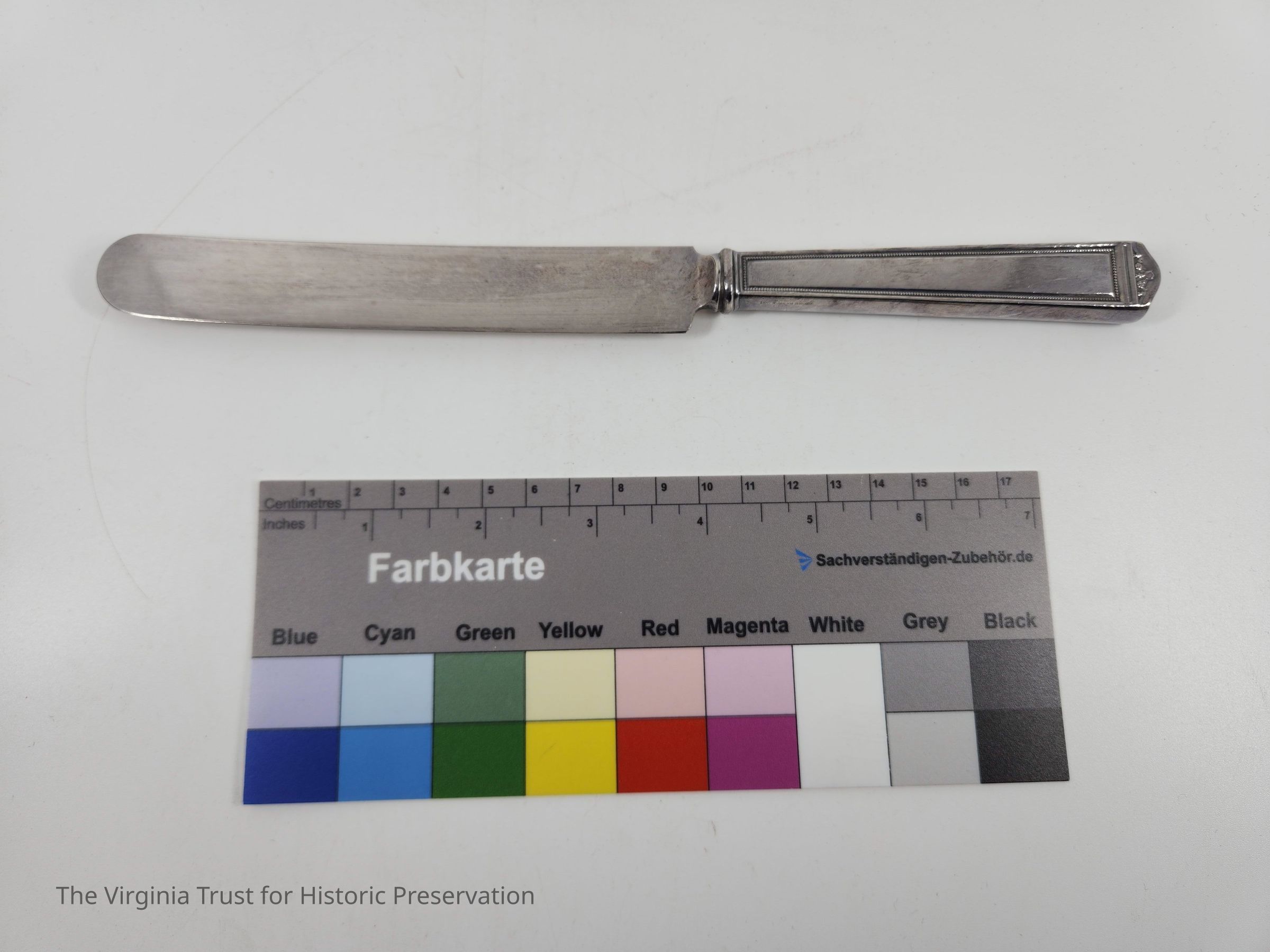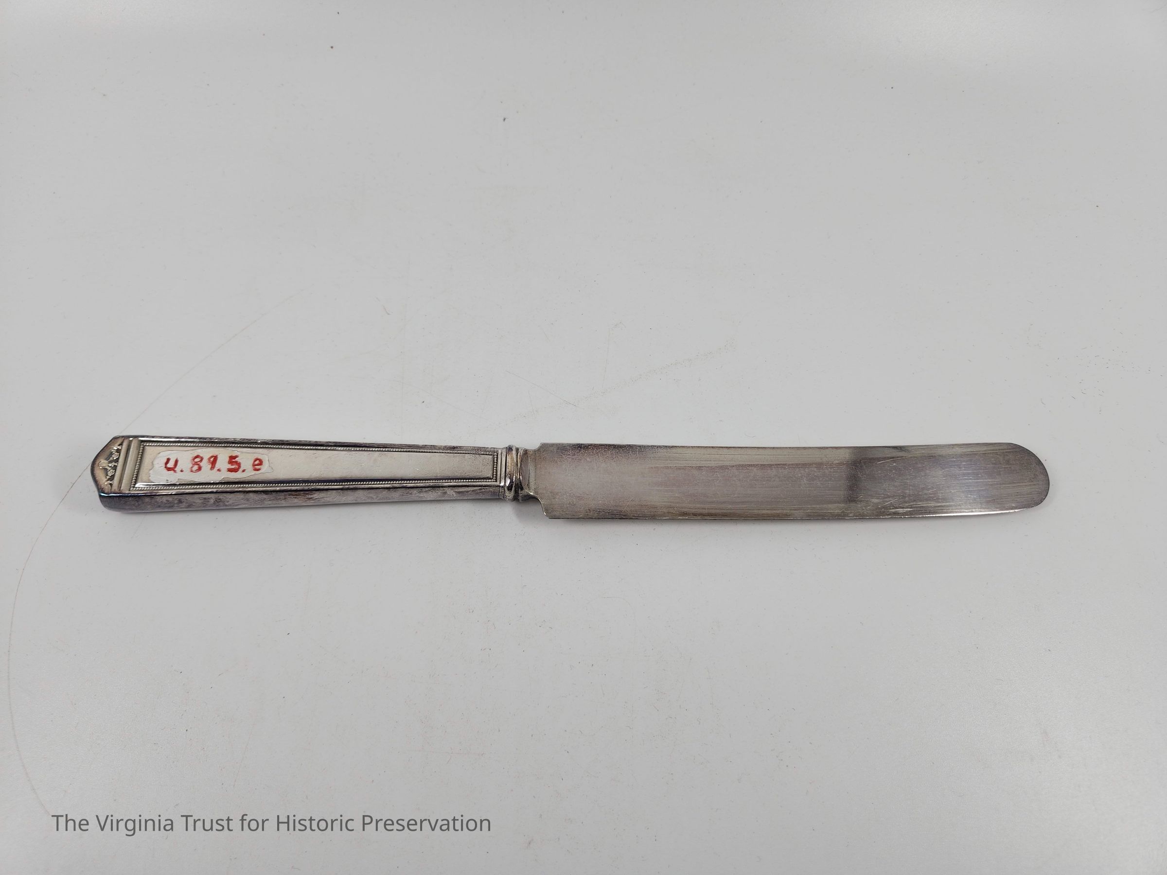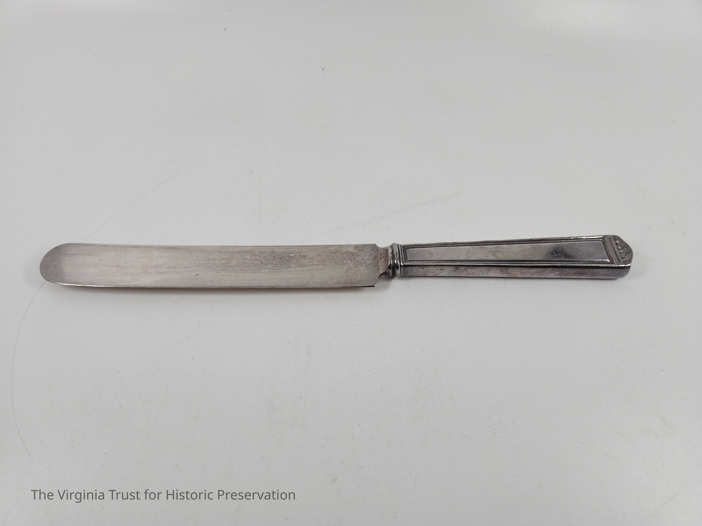 Part of 20 piece set, one of eight coin silver dinner knives in set. 1847 Rogers Bros. Anniversary pattern.