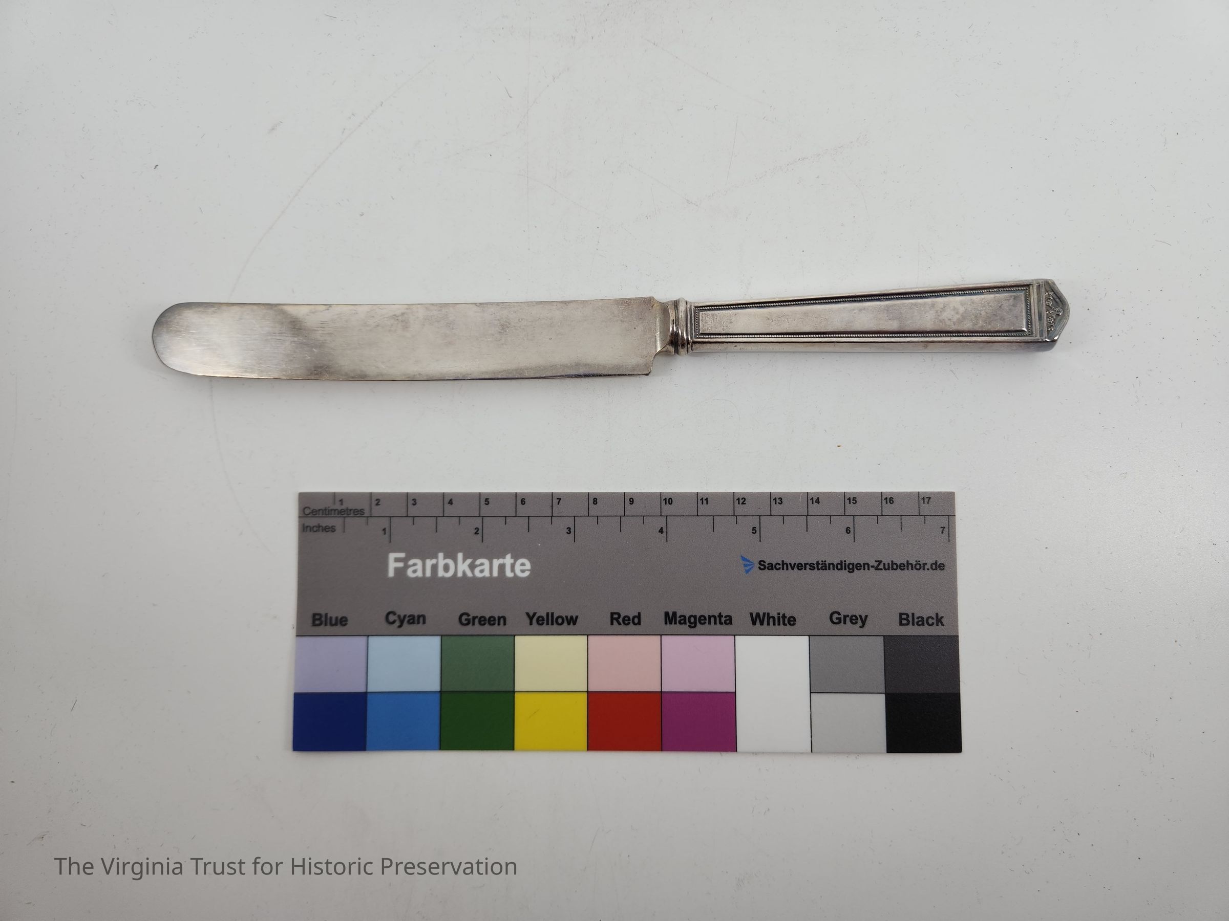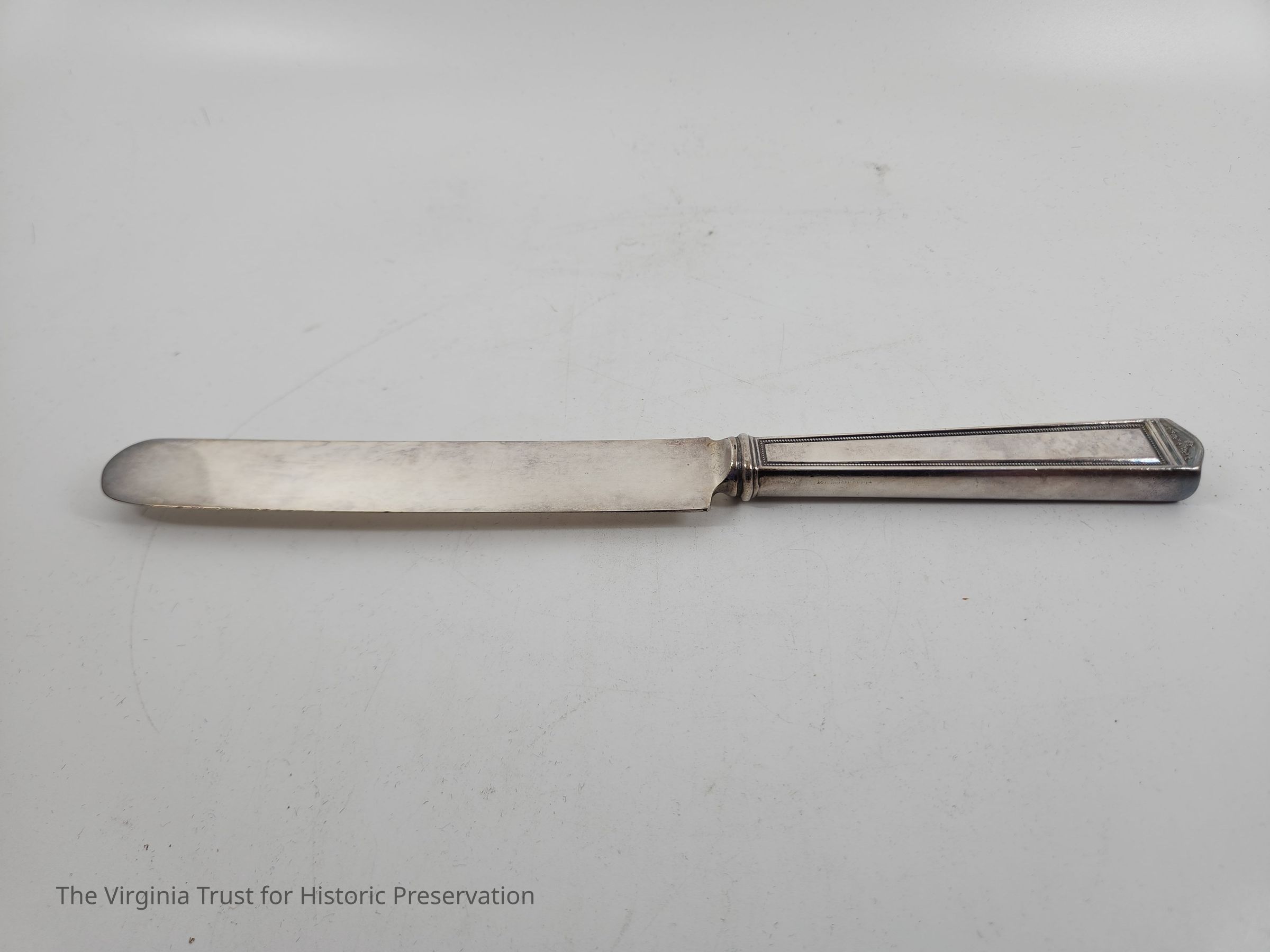Part of 20 piece set, one of eight coin silver dinner knives in set. 1847 Rogers Bros. Anniversary pattern.