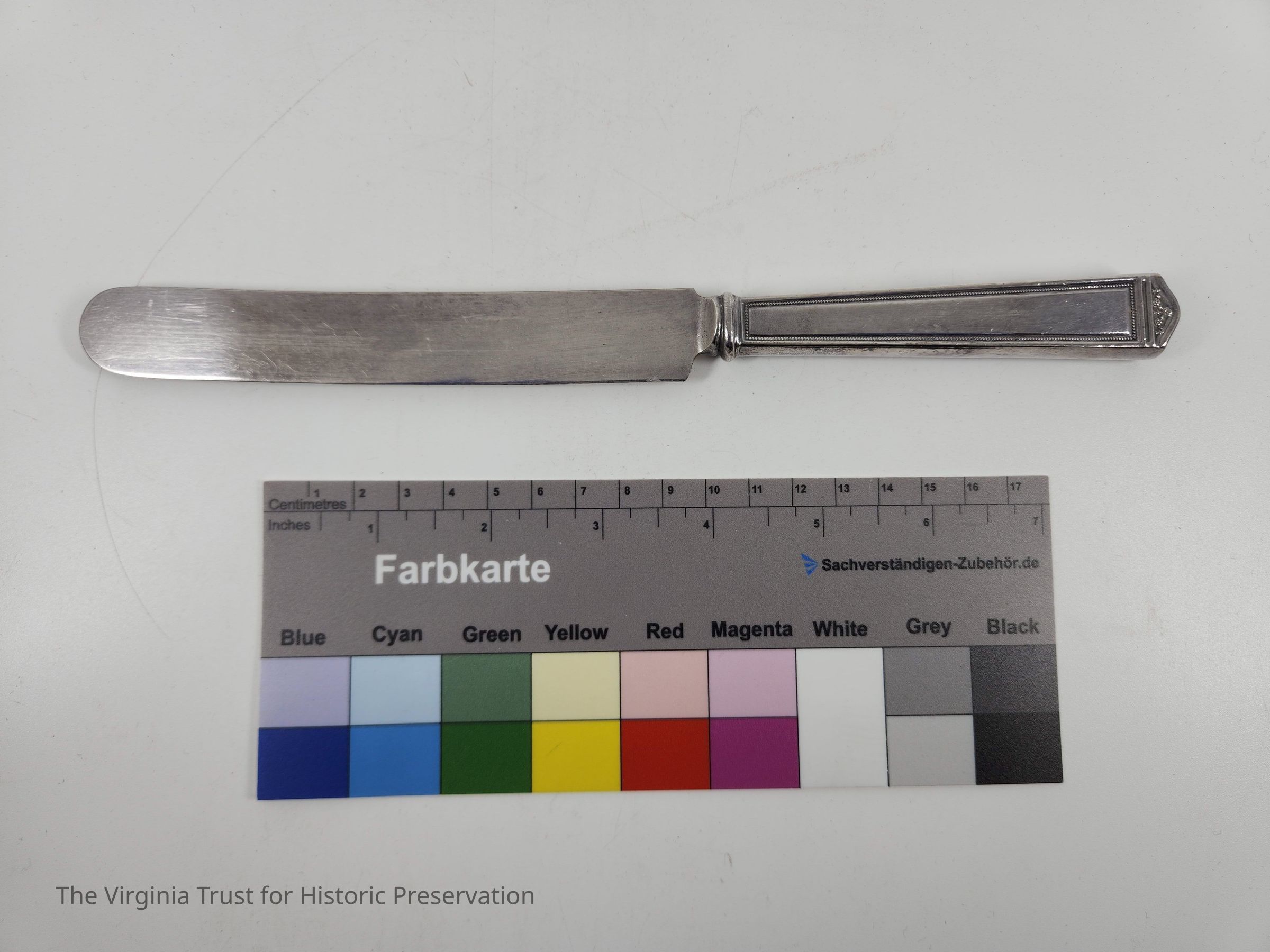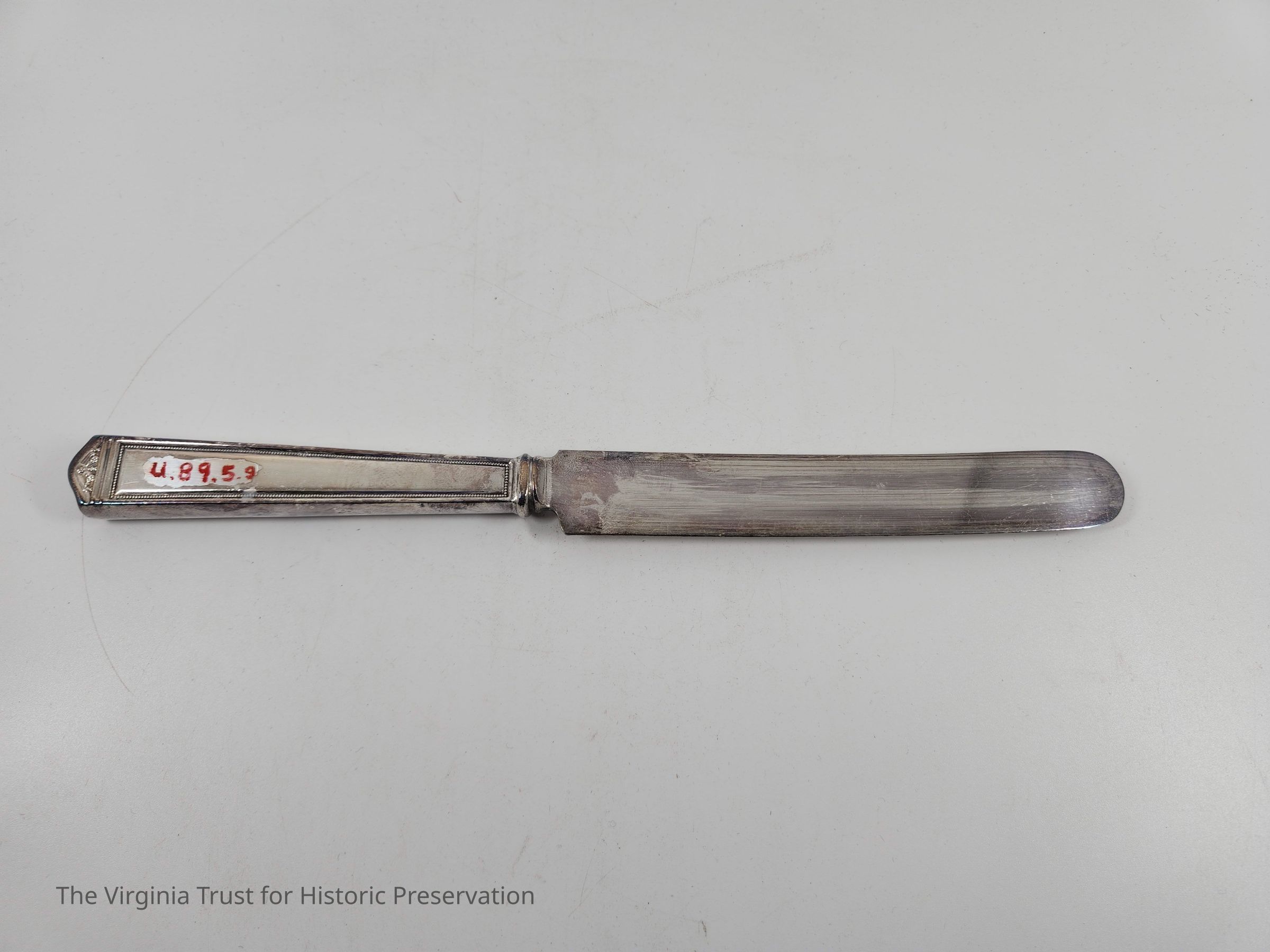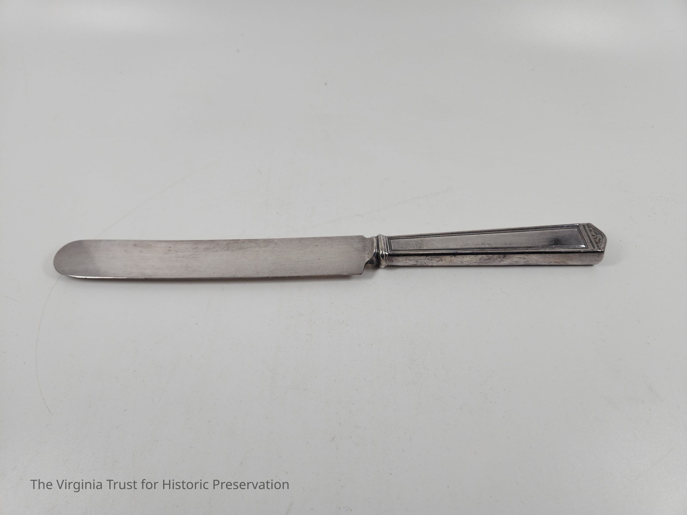 Part of 20 piece set, one of eight coin silver dinner knives in set. 1847 Rogers Bros. Anniversary pattern.