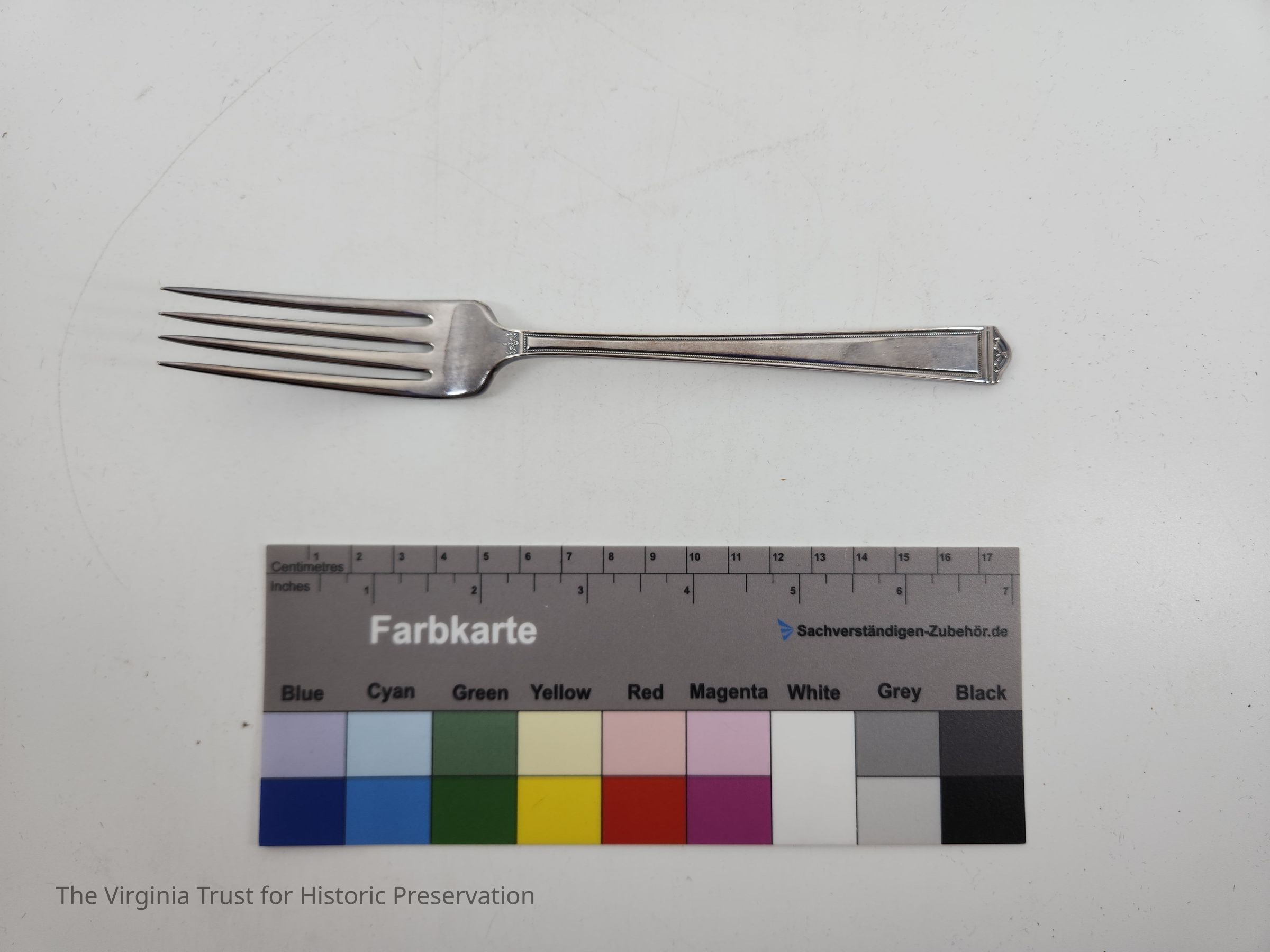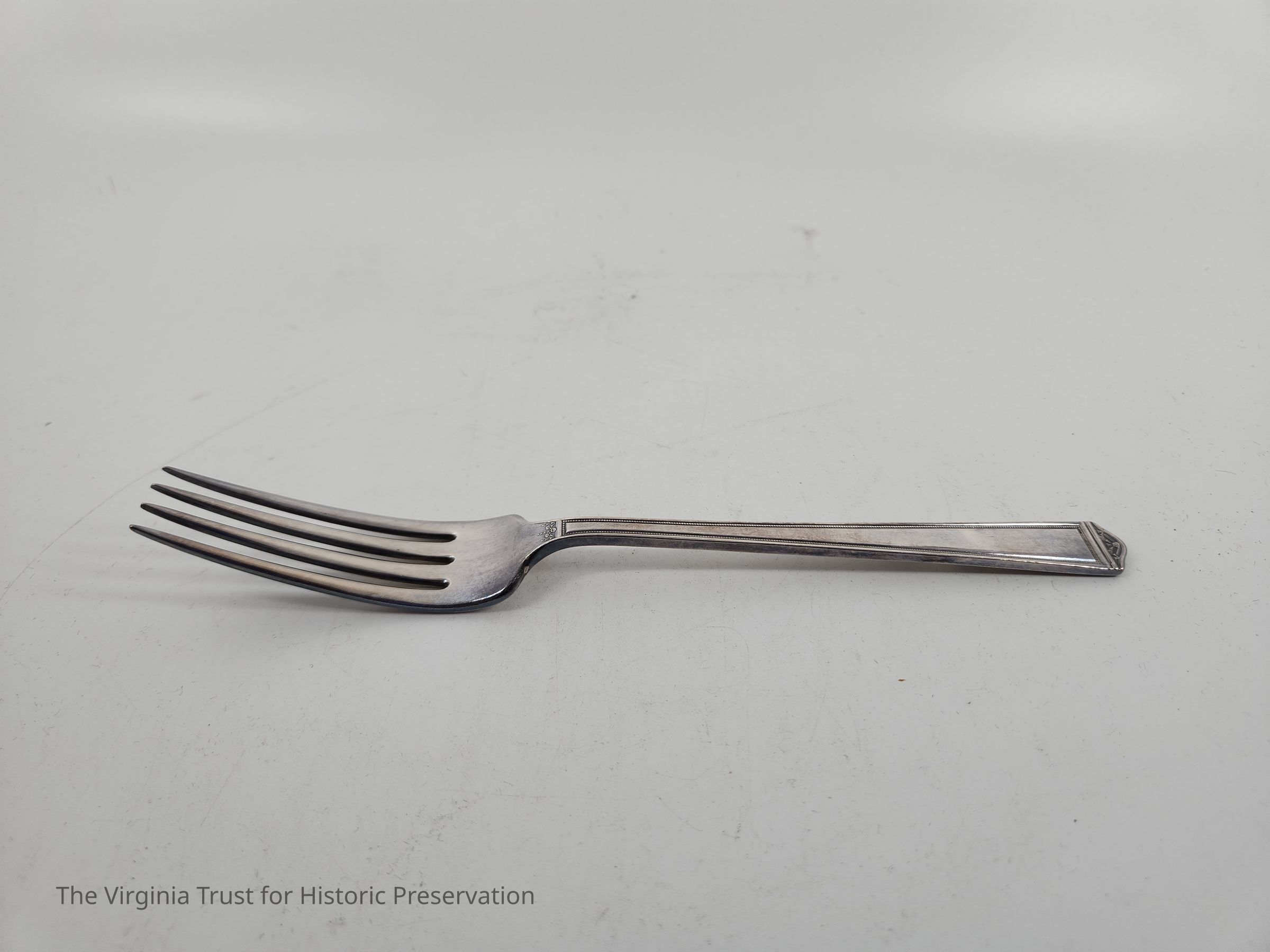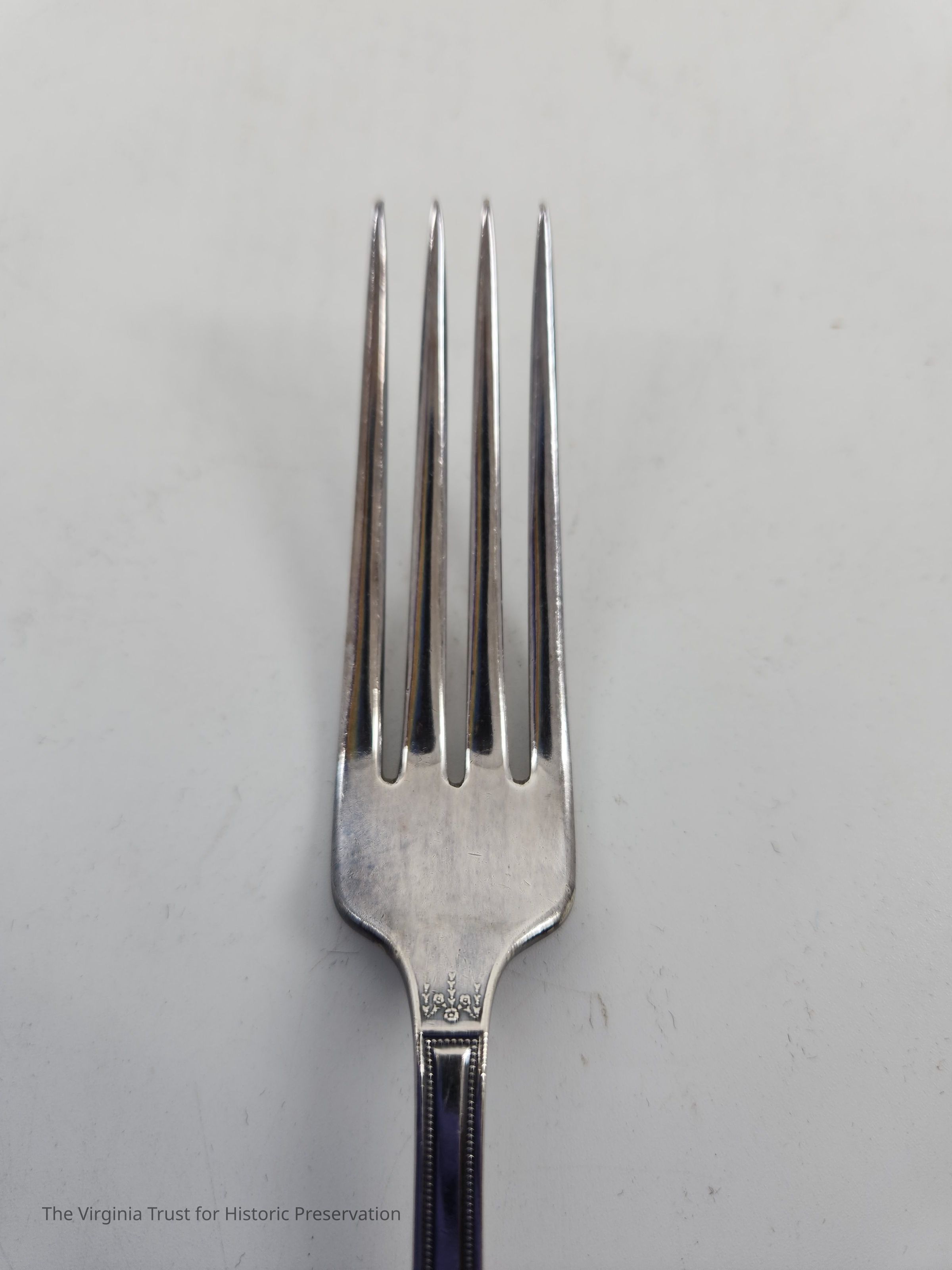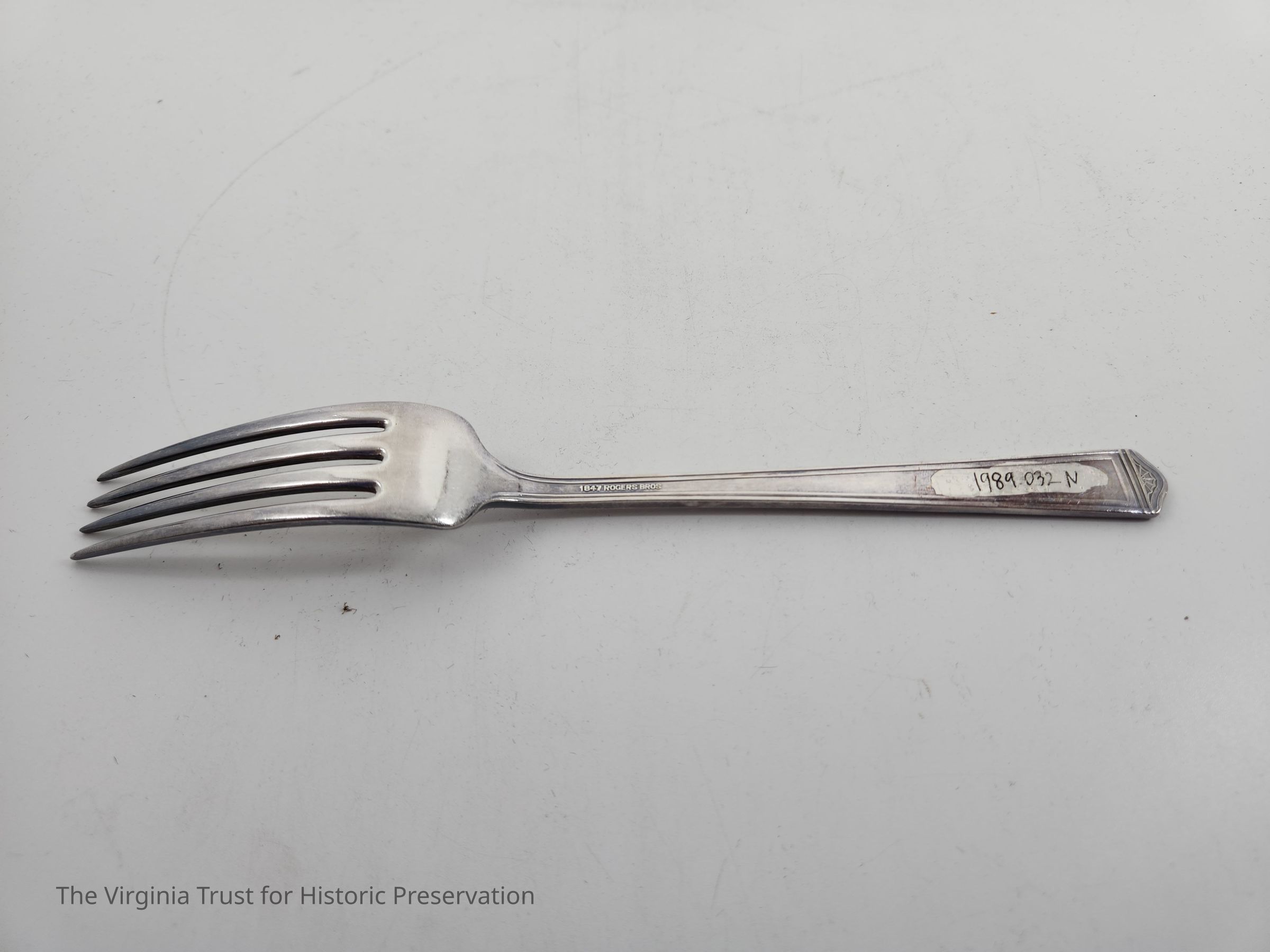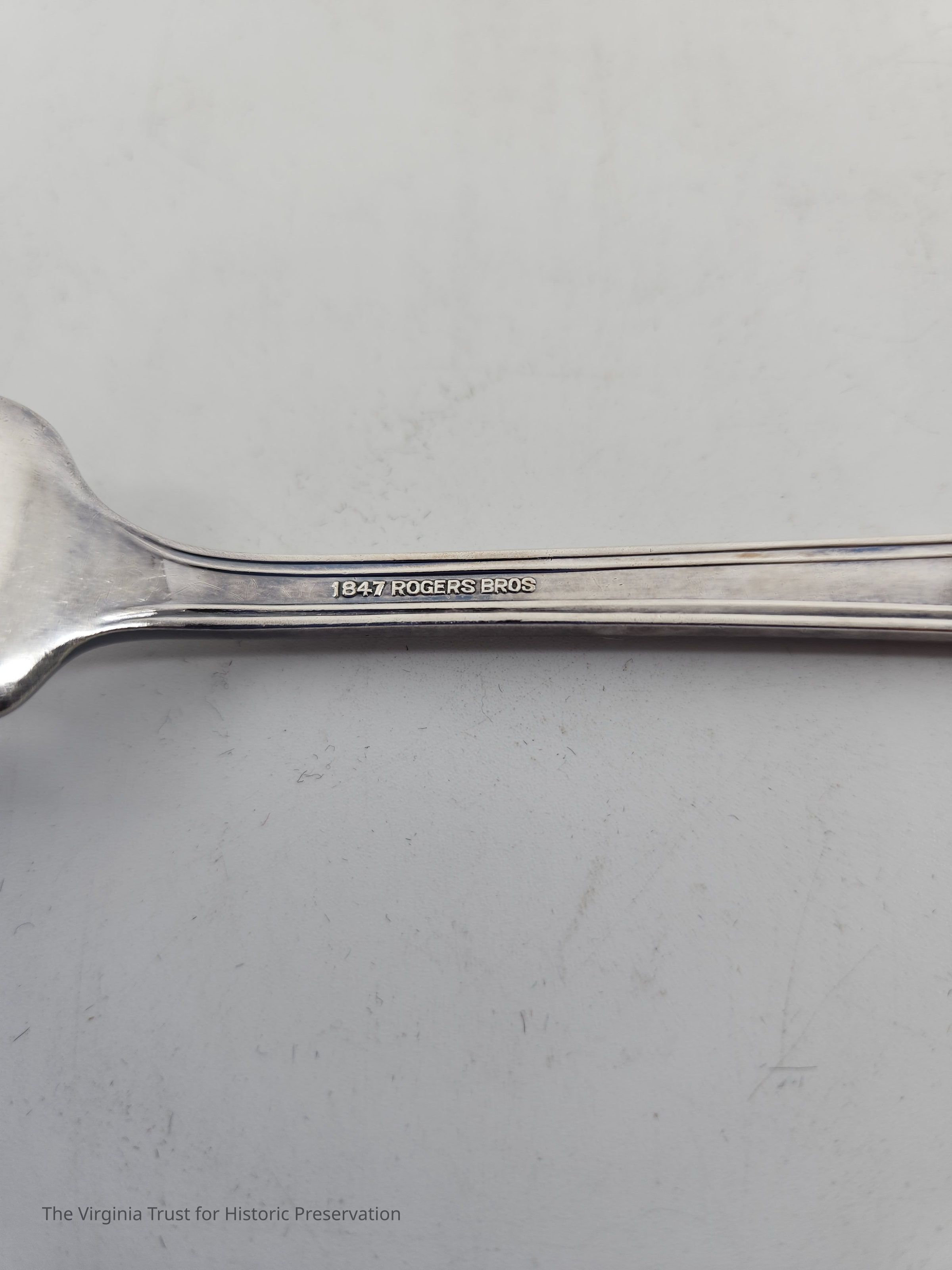 Part of 20 piece set, one of eight coin silver dinner forks in set. "Rogers Brothers." Engraved "1847 ROGERS BROS" on underside.