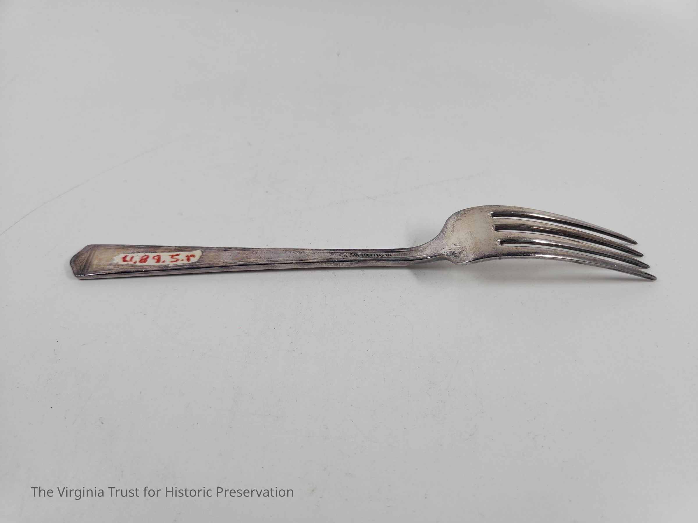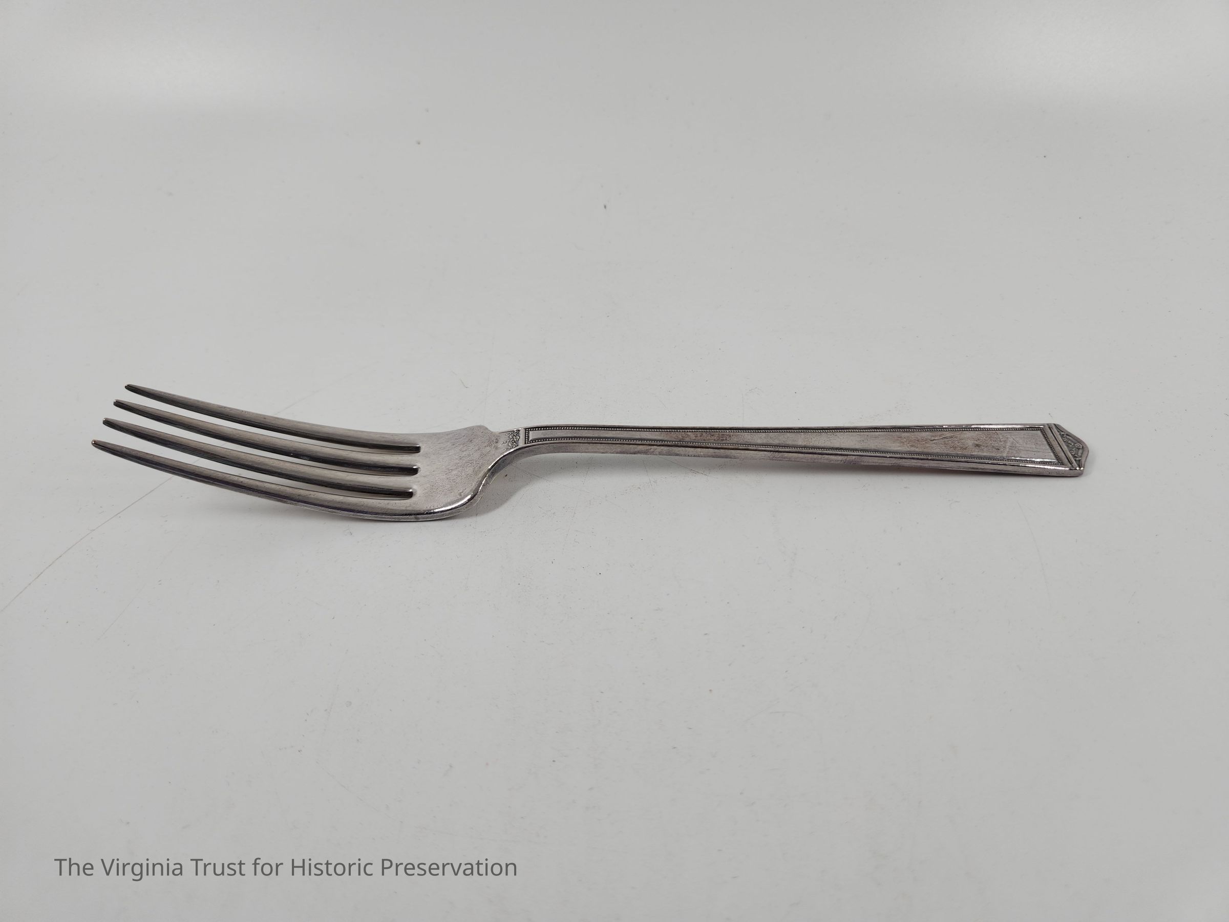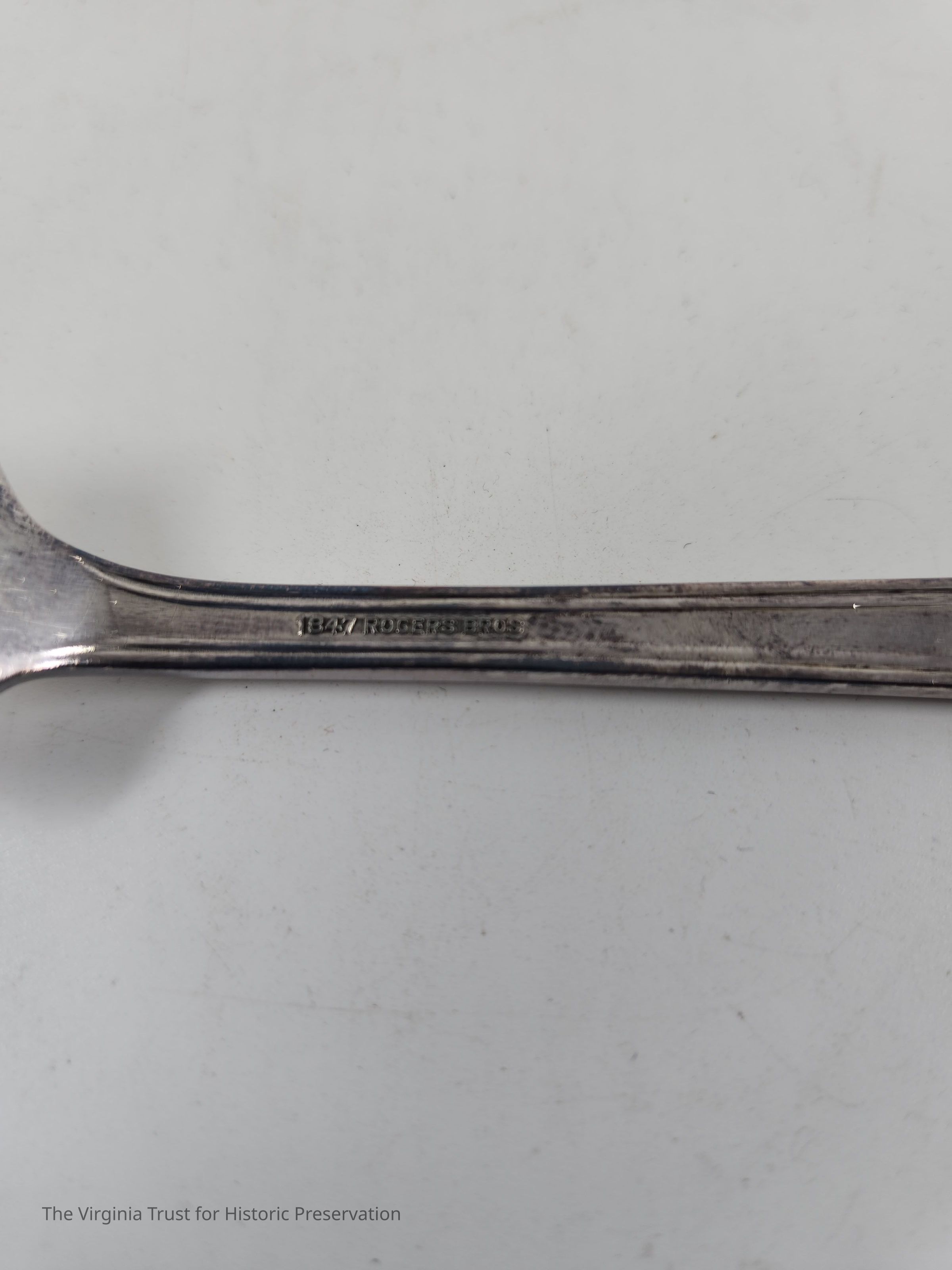 Part of 20 piece set, one of eight coin silver dinner forks in set. "Rogers Brothers." Engraved "1847 ROGERS BROS" on underside.
