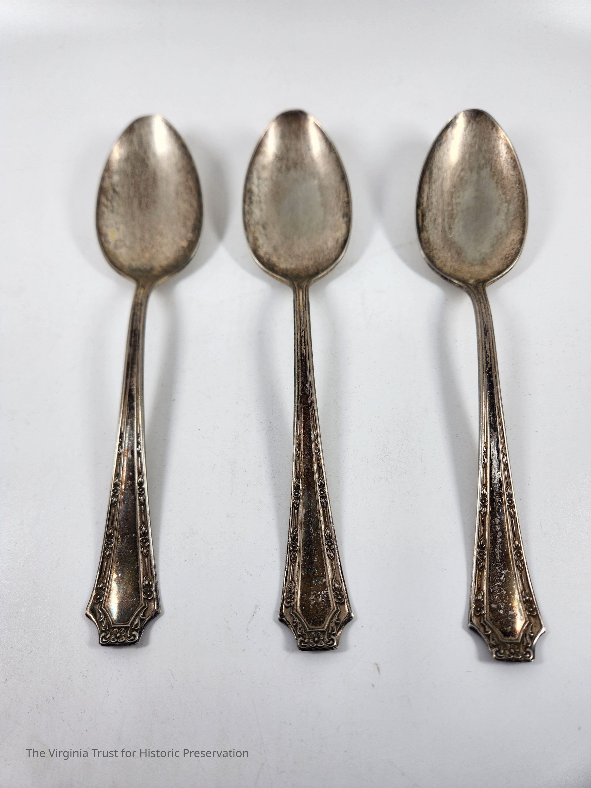 Part of three piece set of tablespoons by Fairfield Silverplate in Alpha pattern