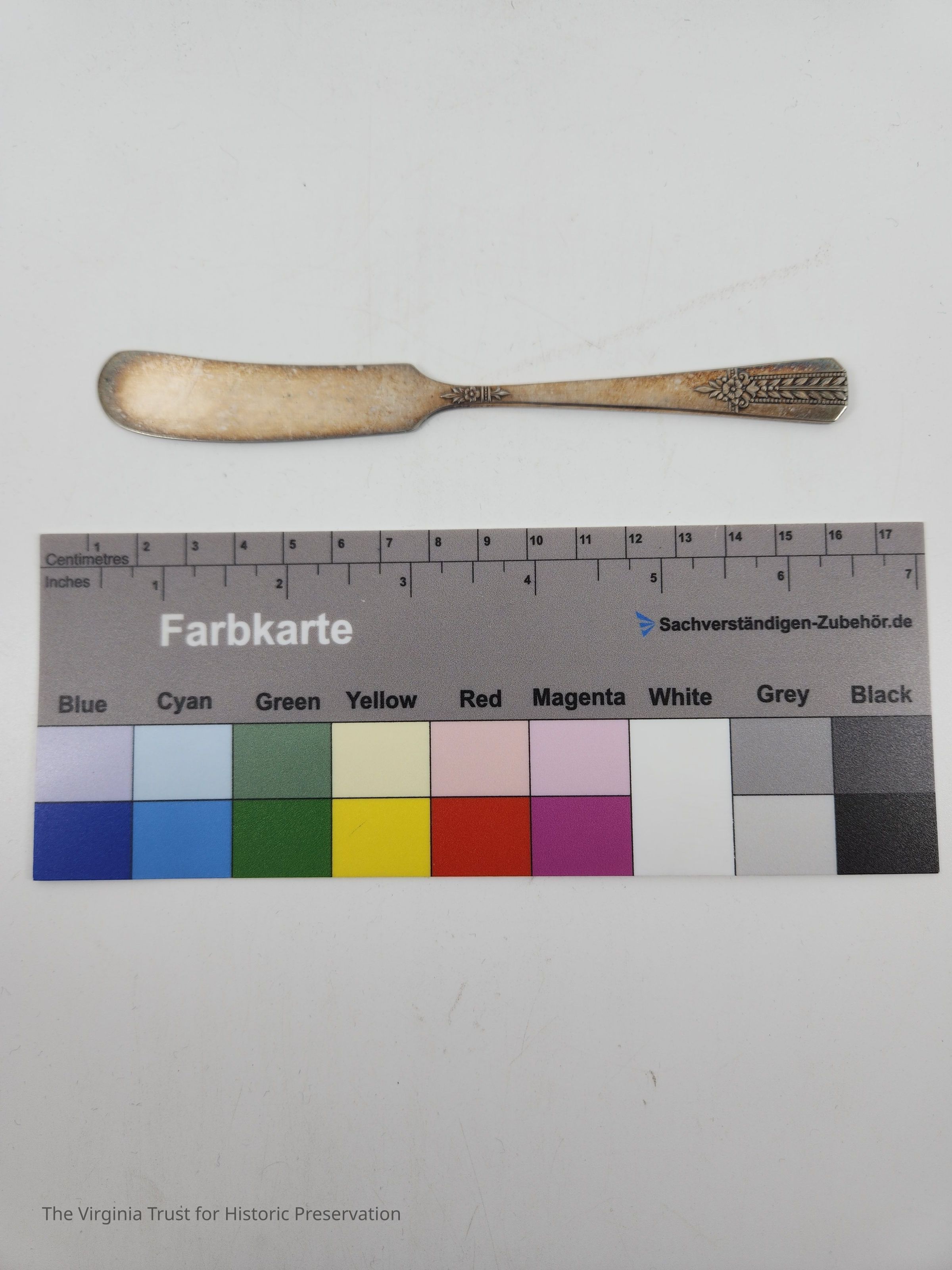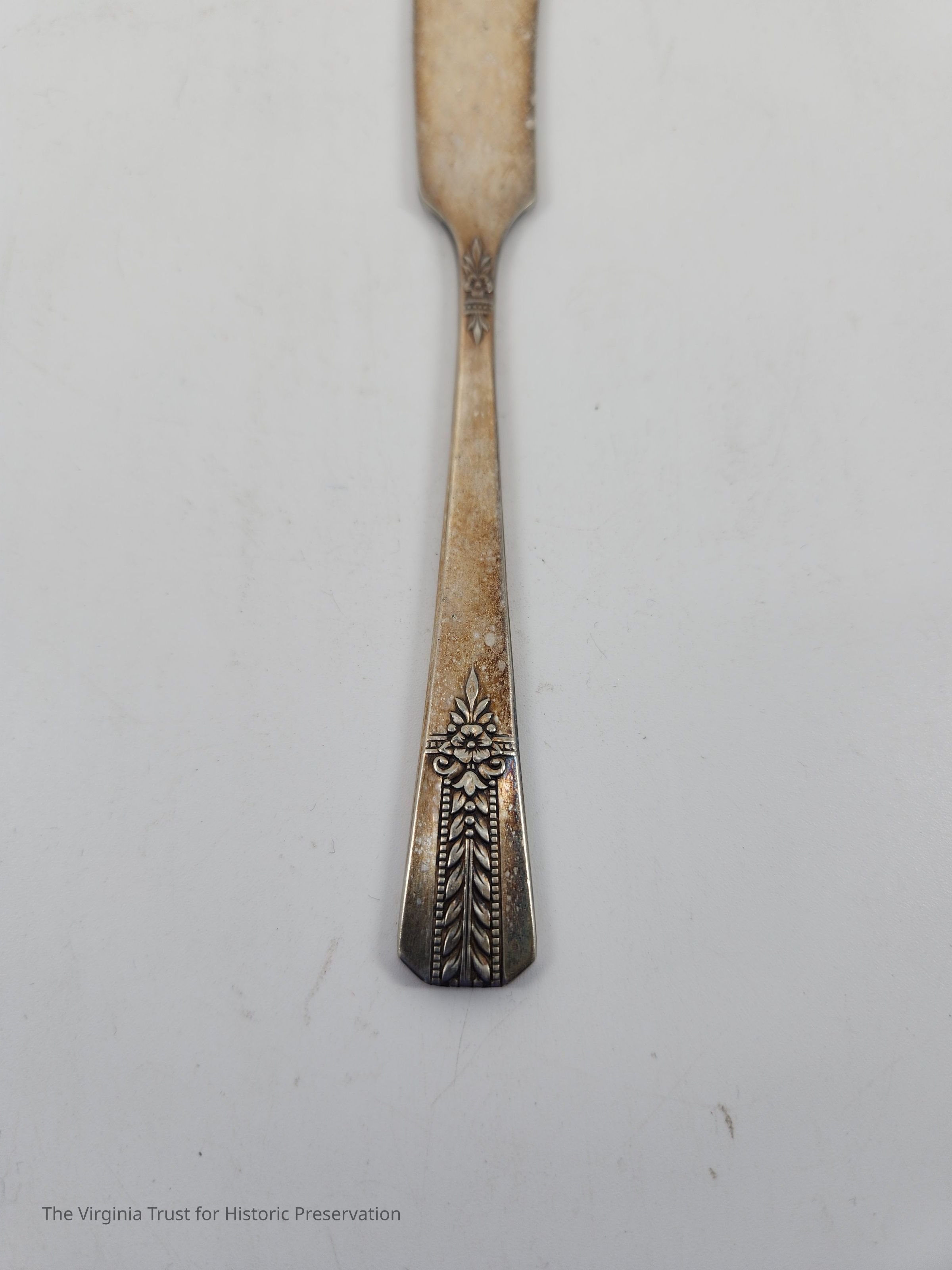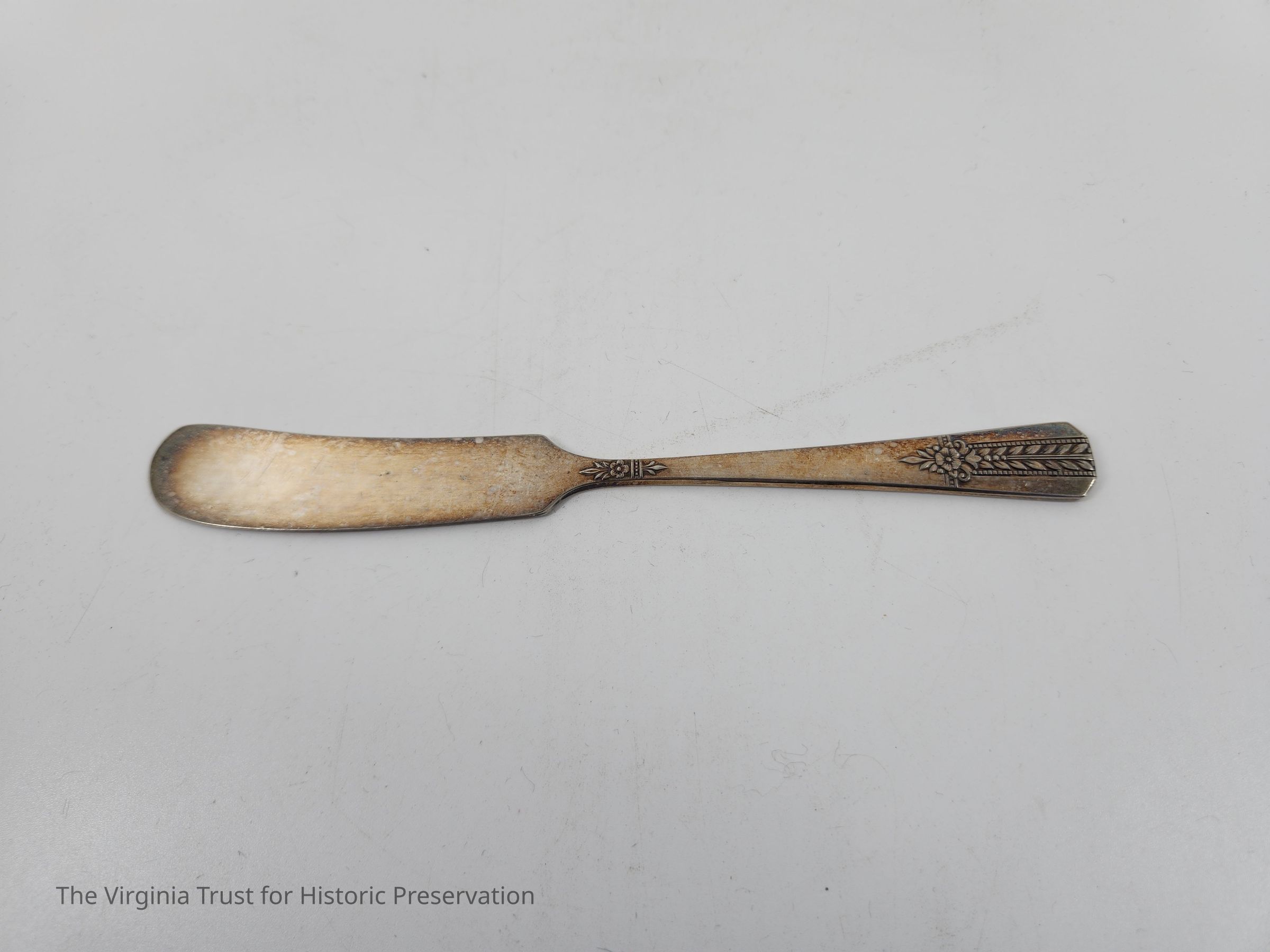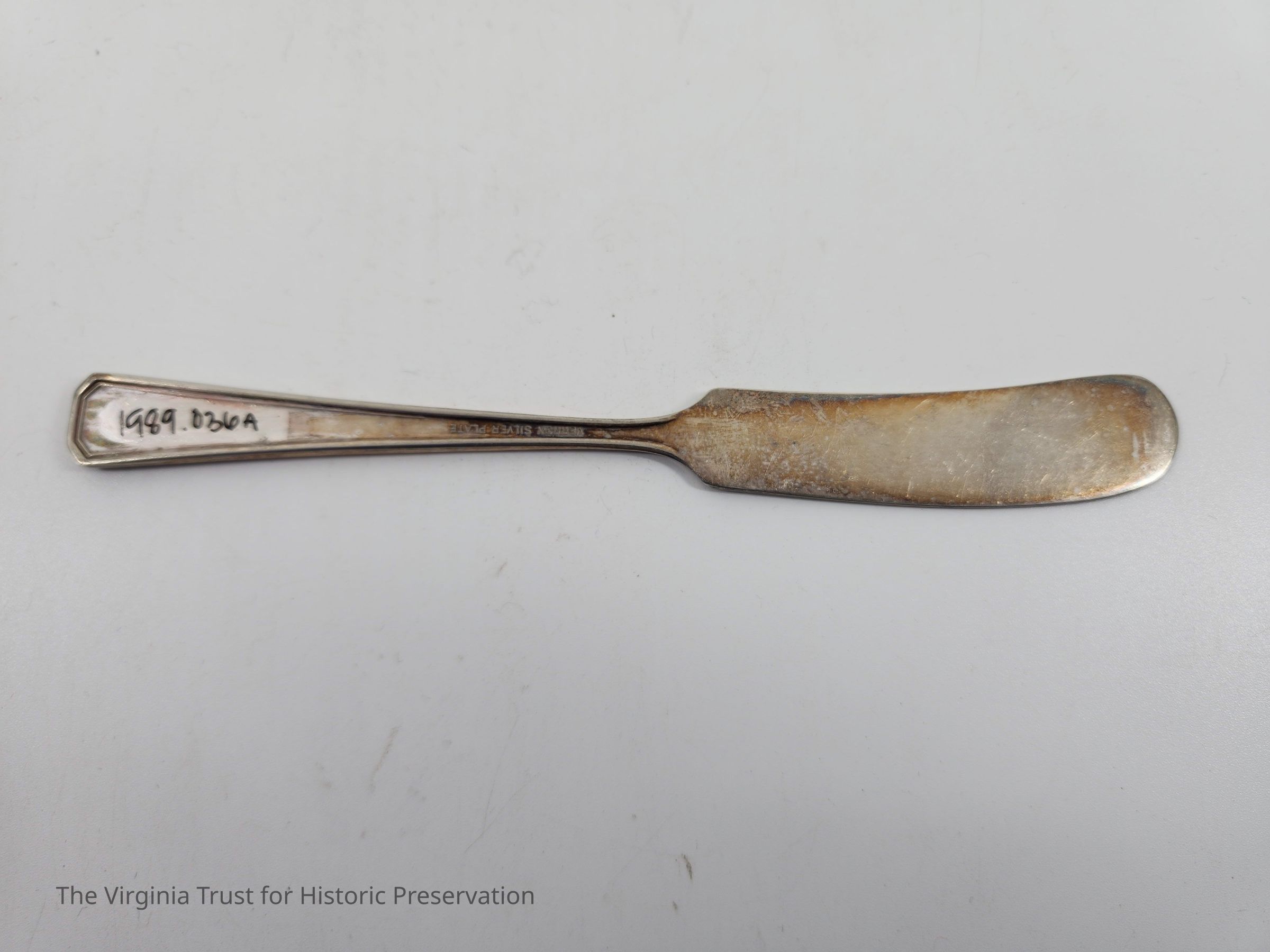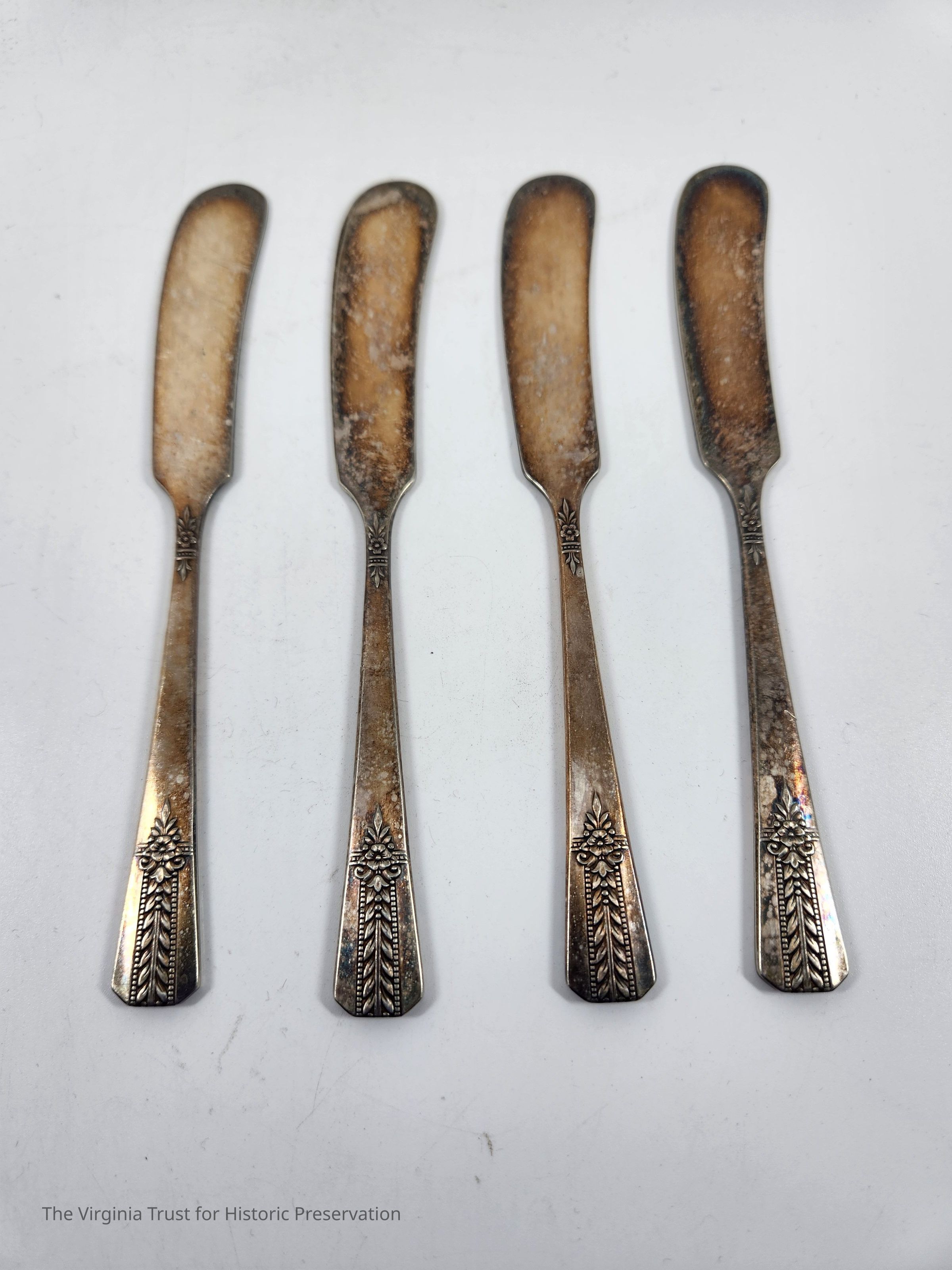 Part of set of four flathandled butter spreaders in 1939 Romford pattern by Oneida Silver with Vernon silverplating.