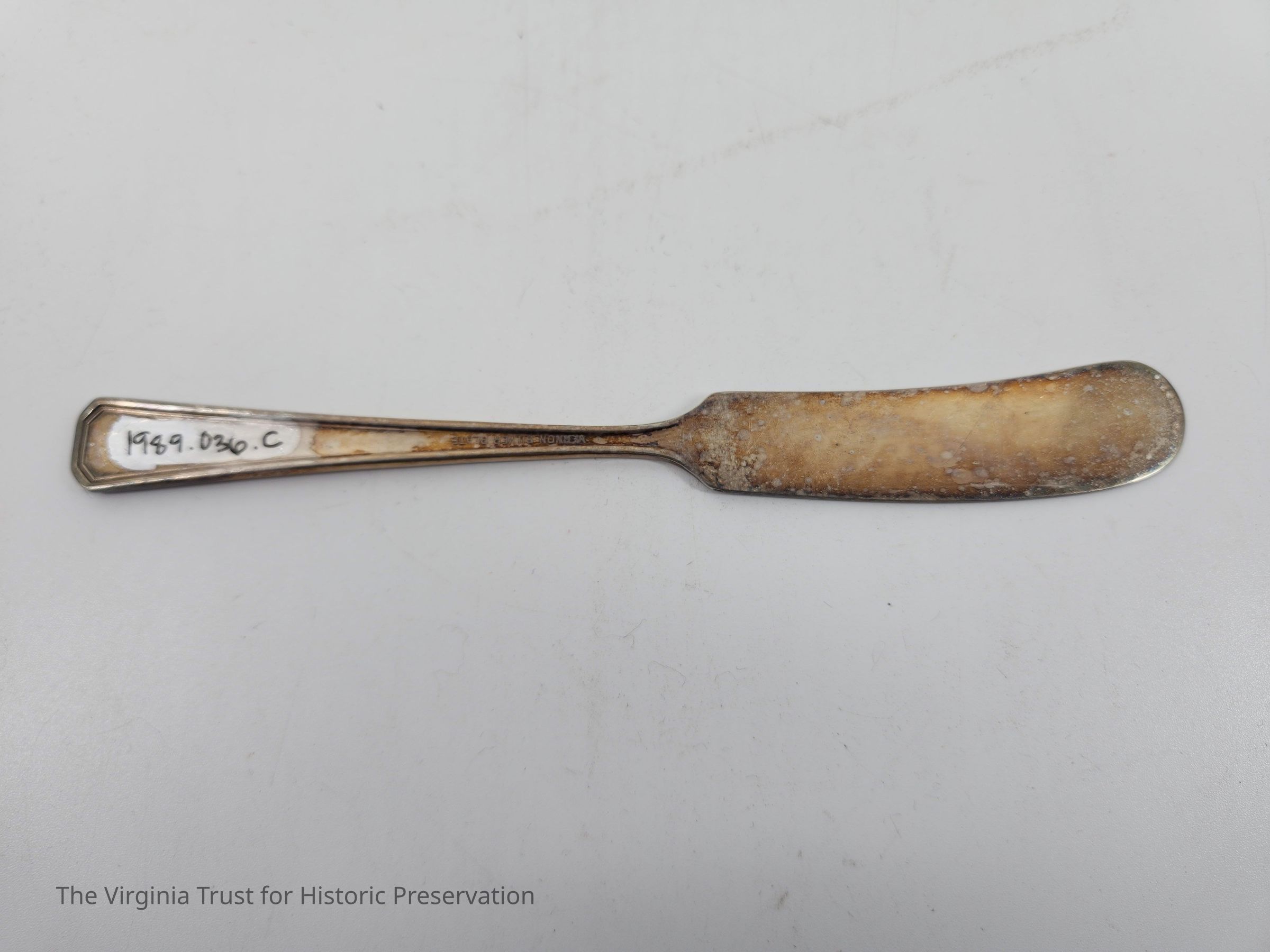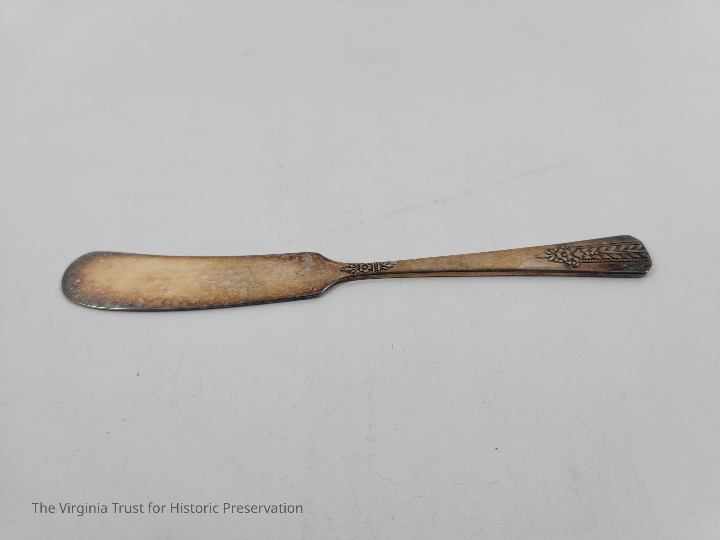 Part of set of four flathandled butter spreaders in 1939 Romford pattern by Oneida Silver with Vernon silverplating.