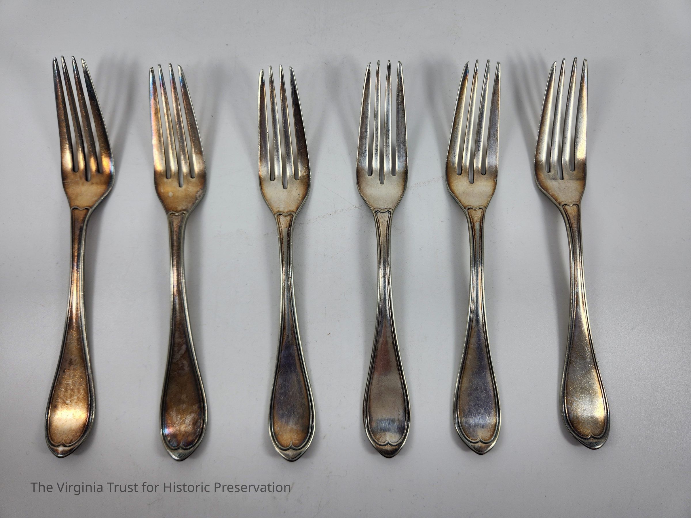One part of six dinner fork set by Reed & Barton in 1890 Oval Thread pattern.