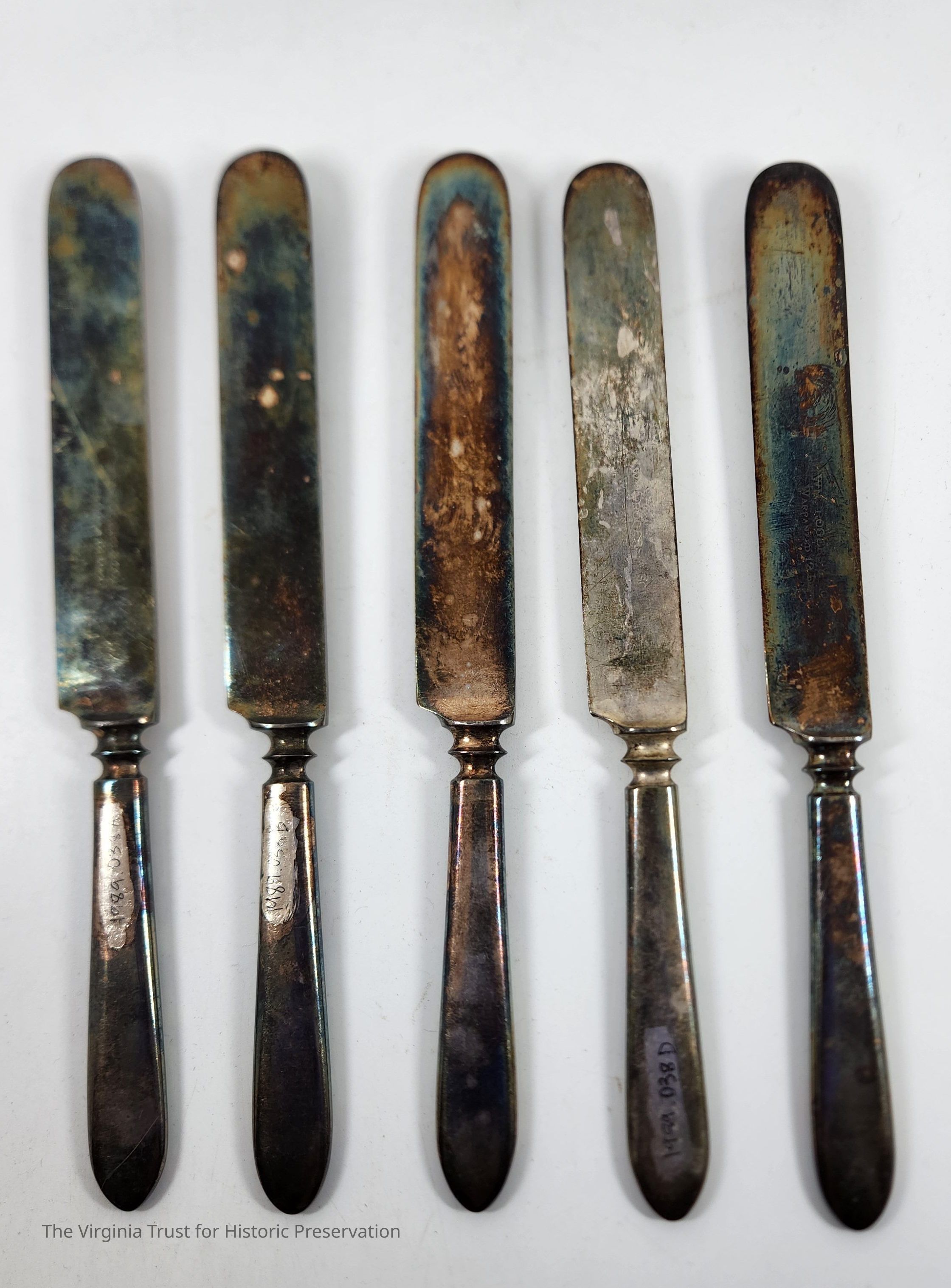 Part of 5 piece luncheon knife set by Wm. Rogers & Son. Silverplate.