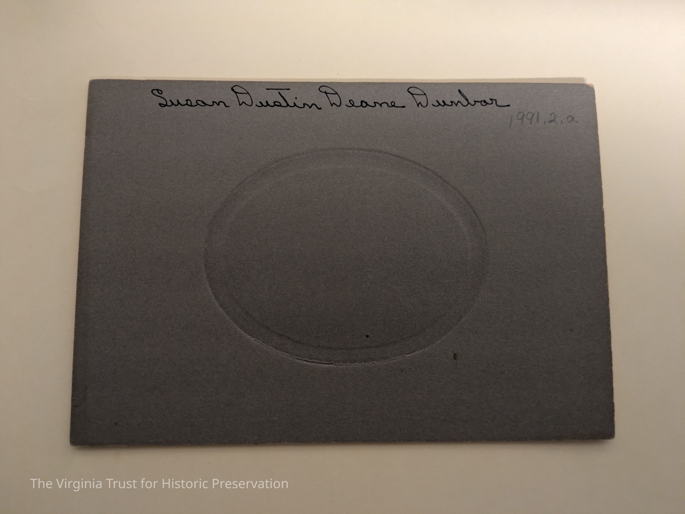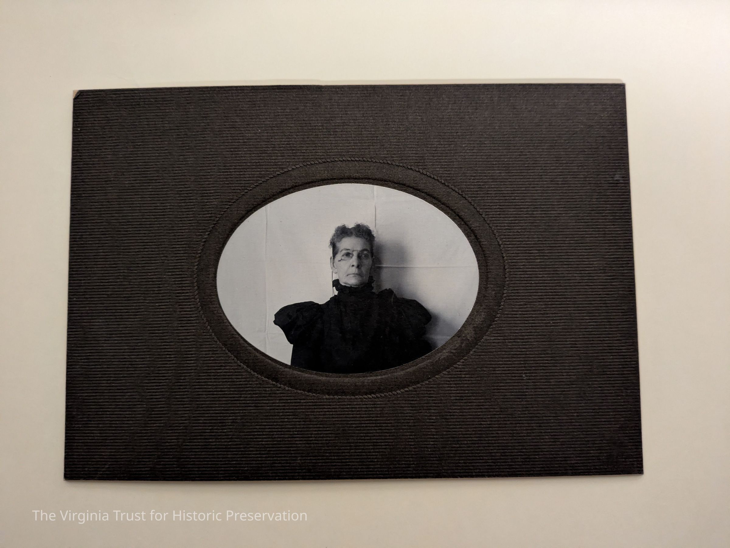 Matted photograph of Susan Dustin Diane Dunbar. Cardboard, paper with black and white image.