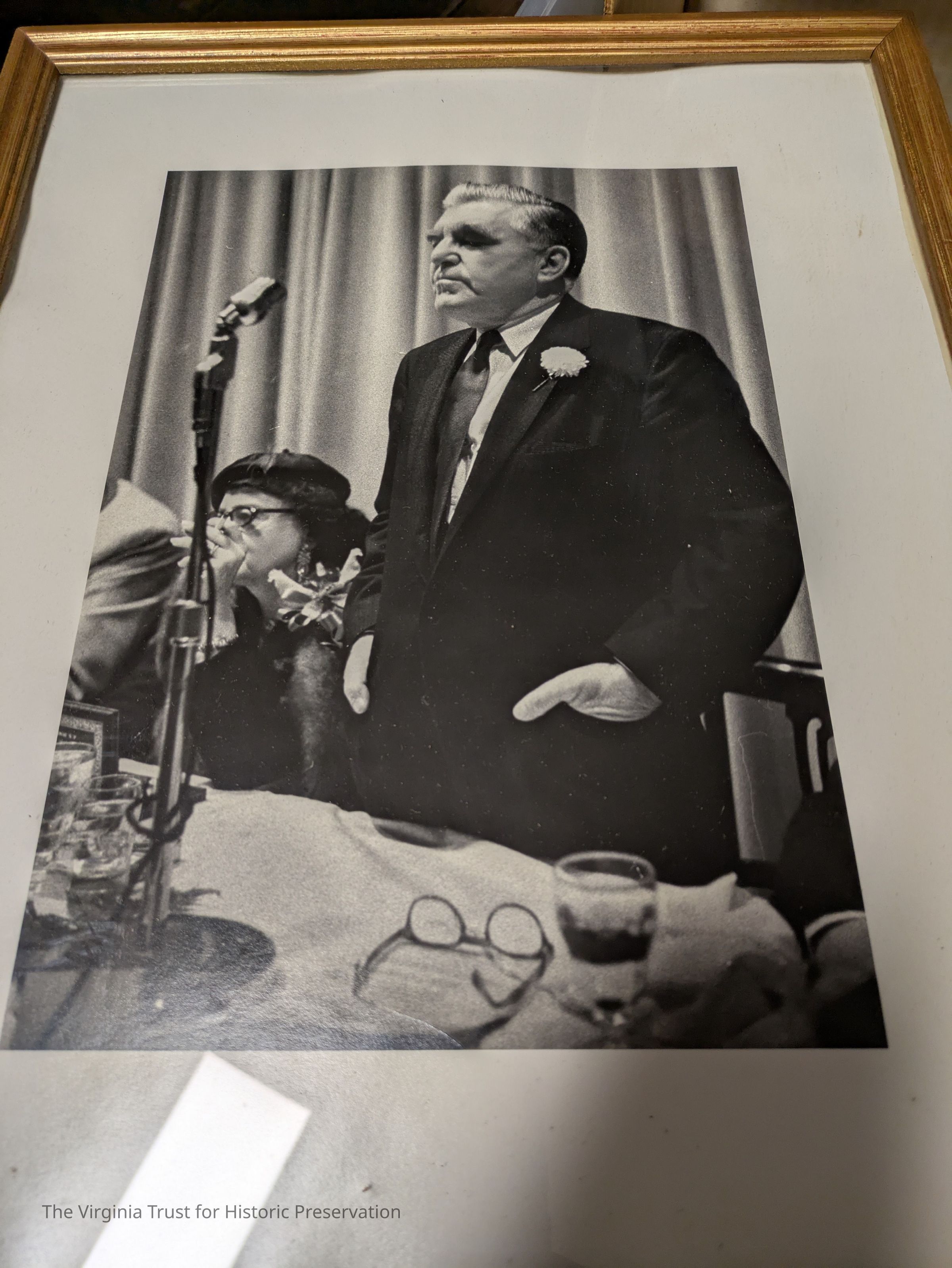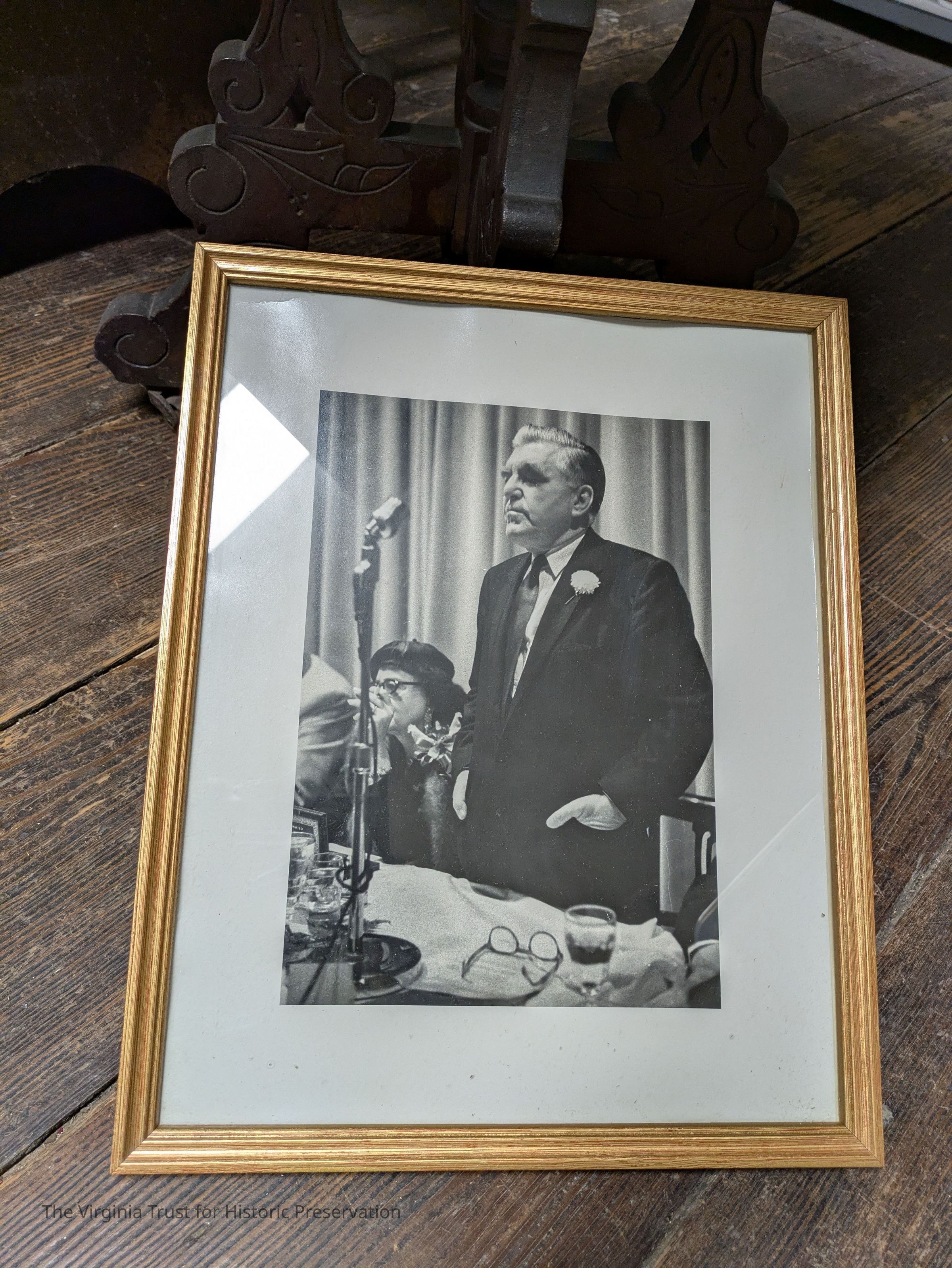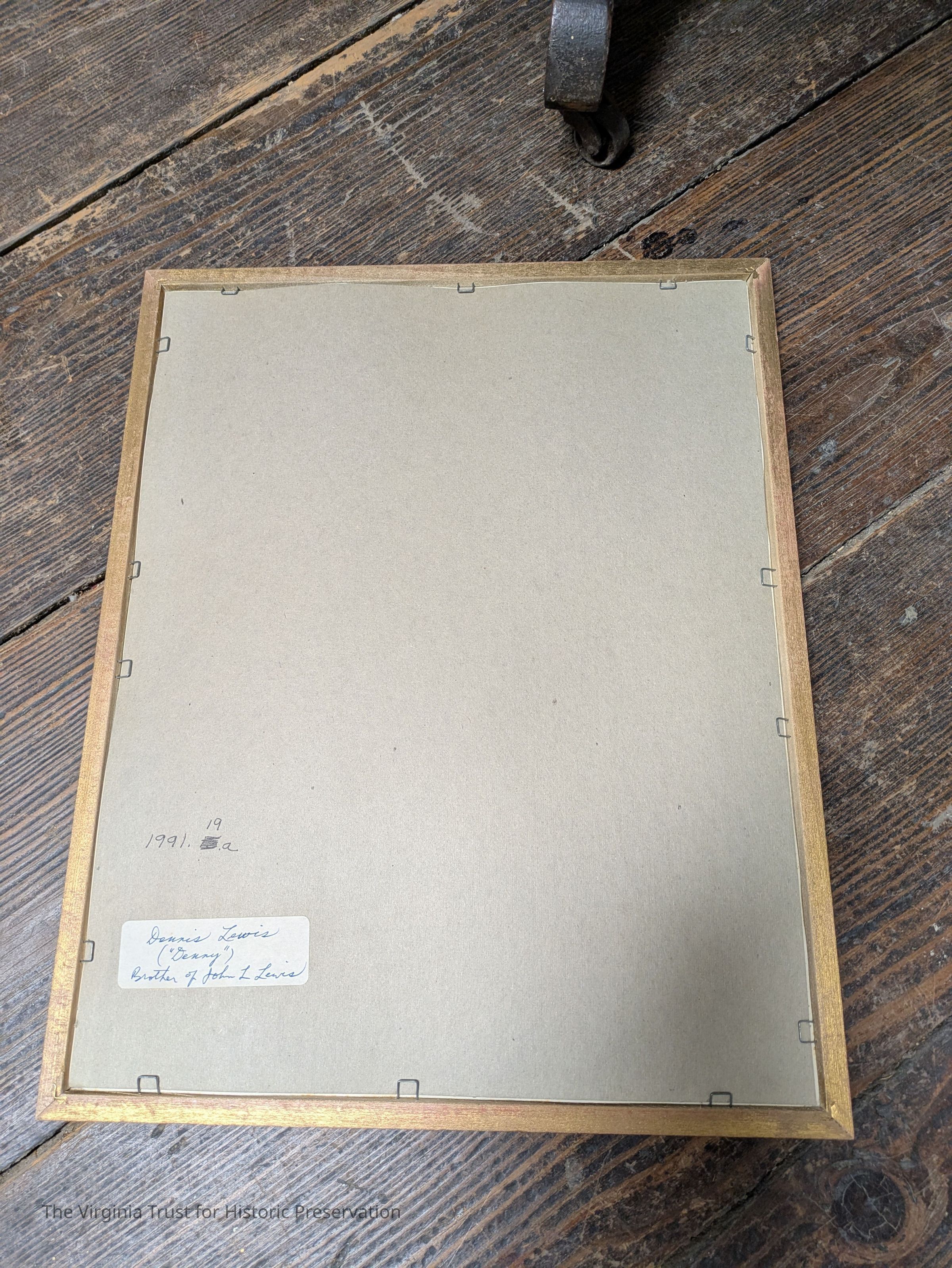 Framed photograph of Dennis Lewis, brother of John L. Lewis. Wooden frame, gold and red paint, metal hinges, cardboard.