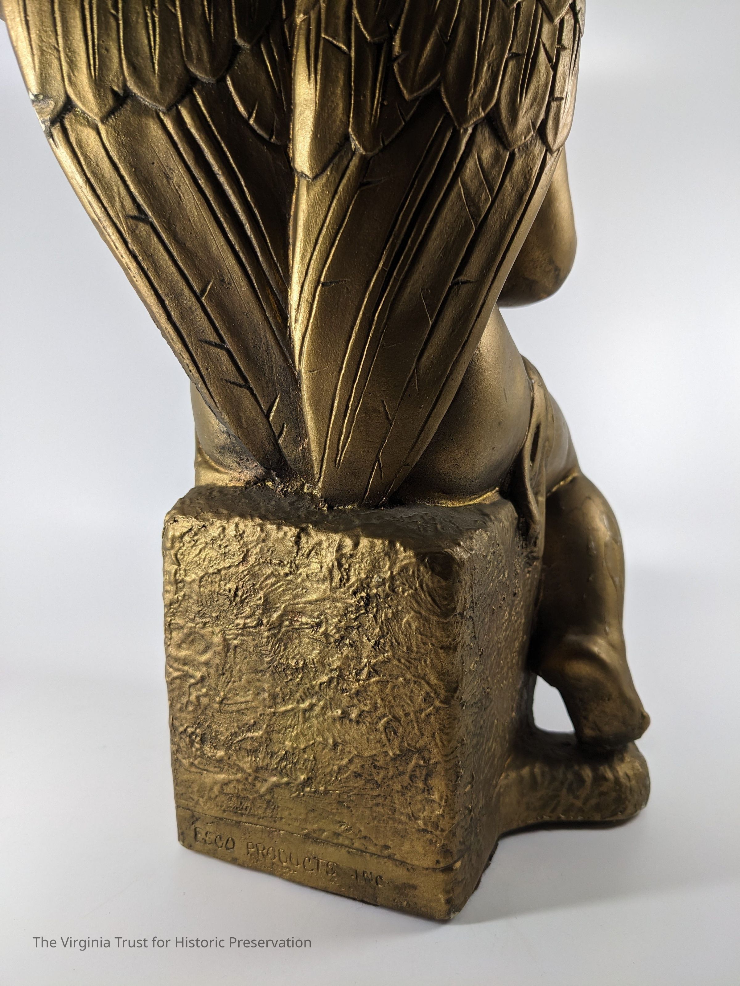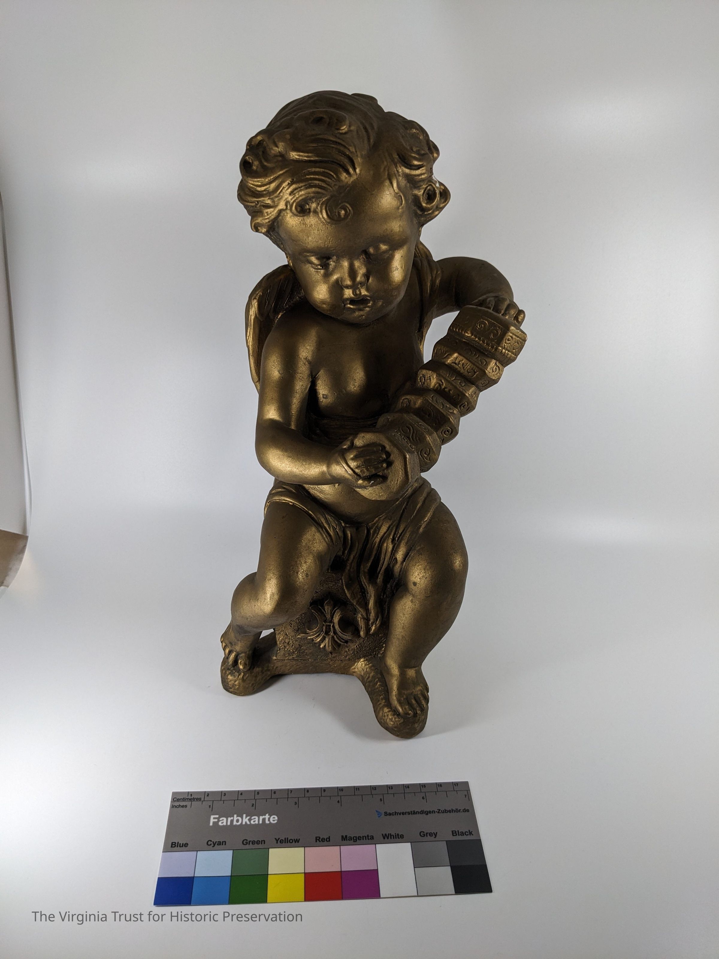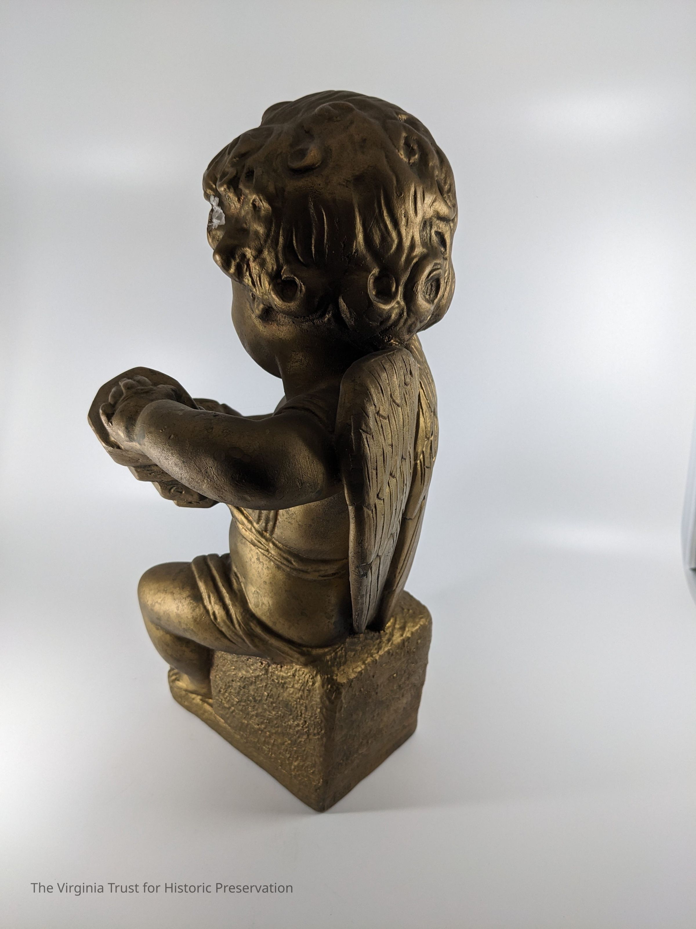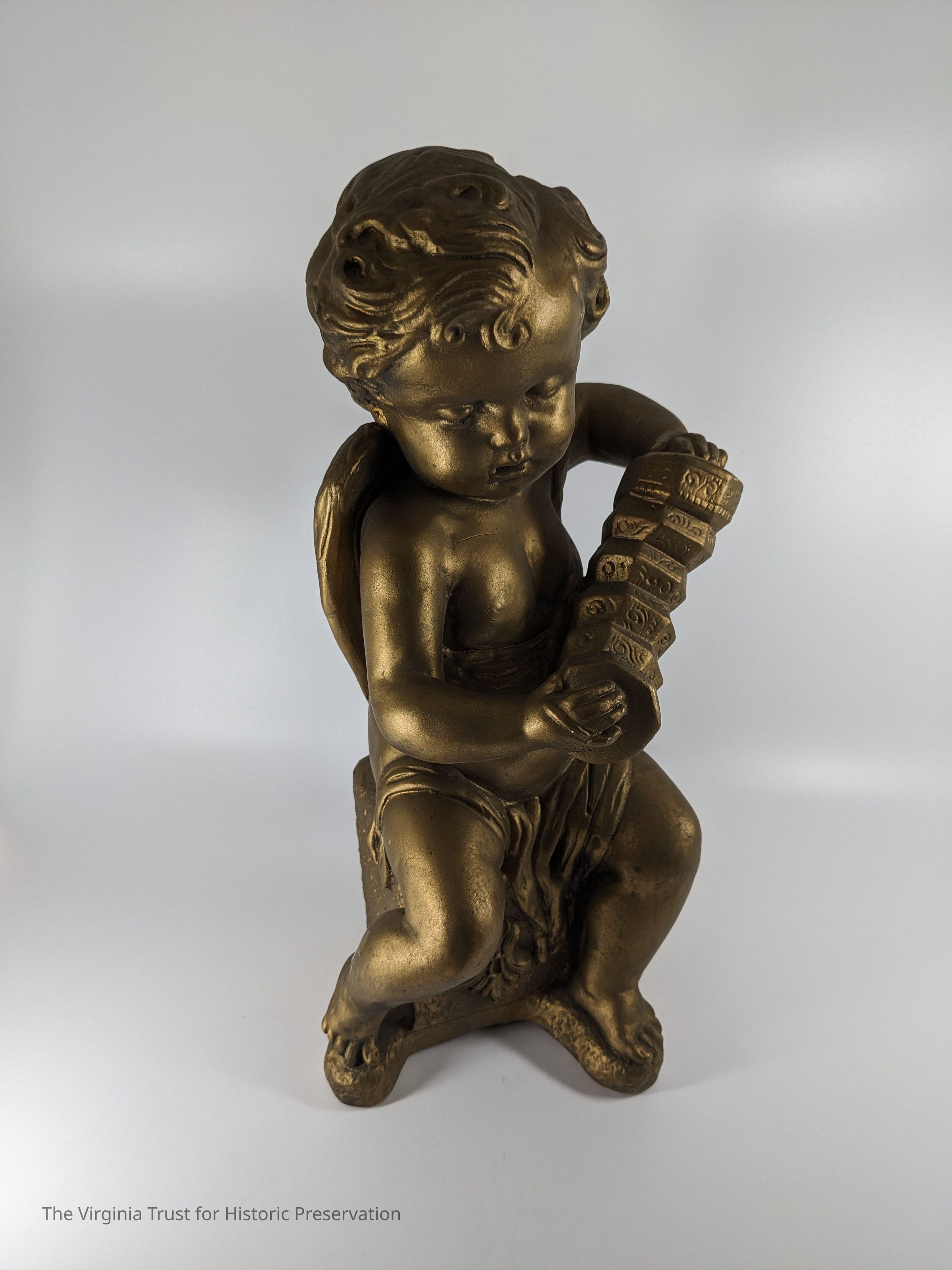 Figurine of a cherub playing a harp, one of a pair.