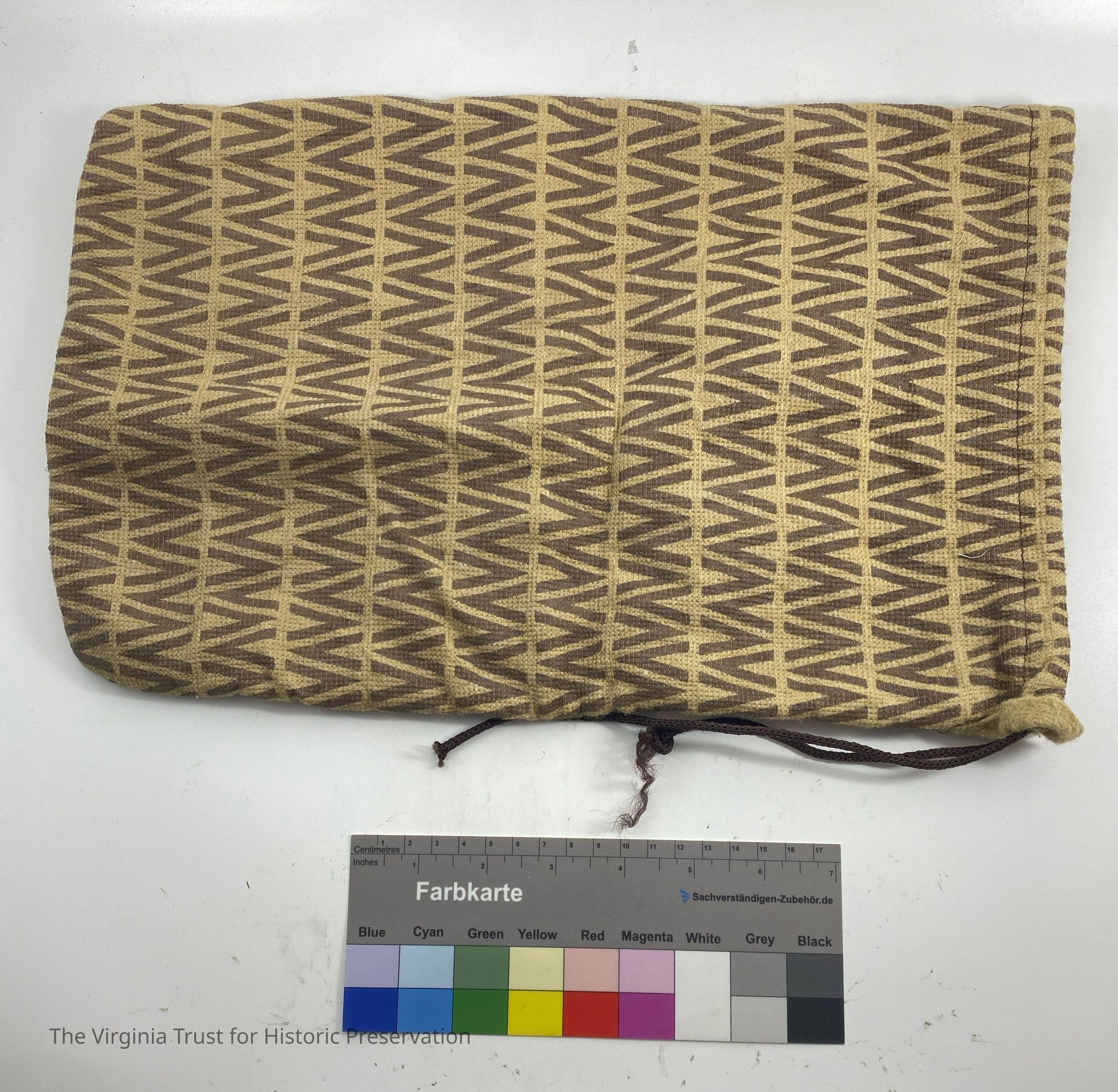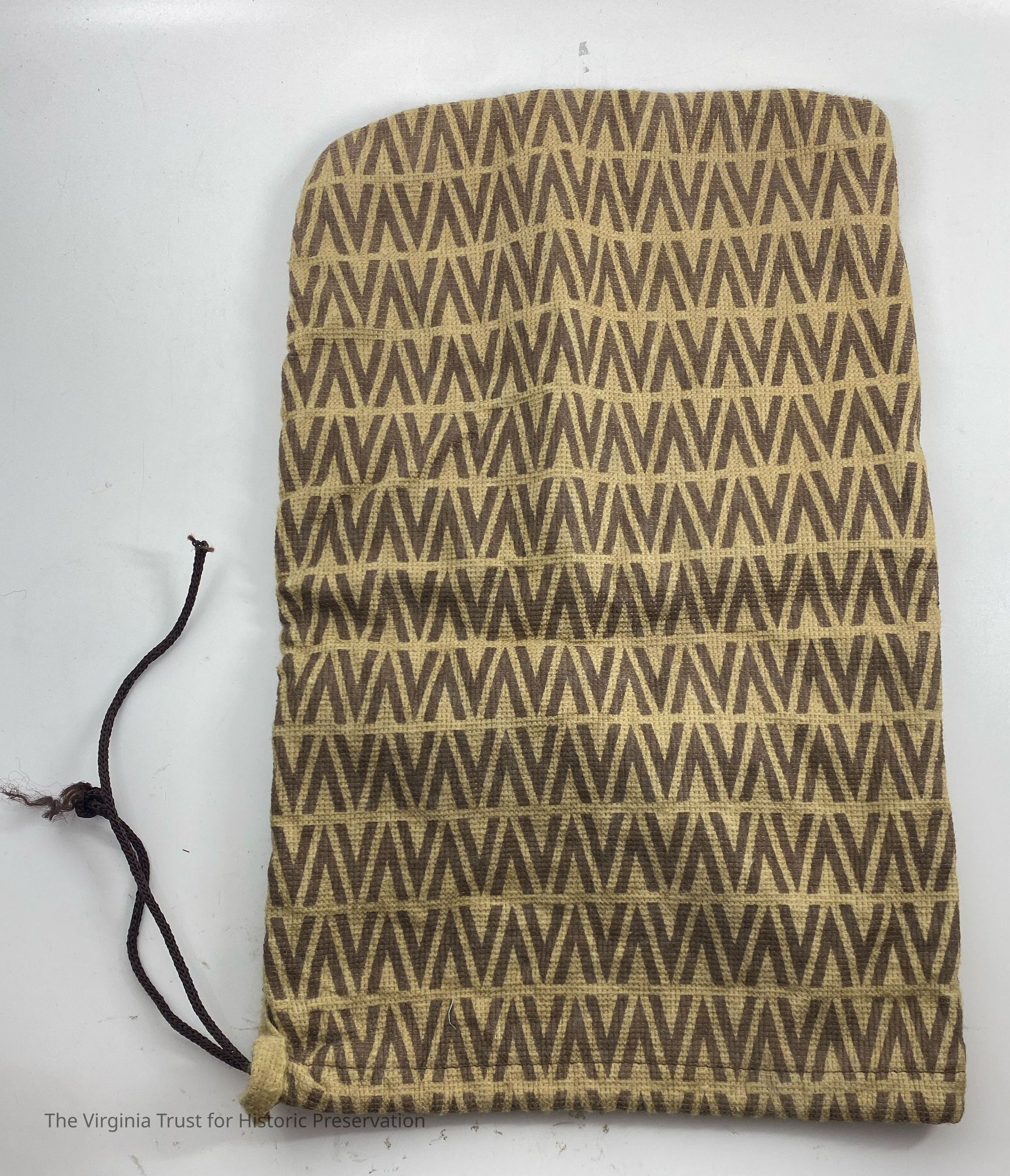 Sterling silver chocolate pot with separate pivoting lid and matching tan and brown fabric bag. Handle: Metal "trough" filled with wood and covered by woven rattan which is loose and repaired with scotch tape. Hallmark: "WSS EPN5 AJ" "4450."