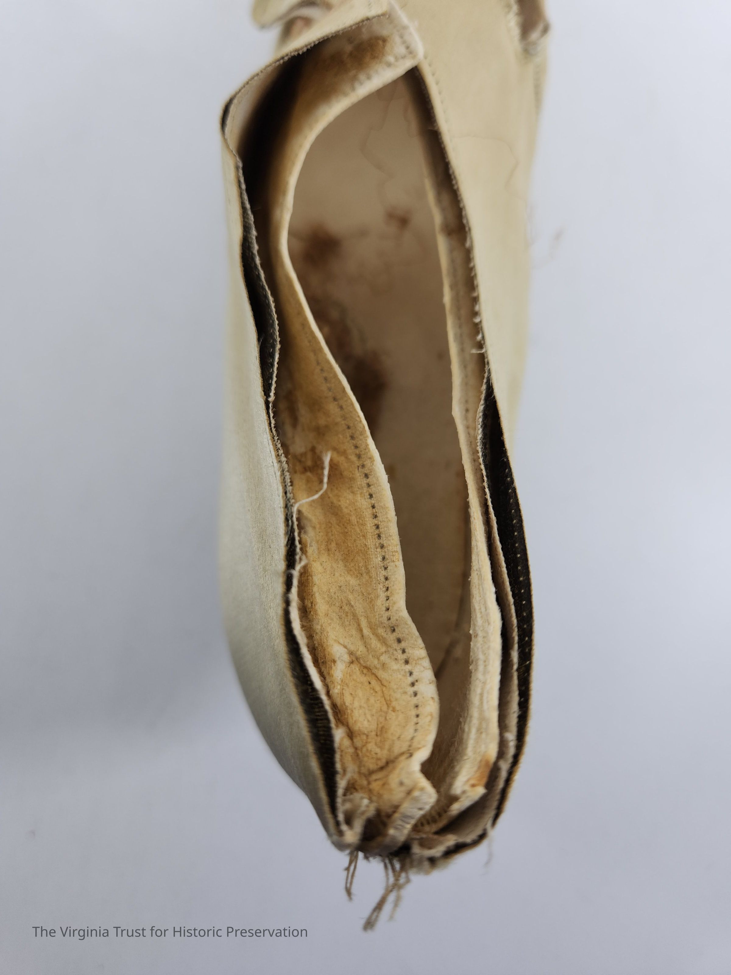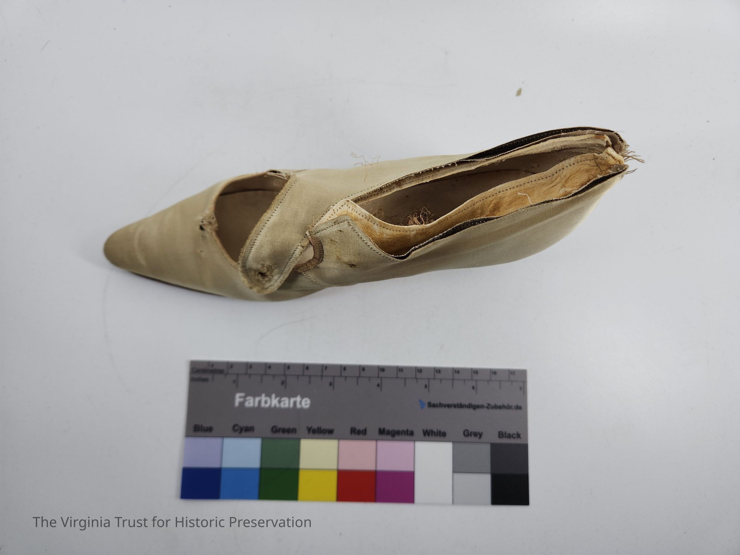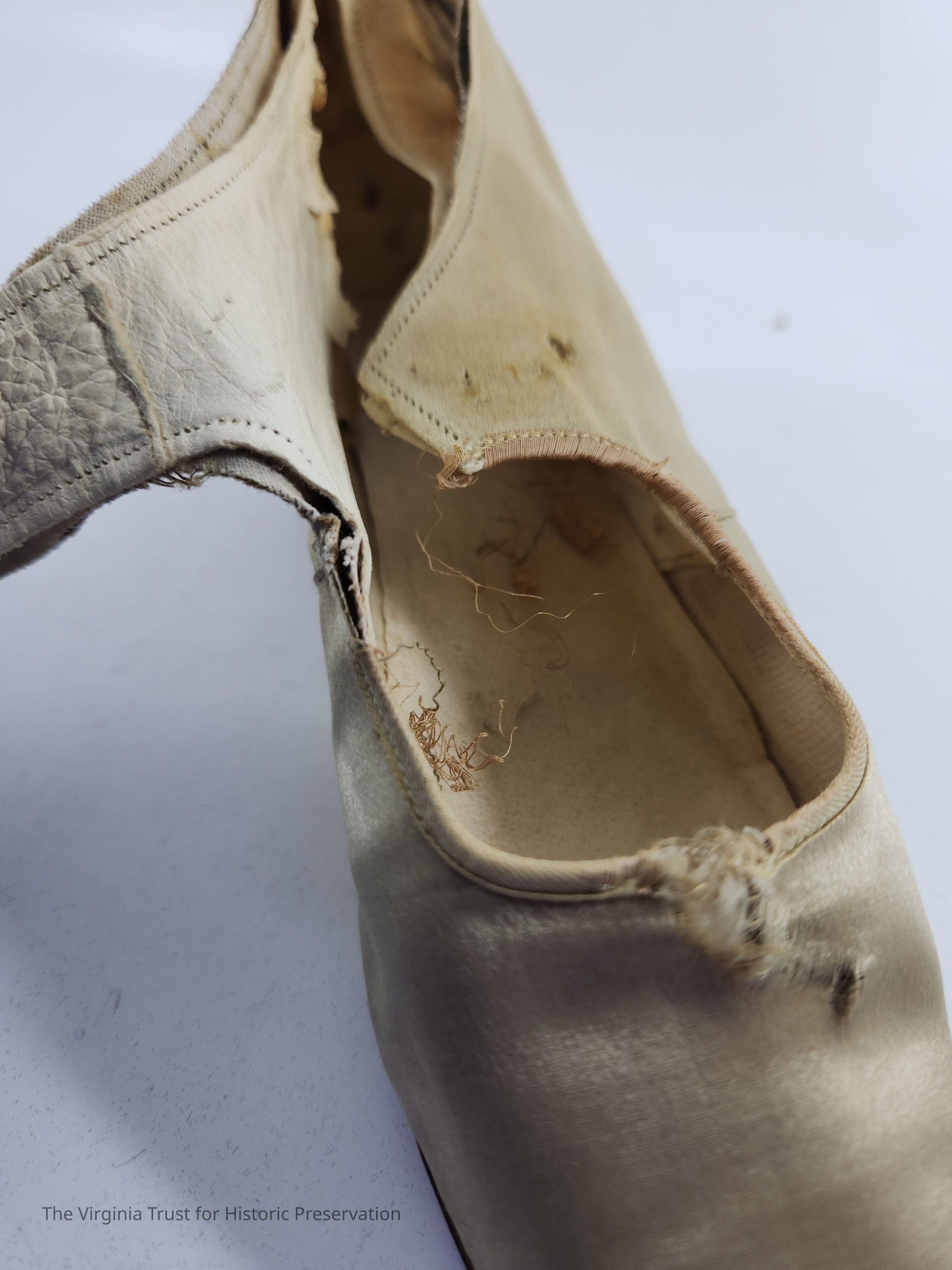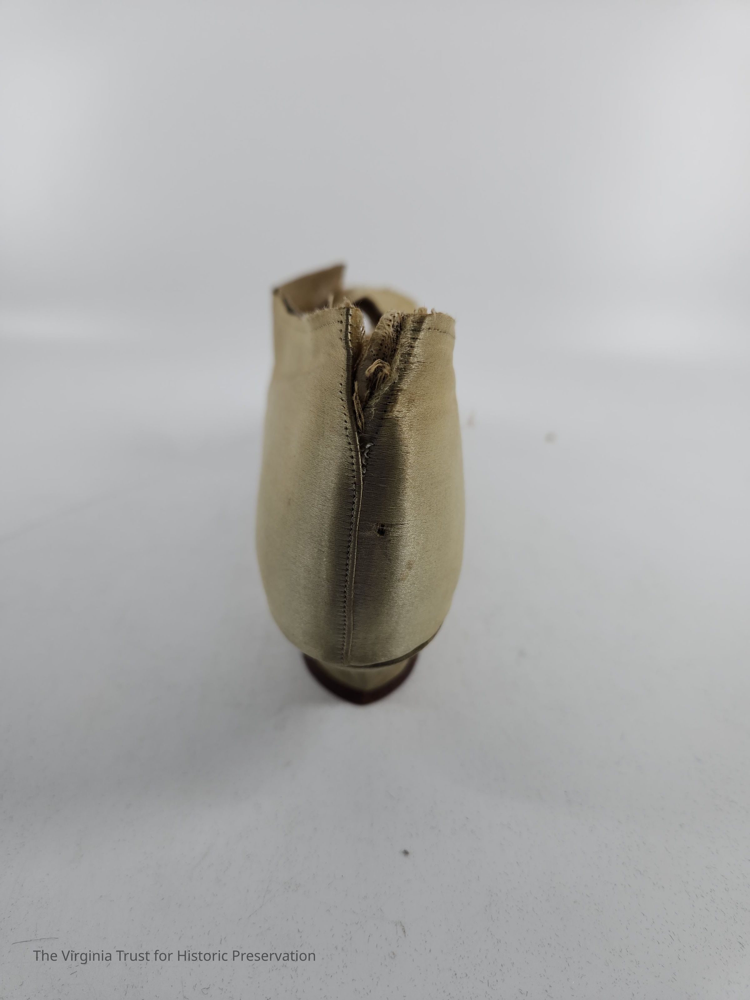 Pair of light green sating wedding slippers. Shoes received with shoe horns.