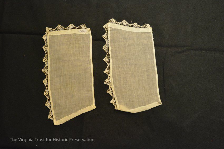 Set of white rectangular cuffs with triangular edging; made and worn by Elizabeth Dean Anderson.