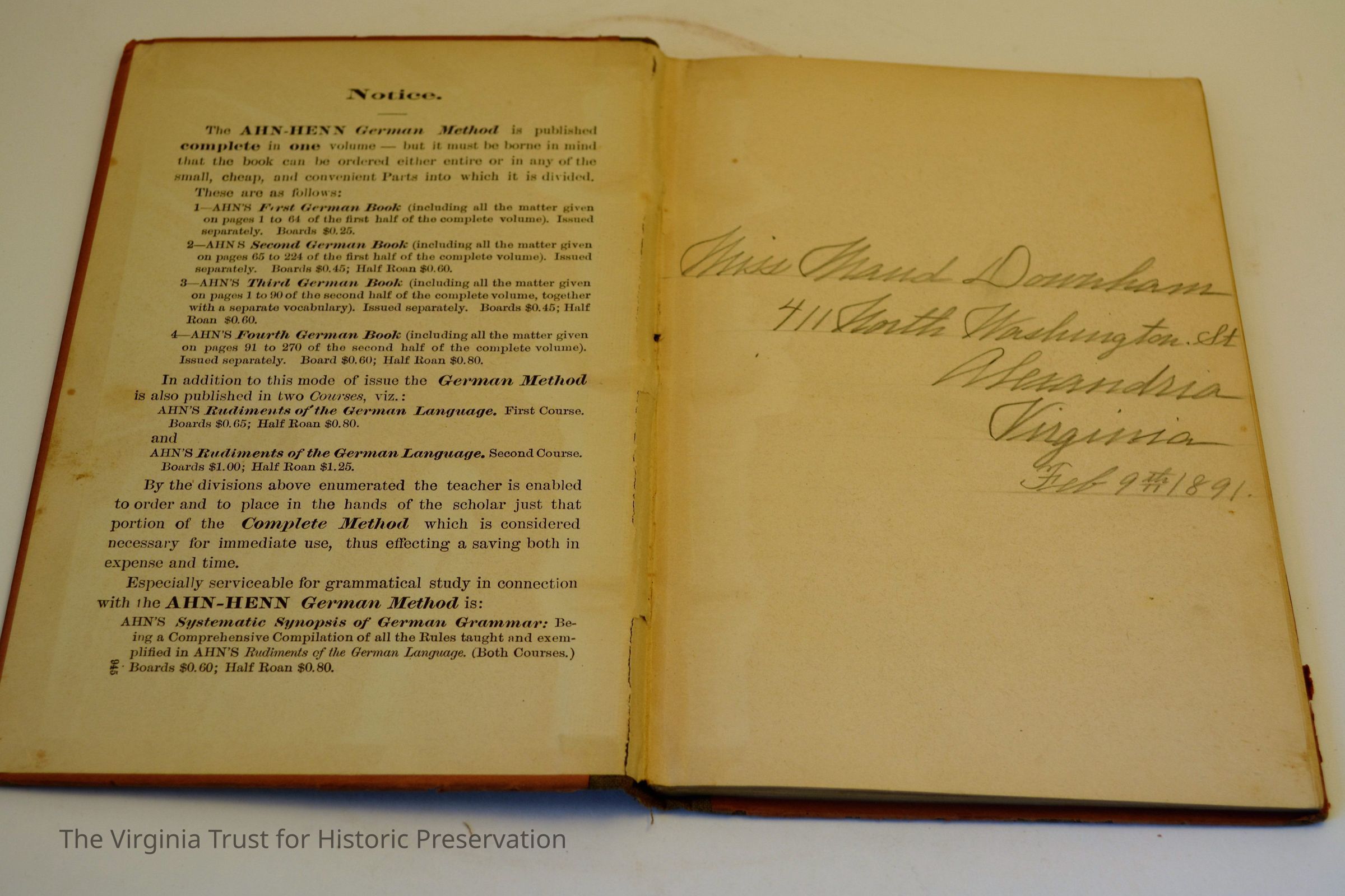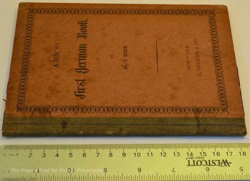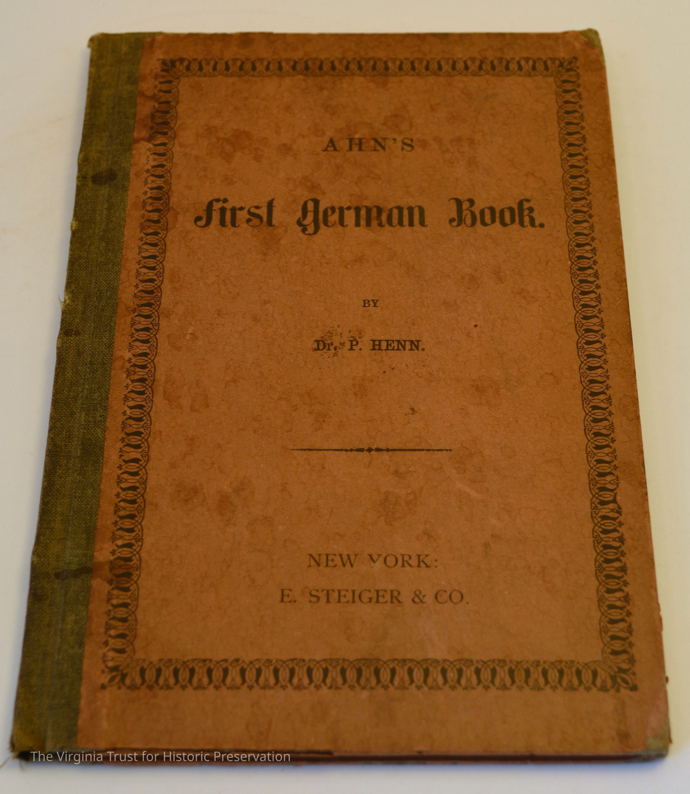 Ahn's First German Book, Being the First Division f Ahn's Rudiments of the German Language. New York: E. Steiger, [no date]. Dr. P. Henn. Paper file is 1986.198.