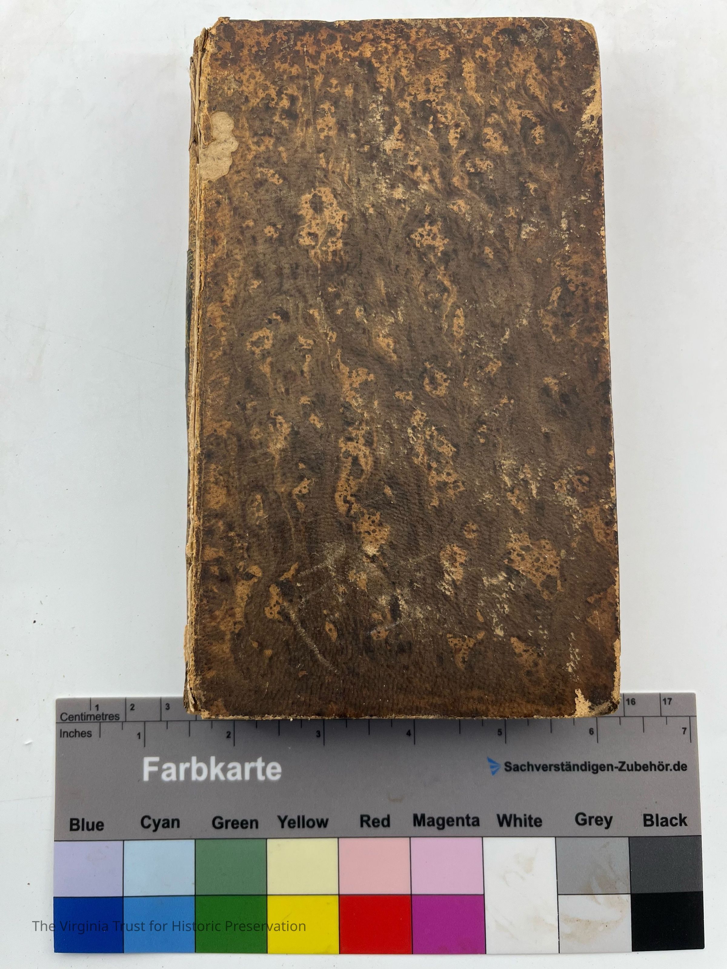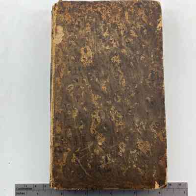 Patterned cover, missing back cover, torn binding, faded spineDimensions