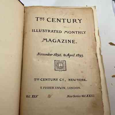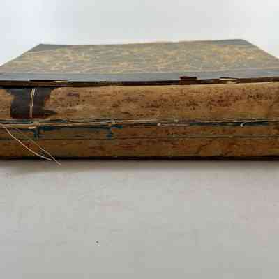 Green patterned cover, loose back cover, torn binding, unreadable/worn spine