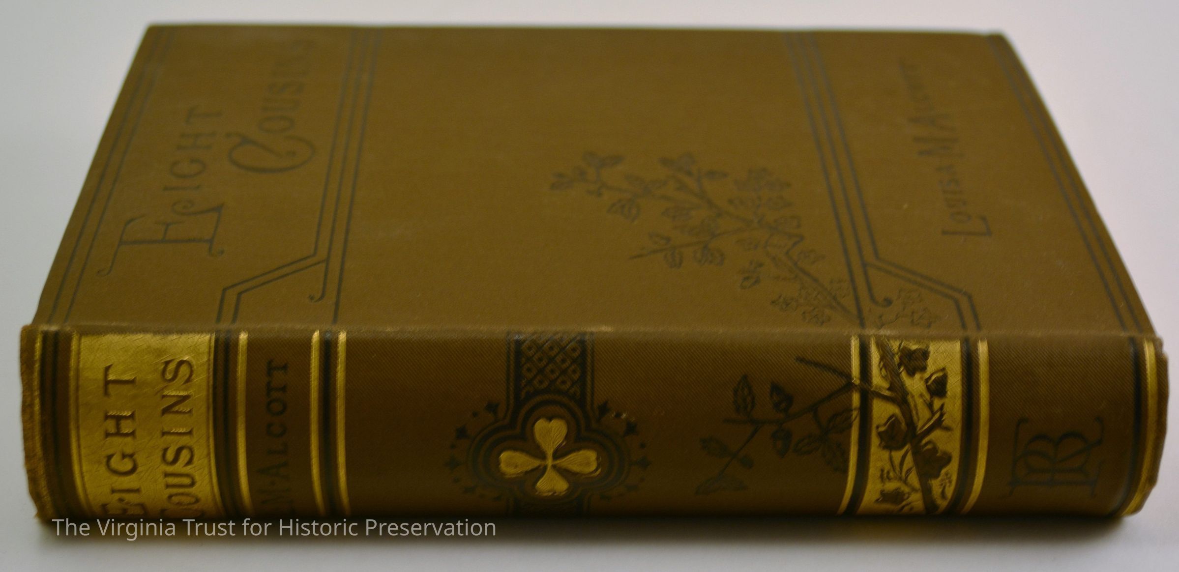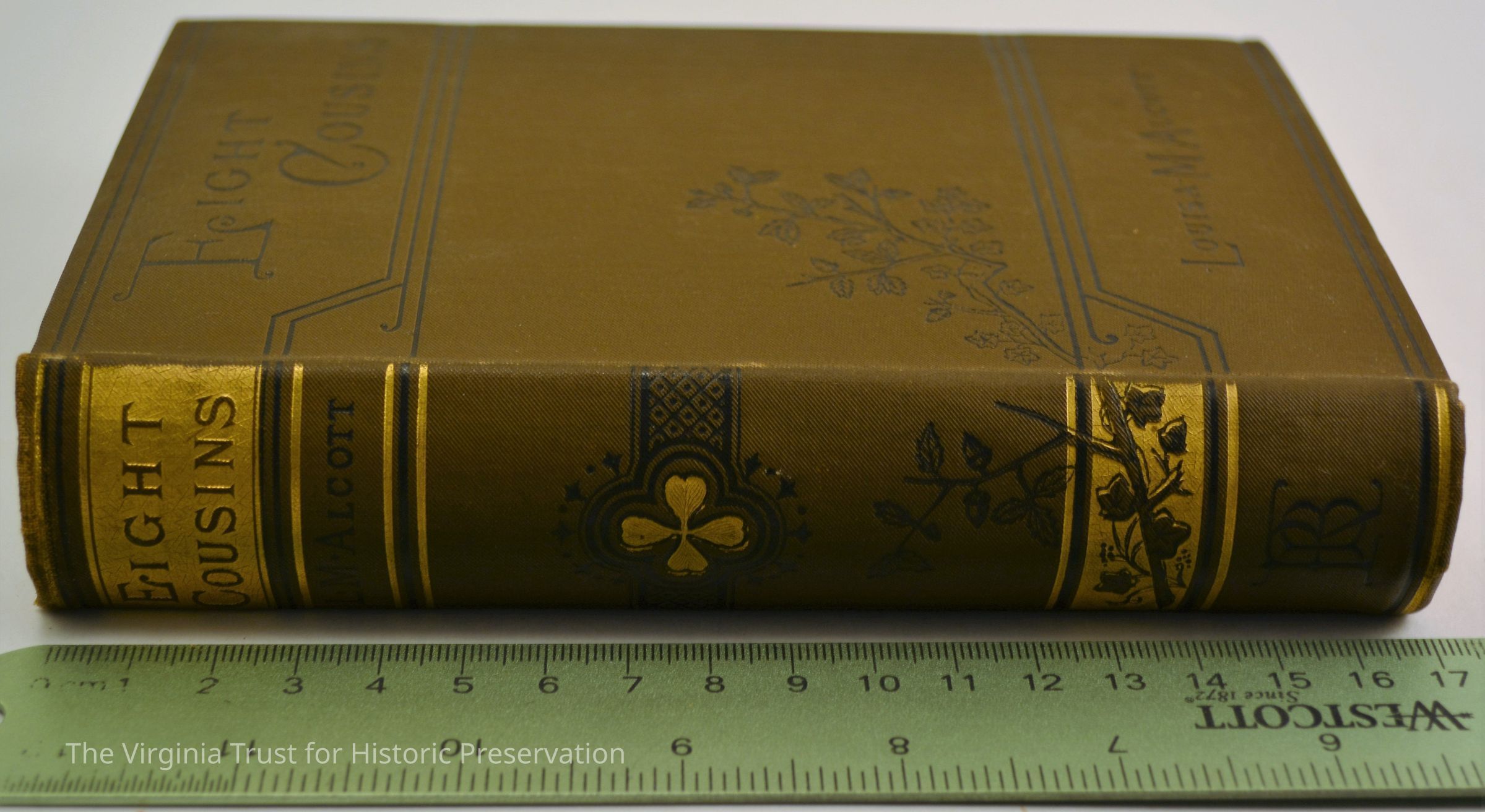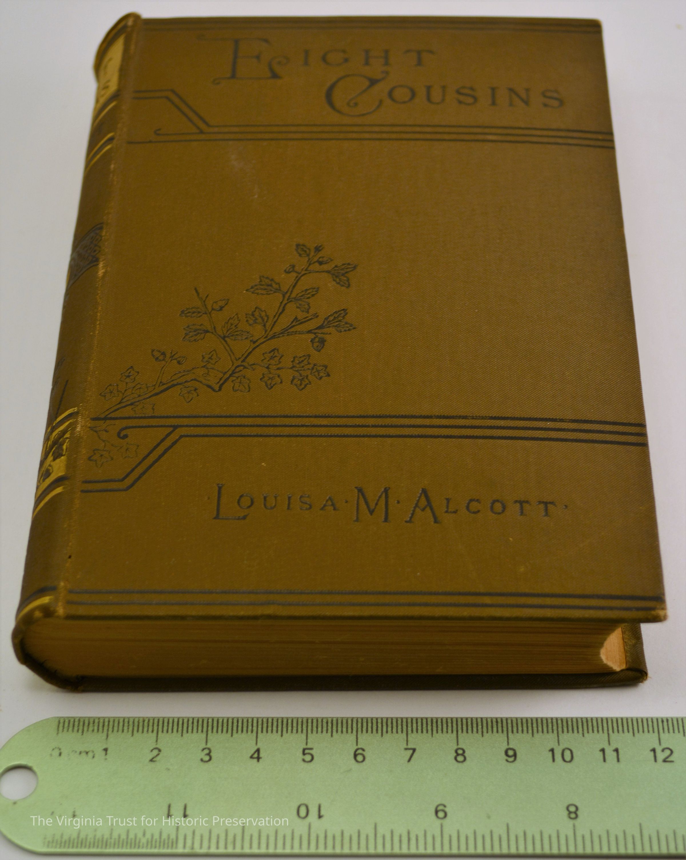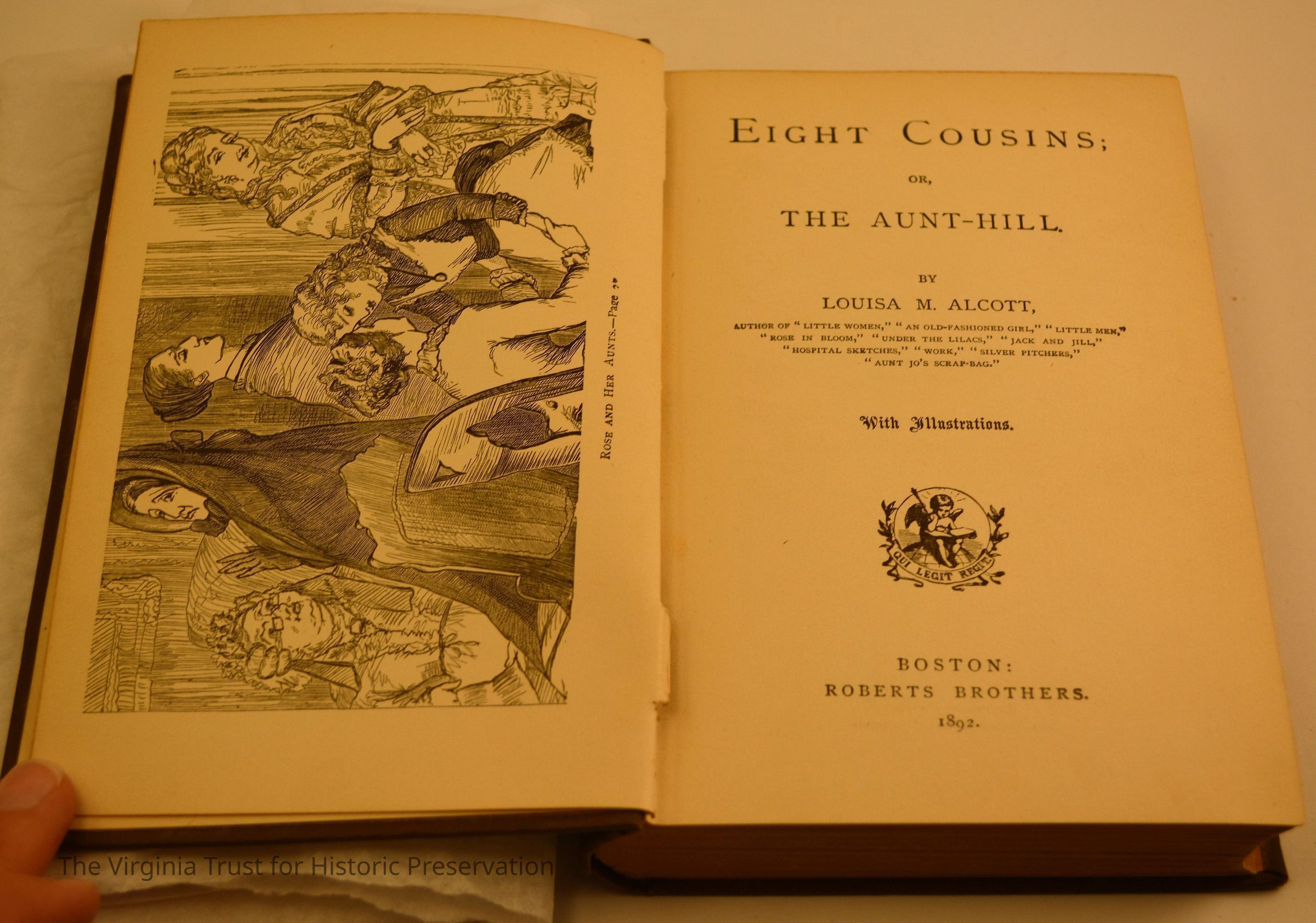 "Eight Cousins Or The Aunt Hill" by Louisa M. Alcott. Boston: Roberts Brothers, 1892. Inside is pasted a picture of Louisa May Alcott's home.