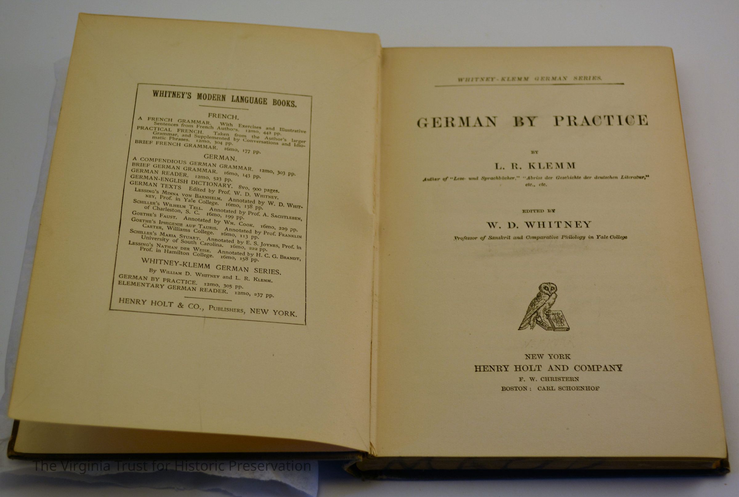 "German by Practice" by L.R. Klemm, edited by W.D. Whitney, NY: Henry Holt and Company, 1882. Missing paper file.