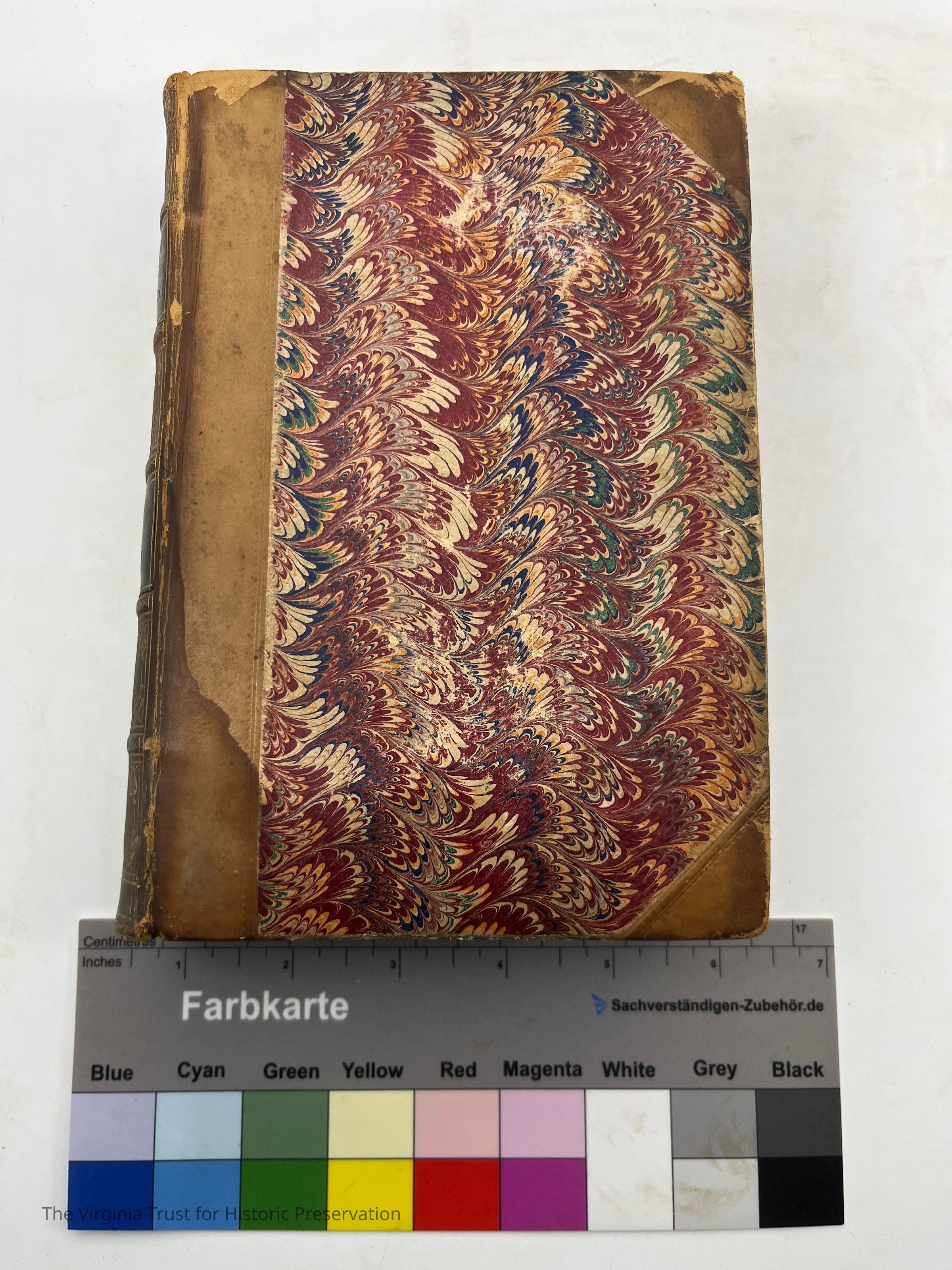 Patterned/bent front cover/maroon colored, excellent binding, readable spine