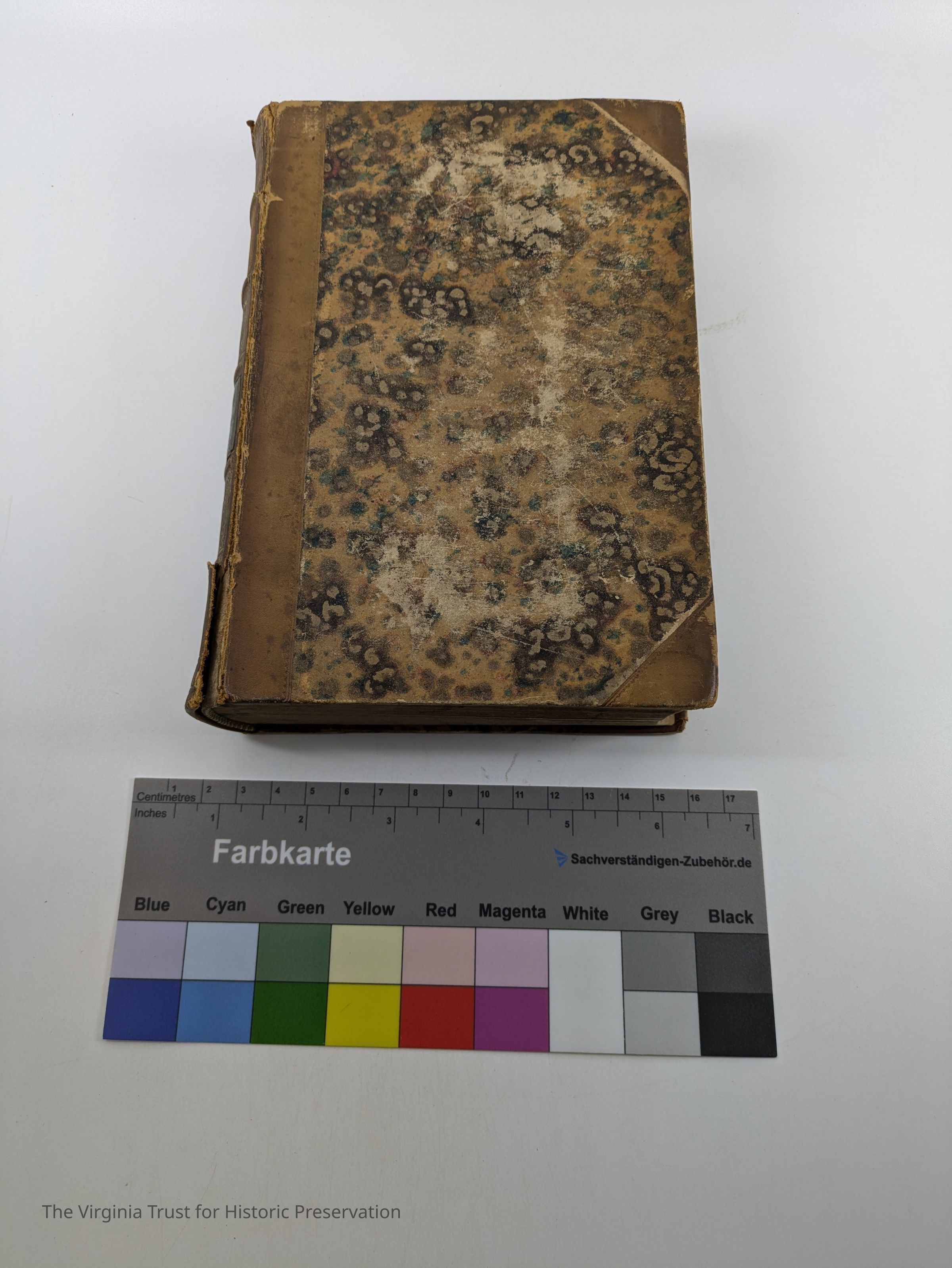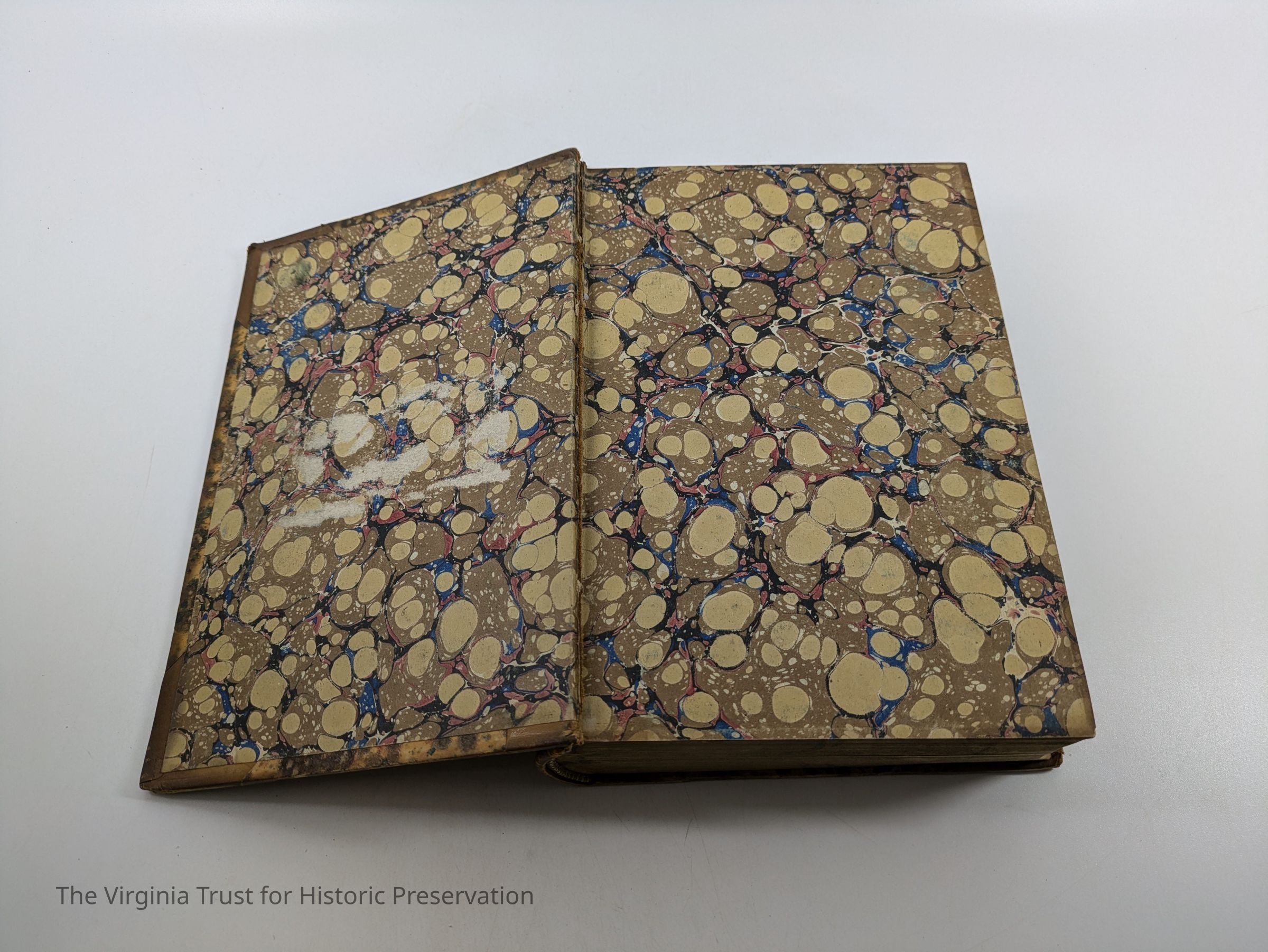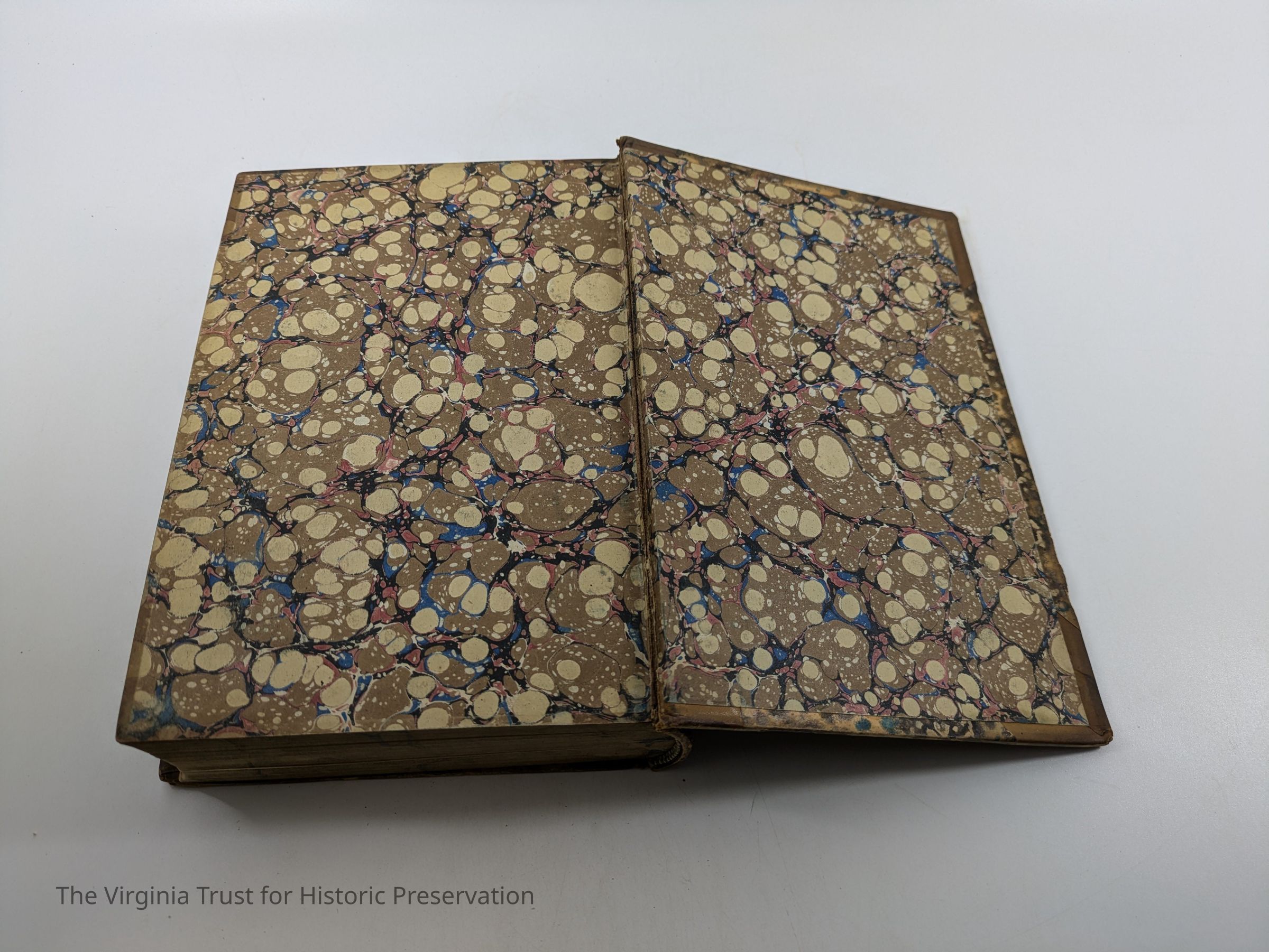 Brown colored/patterned cover, tearing binding, worn/readable spine