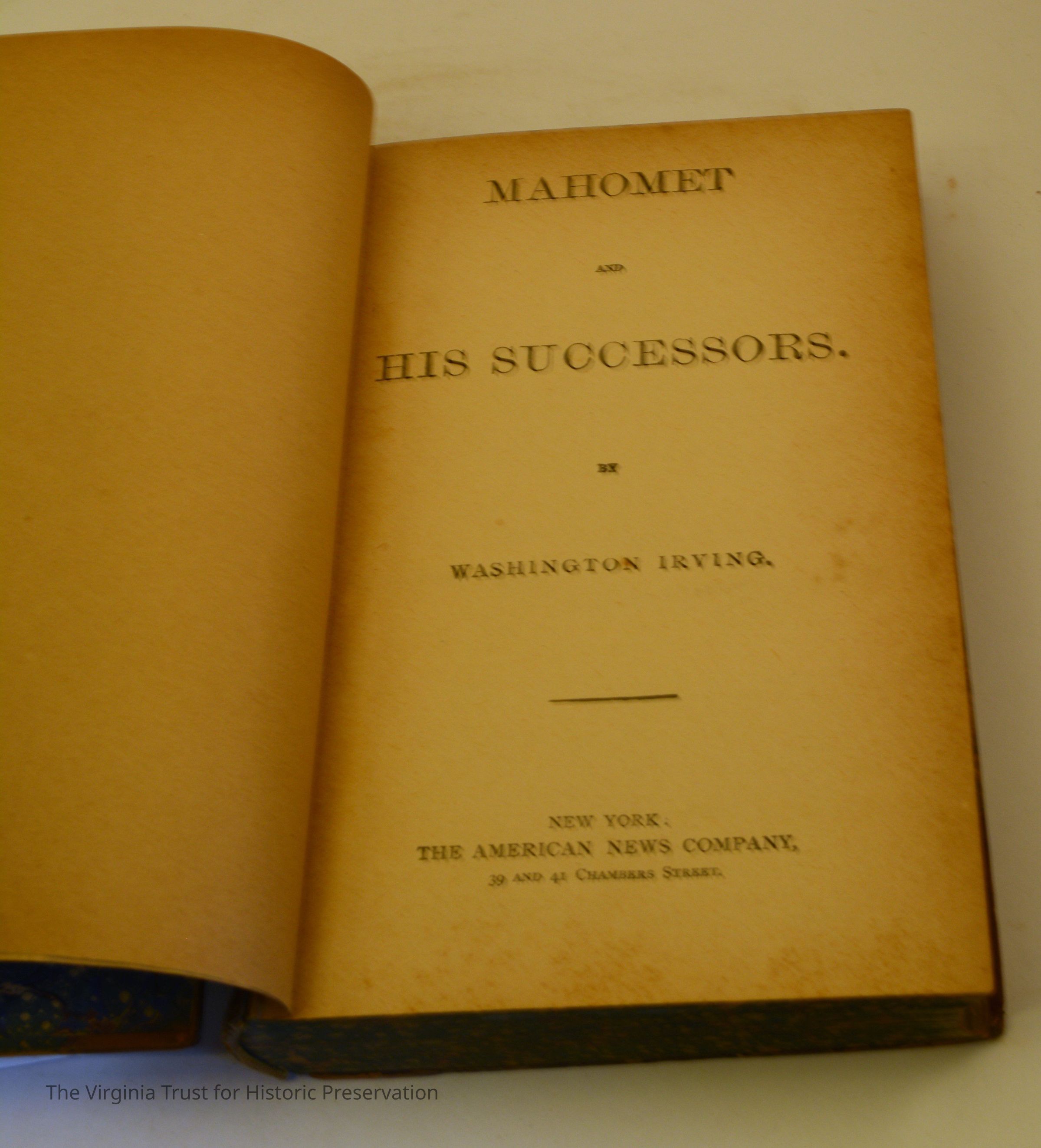 Irving, Washington. Mahomet and His Successors. New York: The American News Company, [n.d.]. One of a set of 10 volumes by Washington Irving.