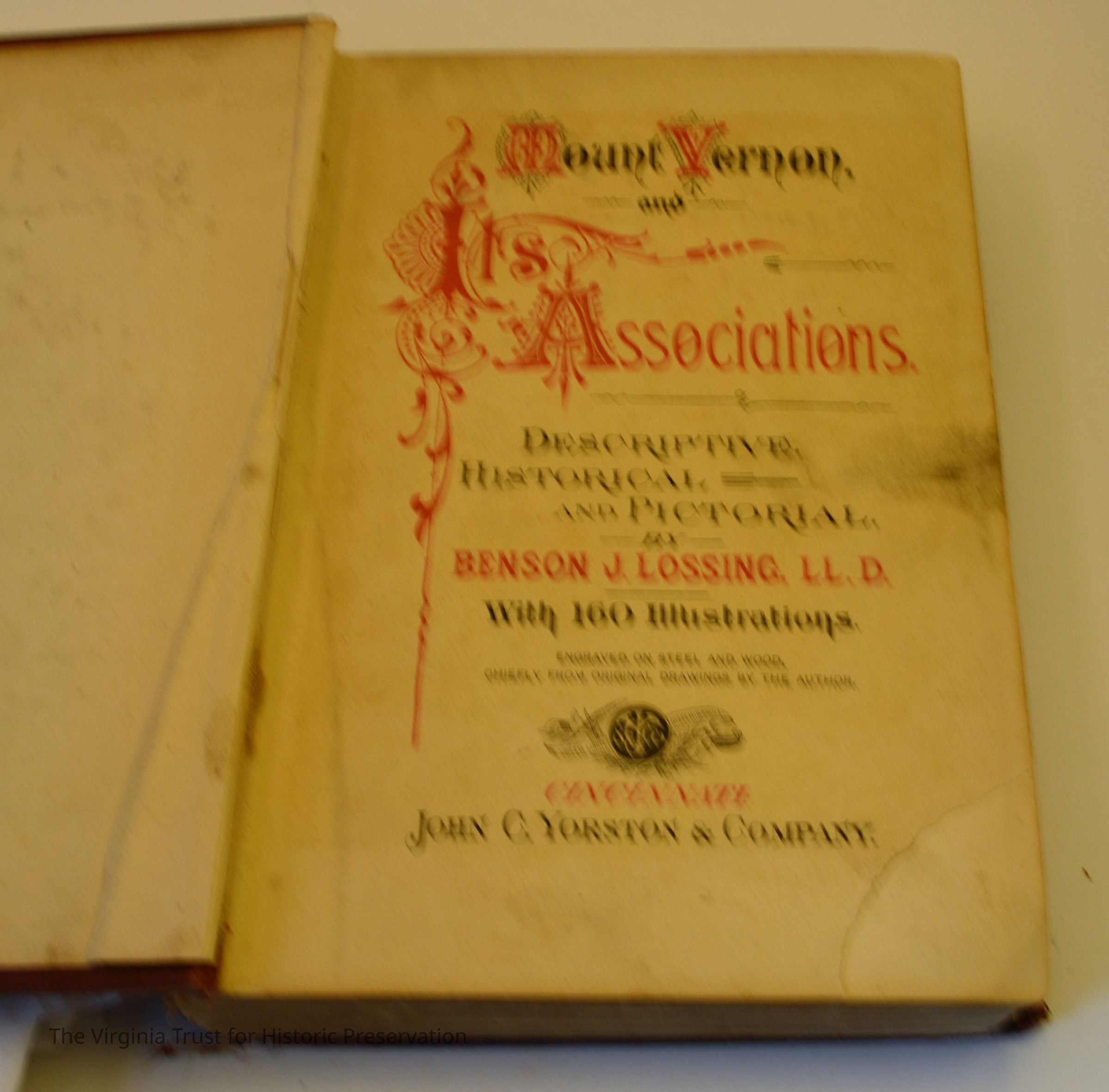 Lossing, Benson J. Mount Vernon, and its Associations. Cincinatti: John C. Yorston and Company, 1883. Missing paper file.