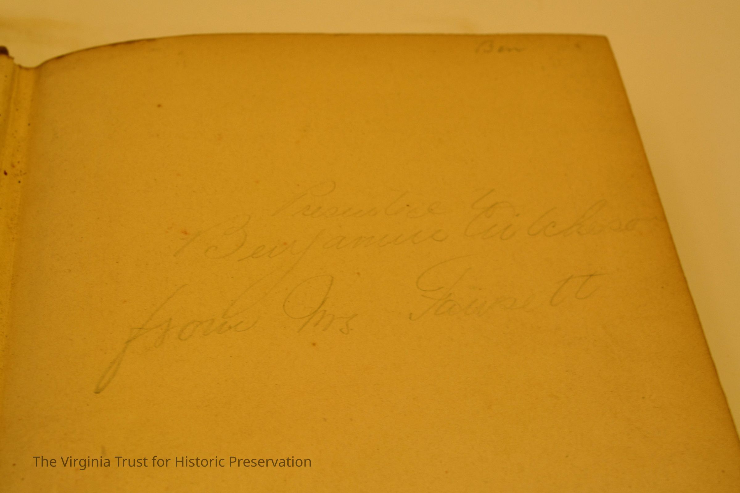 Inscribed "Presented to Benjamin Aitcheson from Mrs. Fawsett"