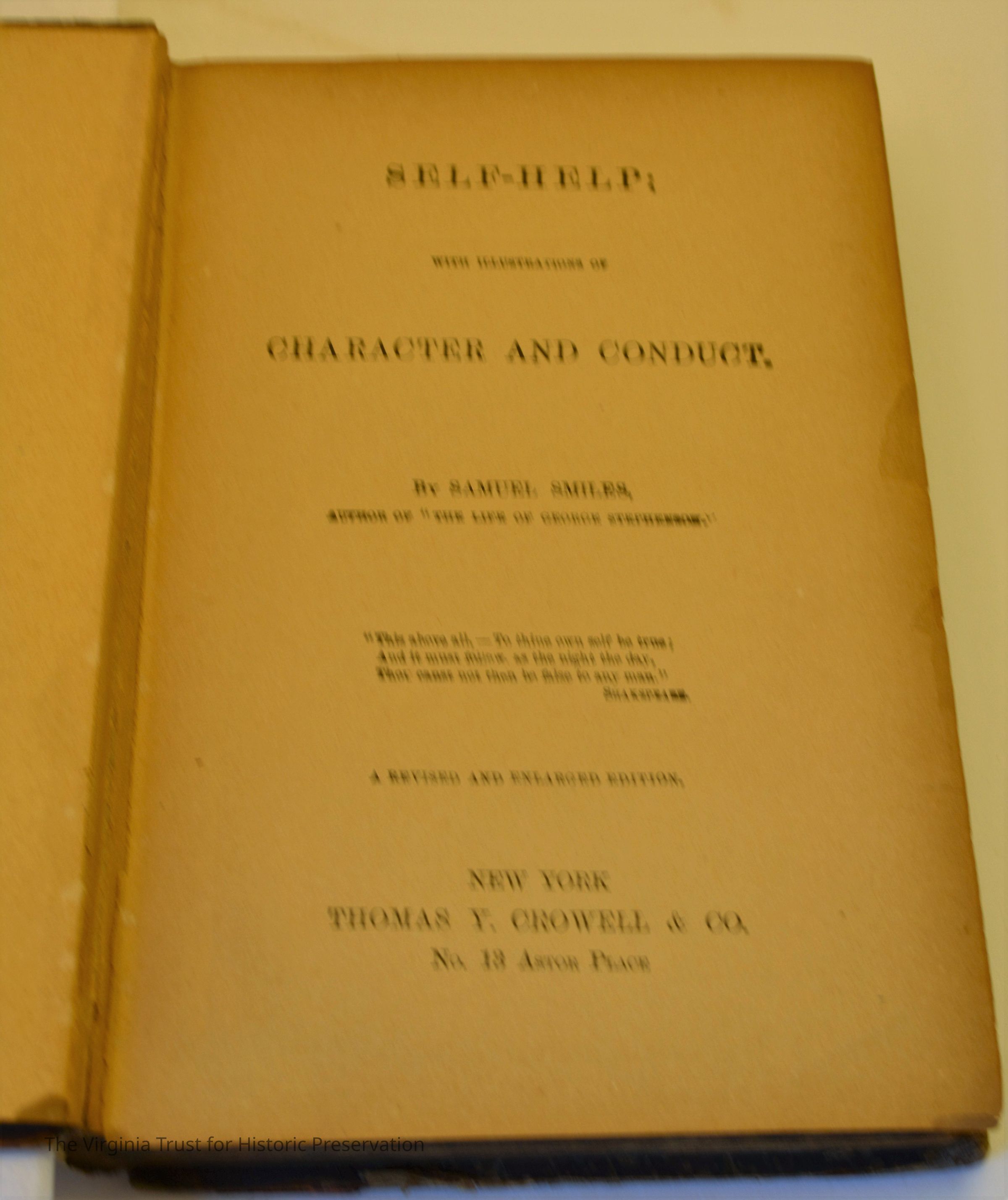 "Self Help; with Illustrations of Character and Conduct". New York: Thomas Y. Crowell, [no date]. by Samuel Smiles. Paper file is 1986.166.