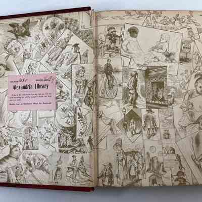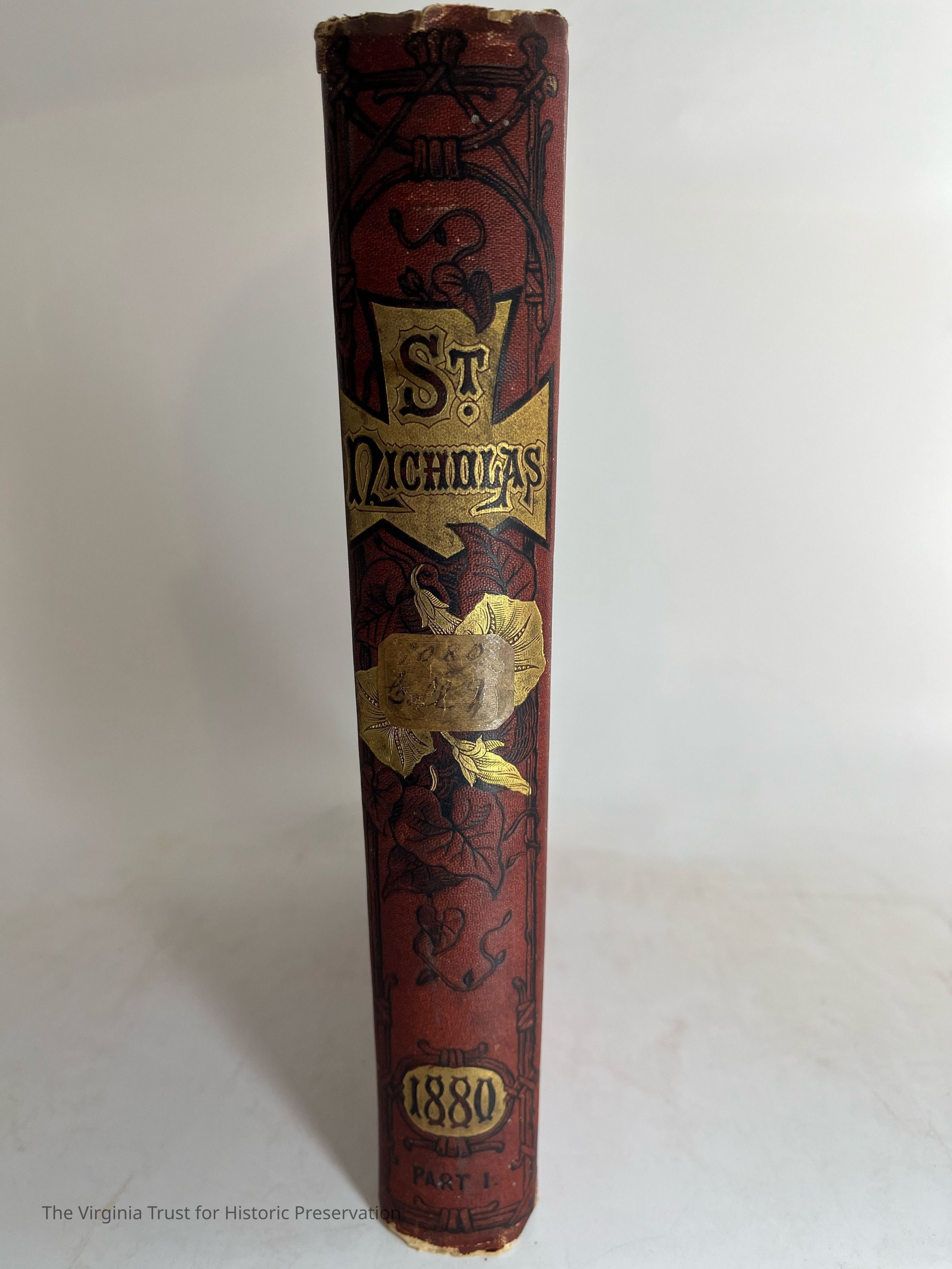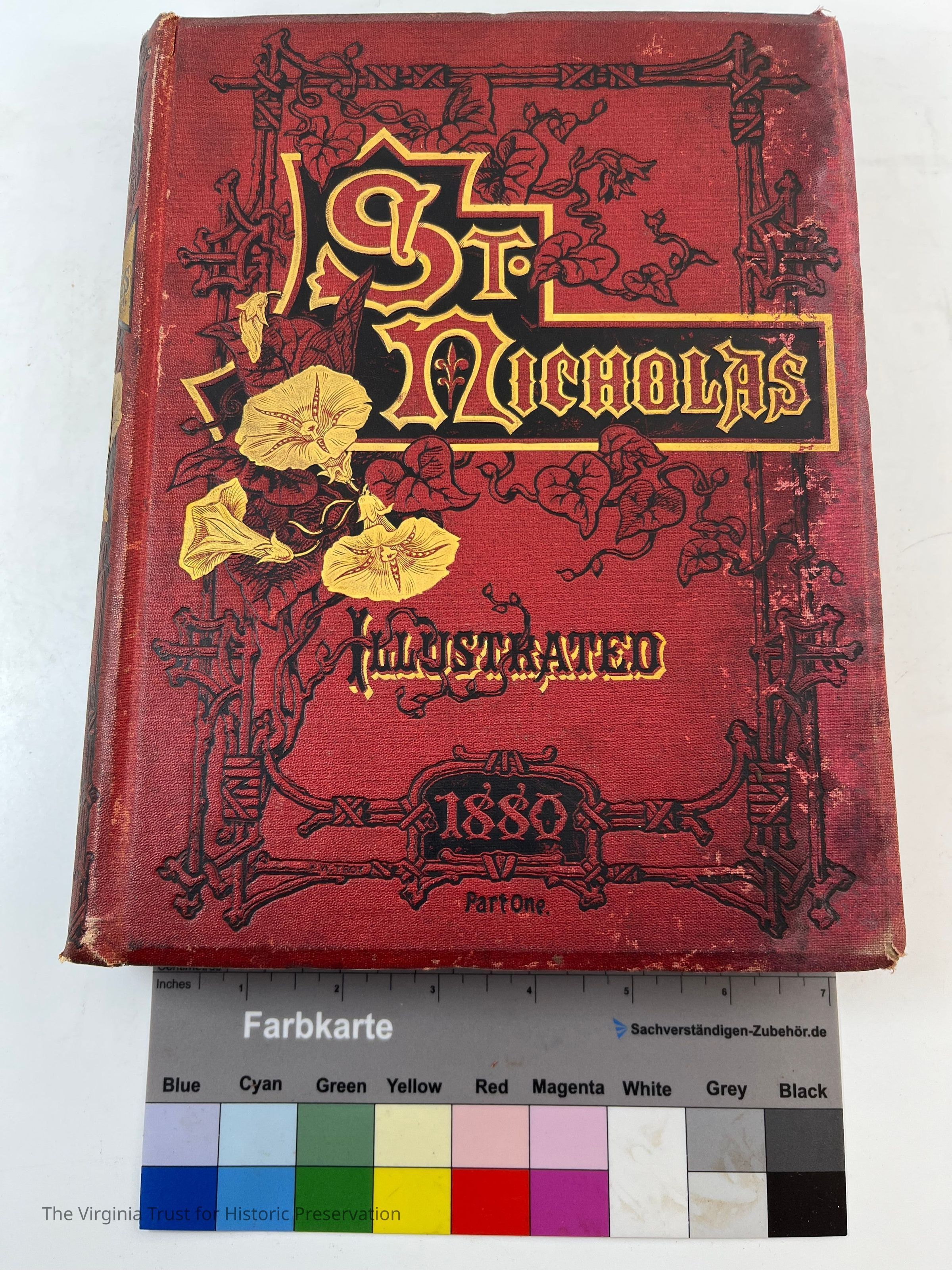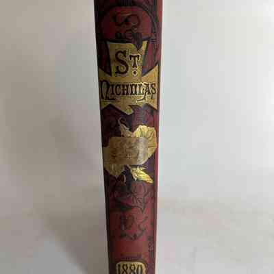 Maroon colored, flower pattern on front cover, good binding, readable spine, sticker on spine