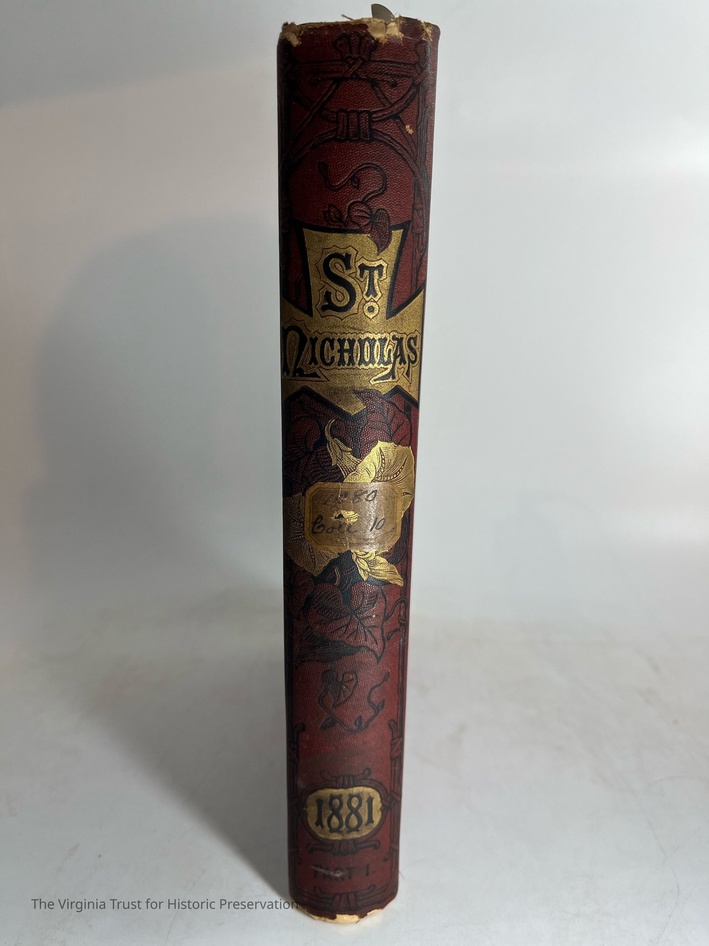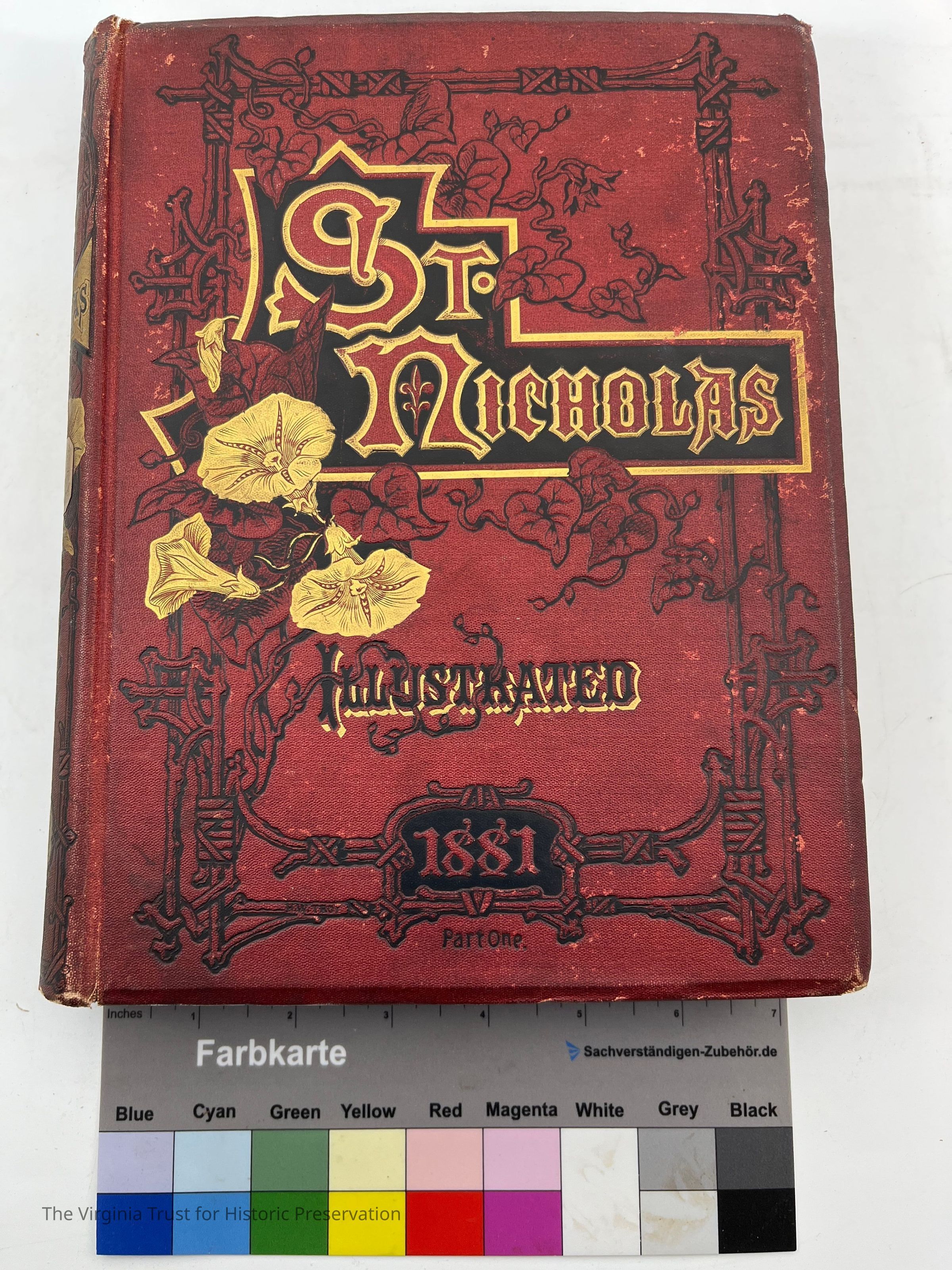 Maroon colored, flower pattern on front cover, good binding, readable spine, sticker on spine