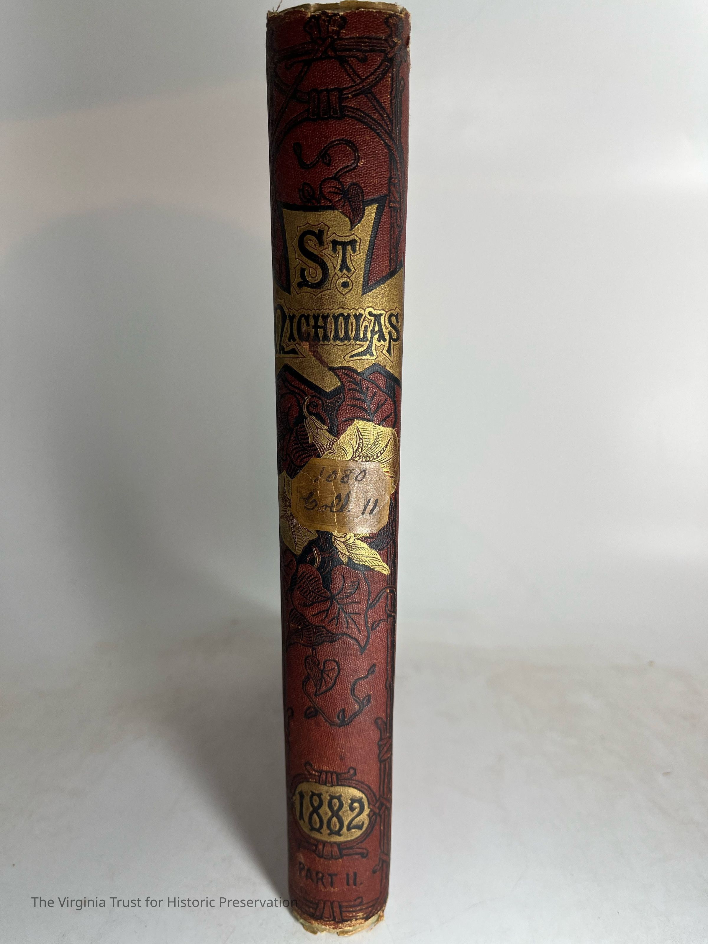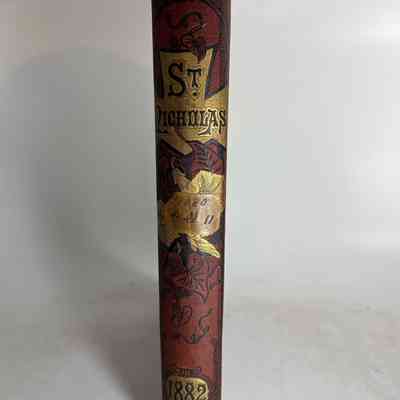 Maroon colored, flower pattern on front cover, good binding, readable spine, sticker on spine