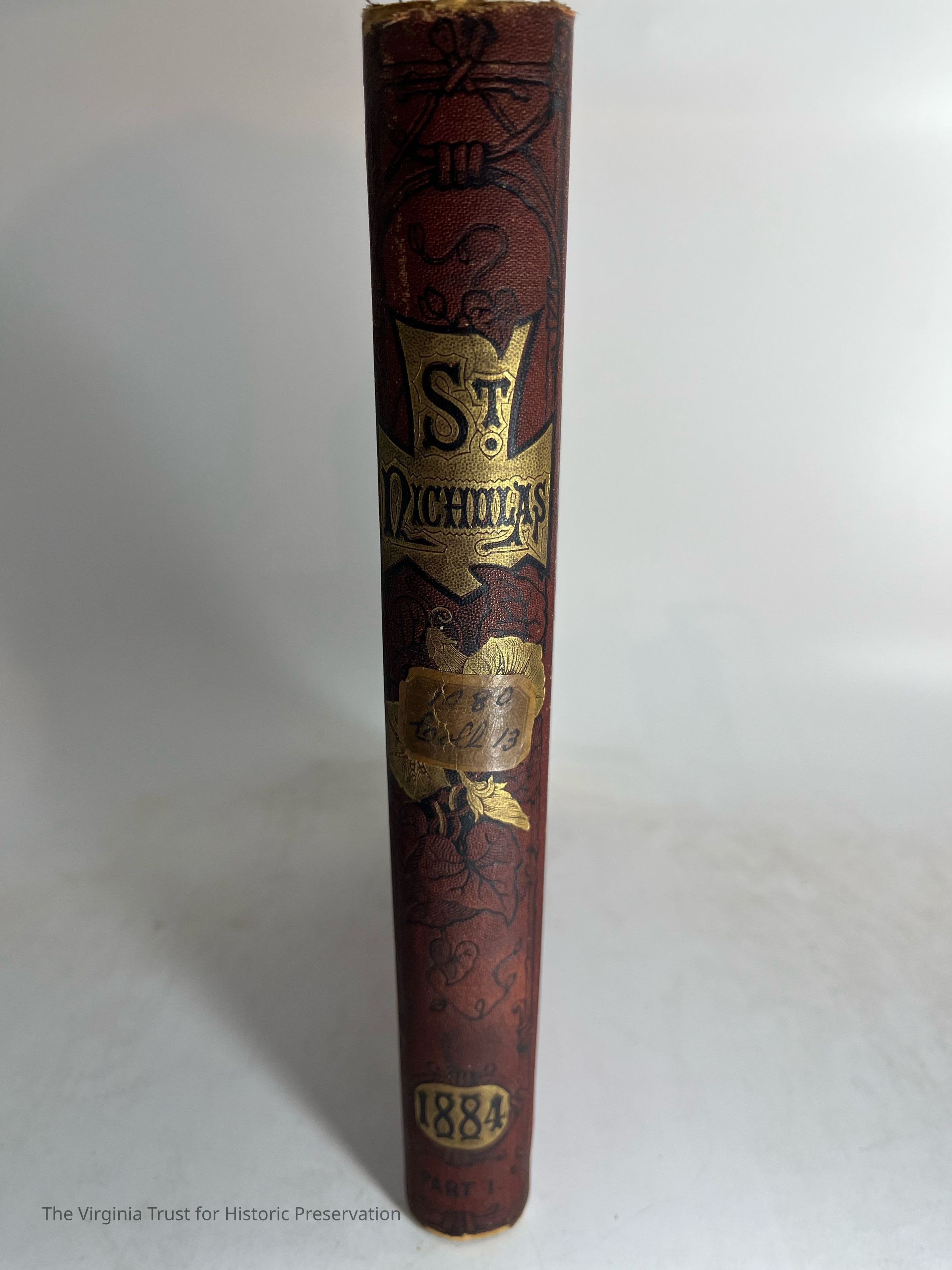 Maroon colored, flower pattern on front cover, good binding, readable spine, sticker on spine