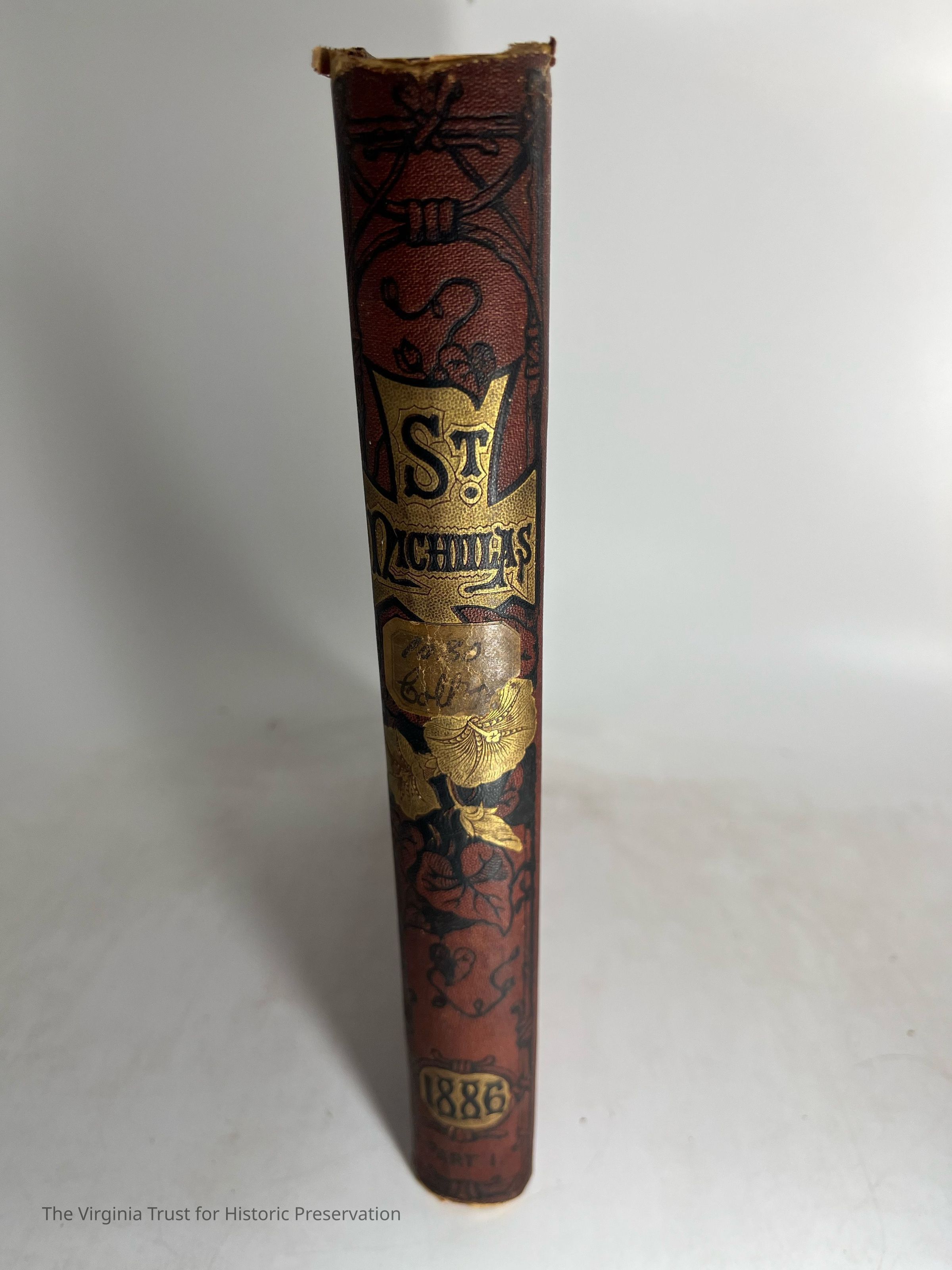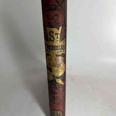Maroon colored, flower pattern on front cover, good binding, readable spine, sticker on spine