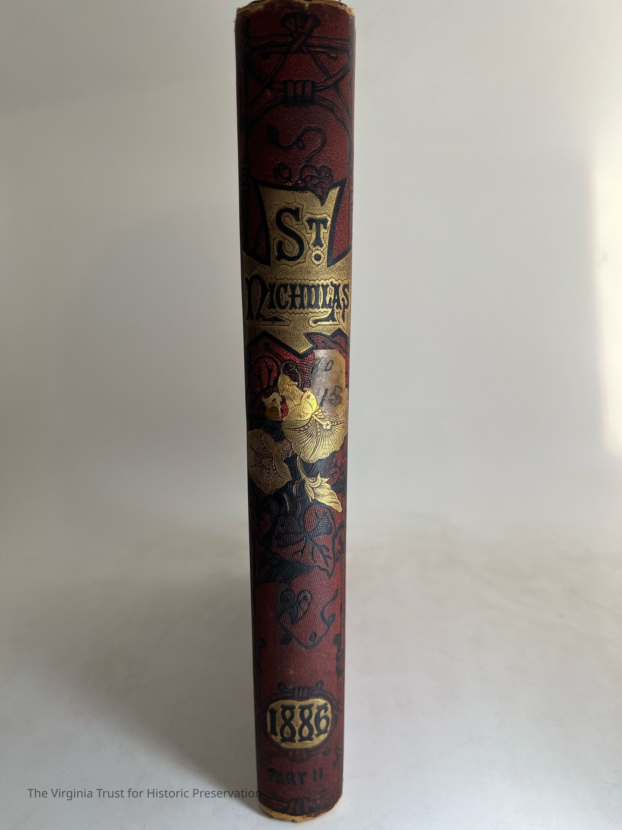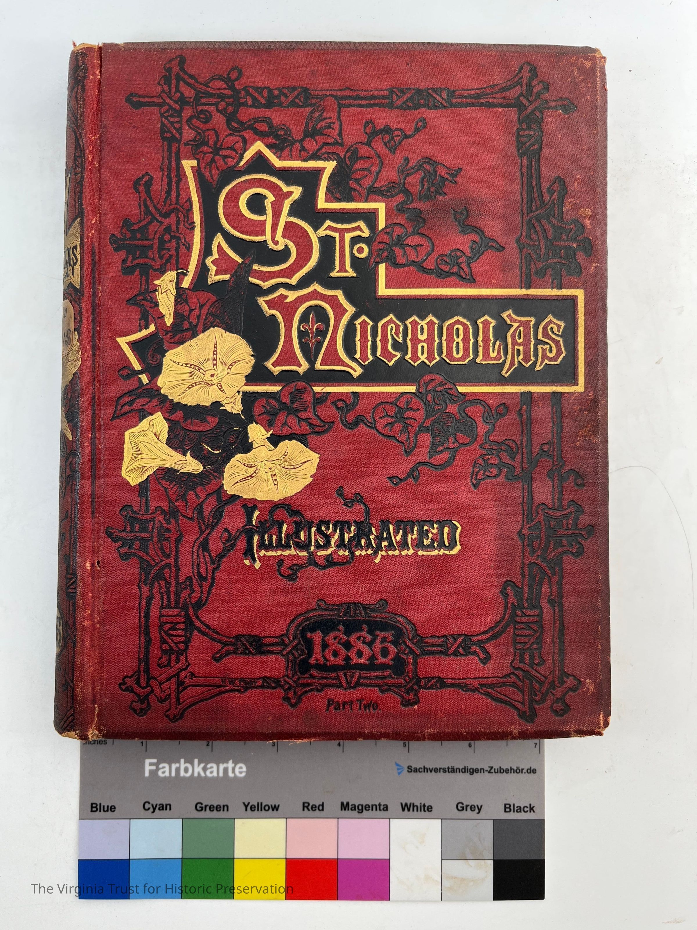 Maroon colored, flower pattern on front cover, good binding, readable spine, sticker on spine