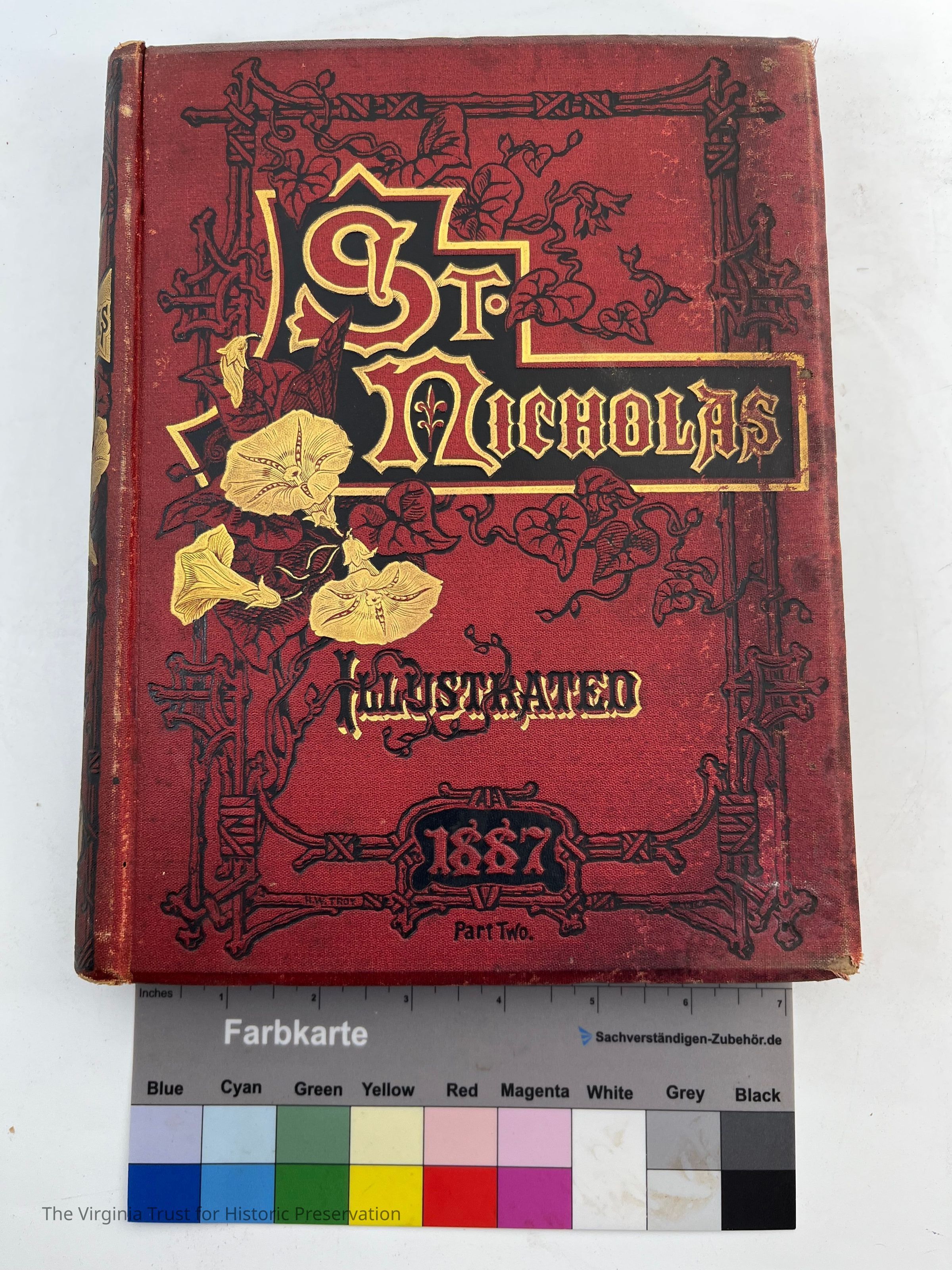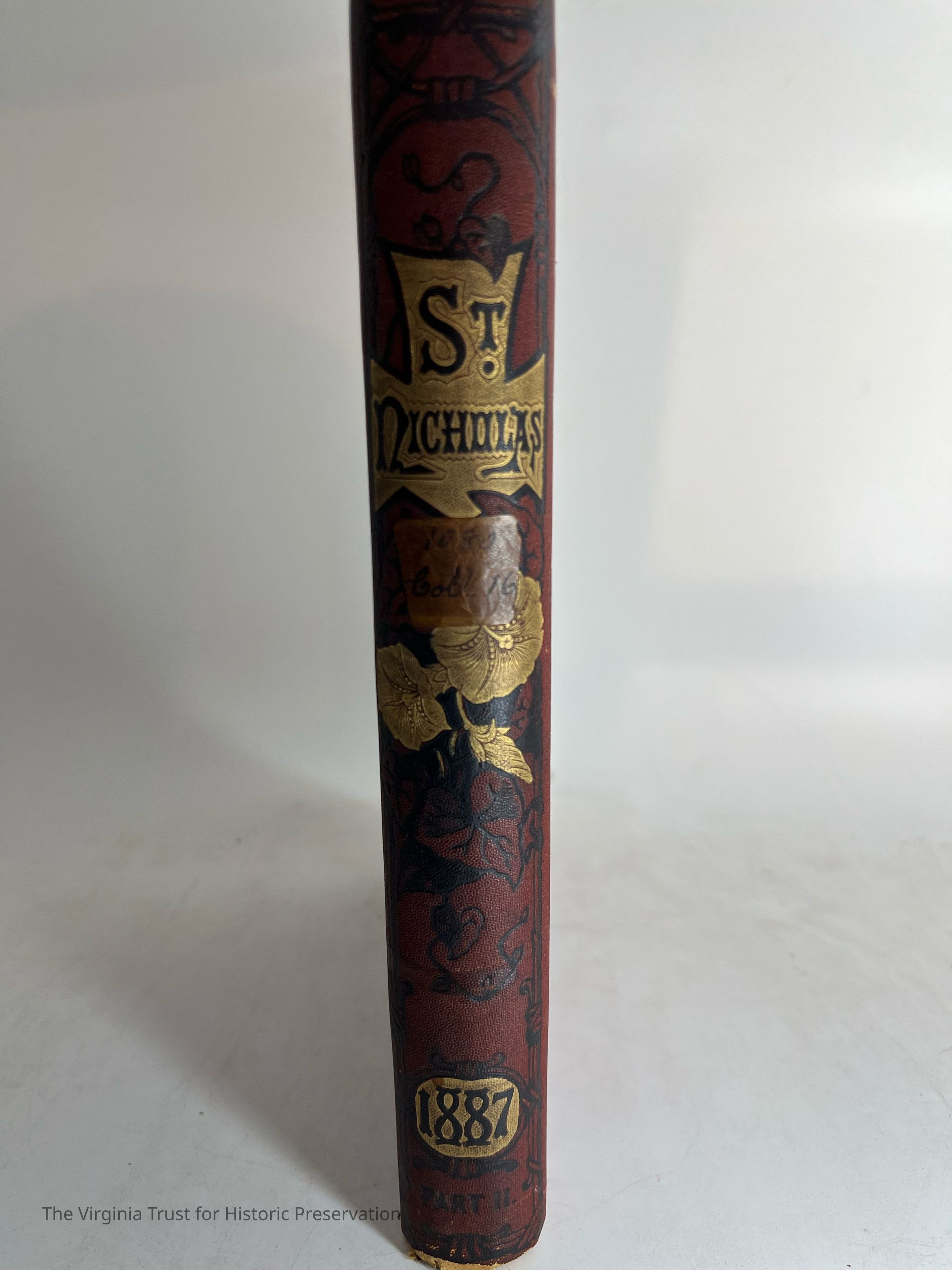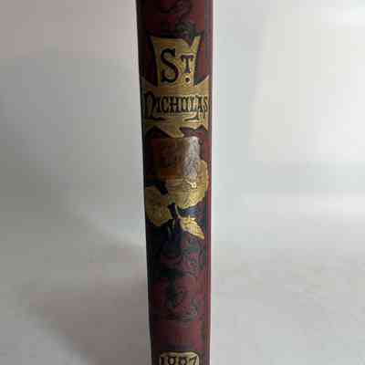 Maroon colored, flower pattern on front cover, good binding, readable spine, sticker on spine