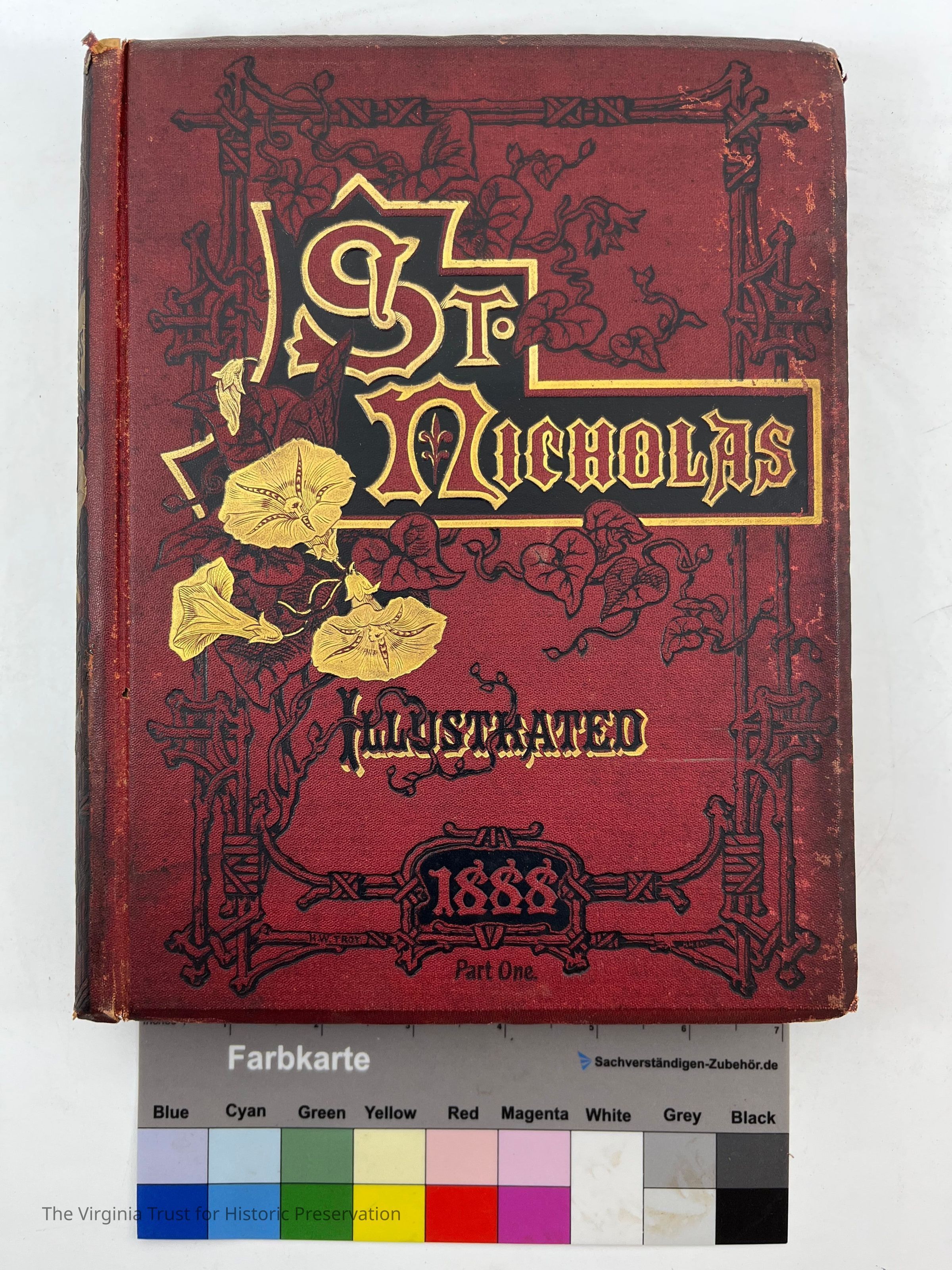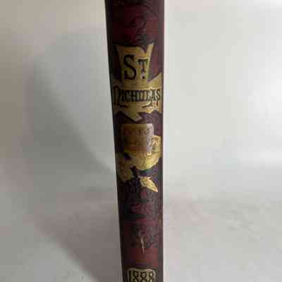 Maroon colored, flower pattern on front cover, good binding, readable spine, sticker on spine