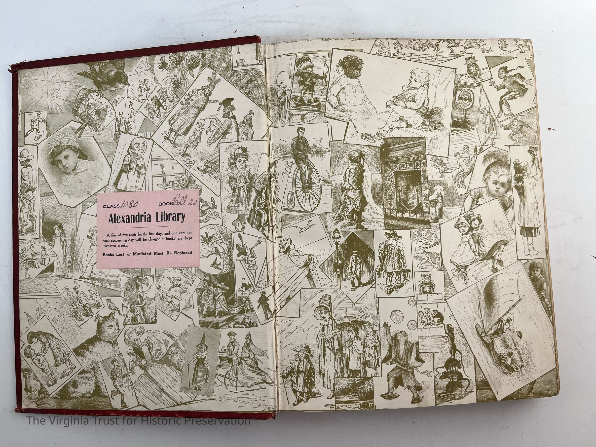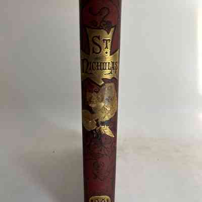 Maroon colored, flower pattern on front cover, good binding, readable spine, sticker on spine