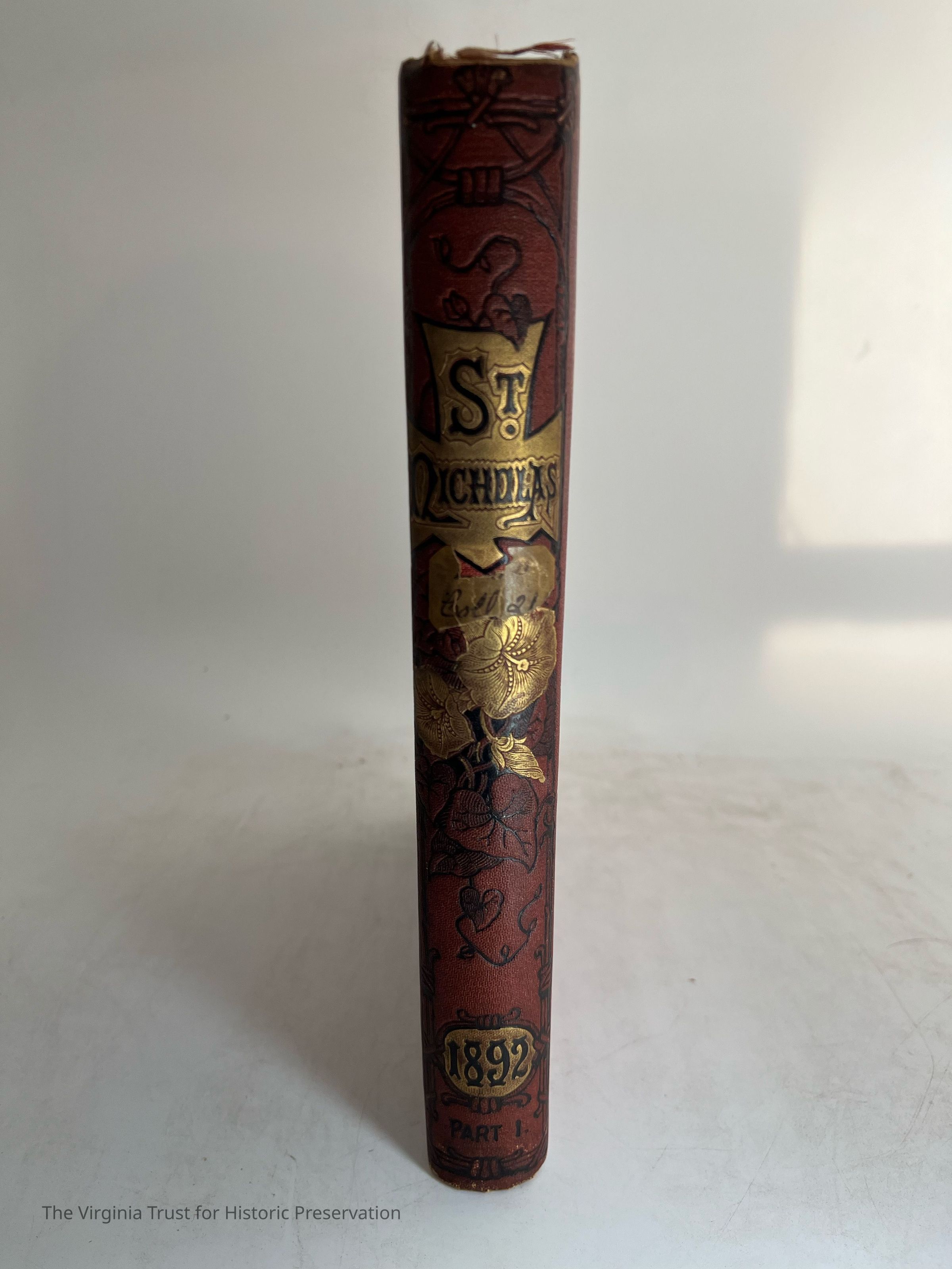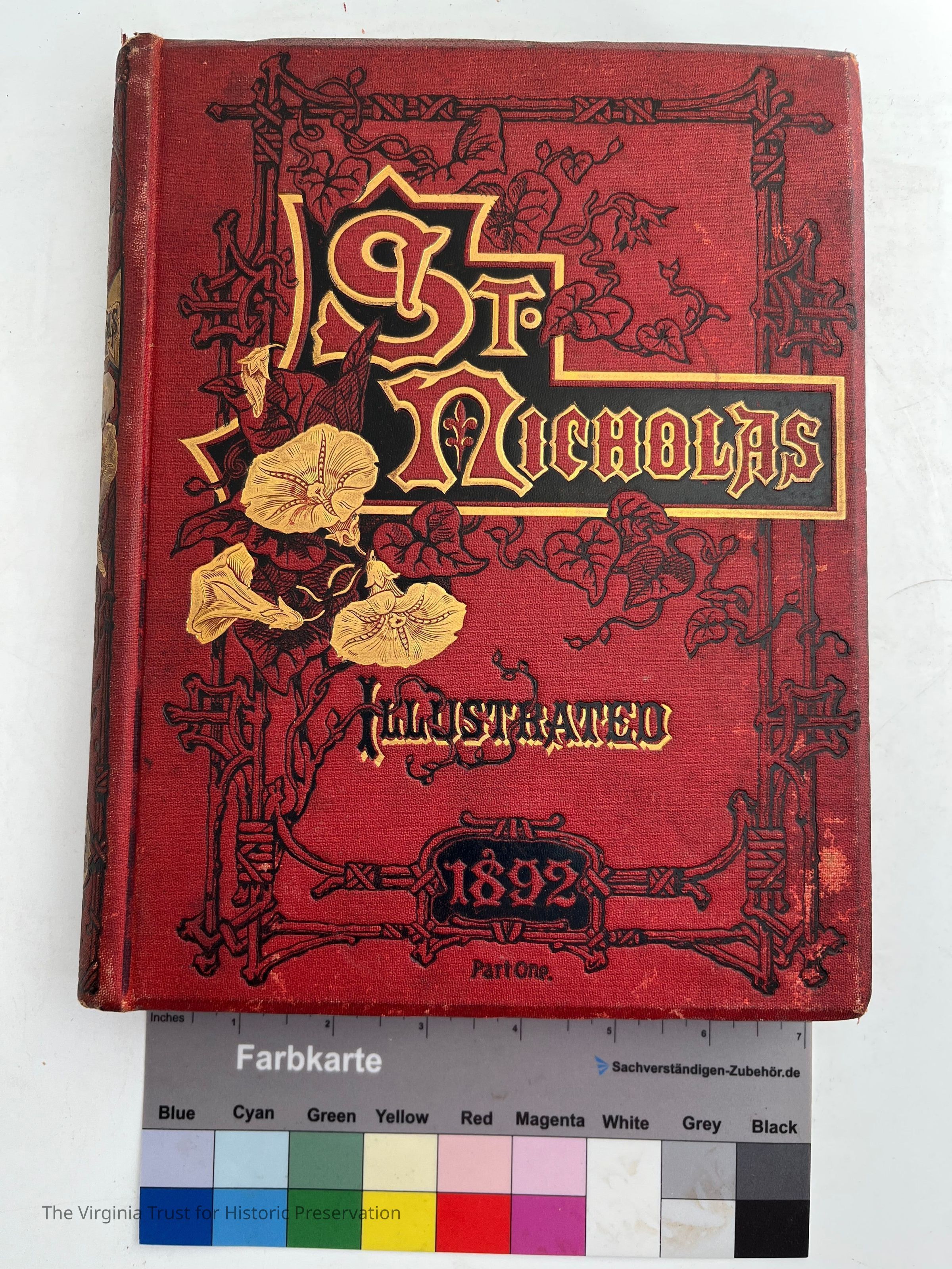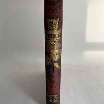 Maroon colored, flower pattern on front cover, good binding, readable spine, sticker on spine