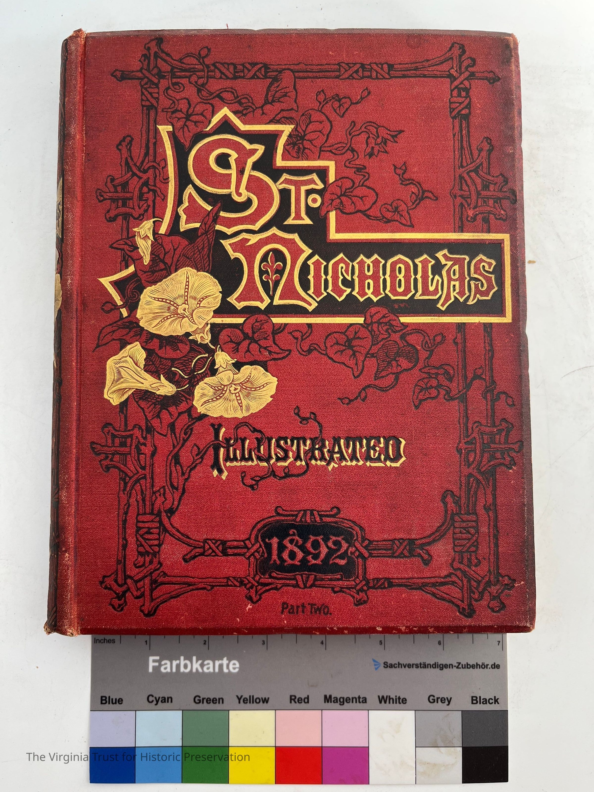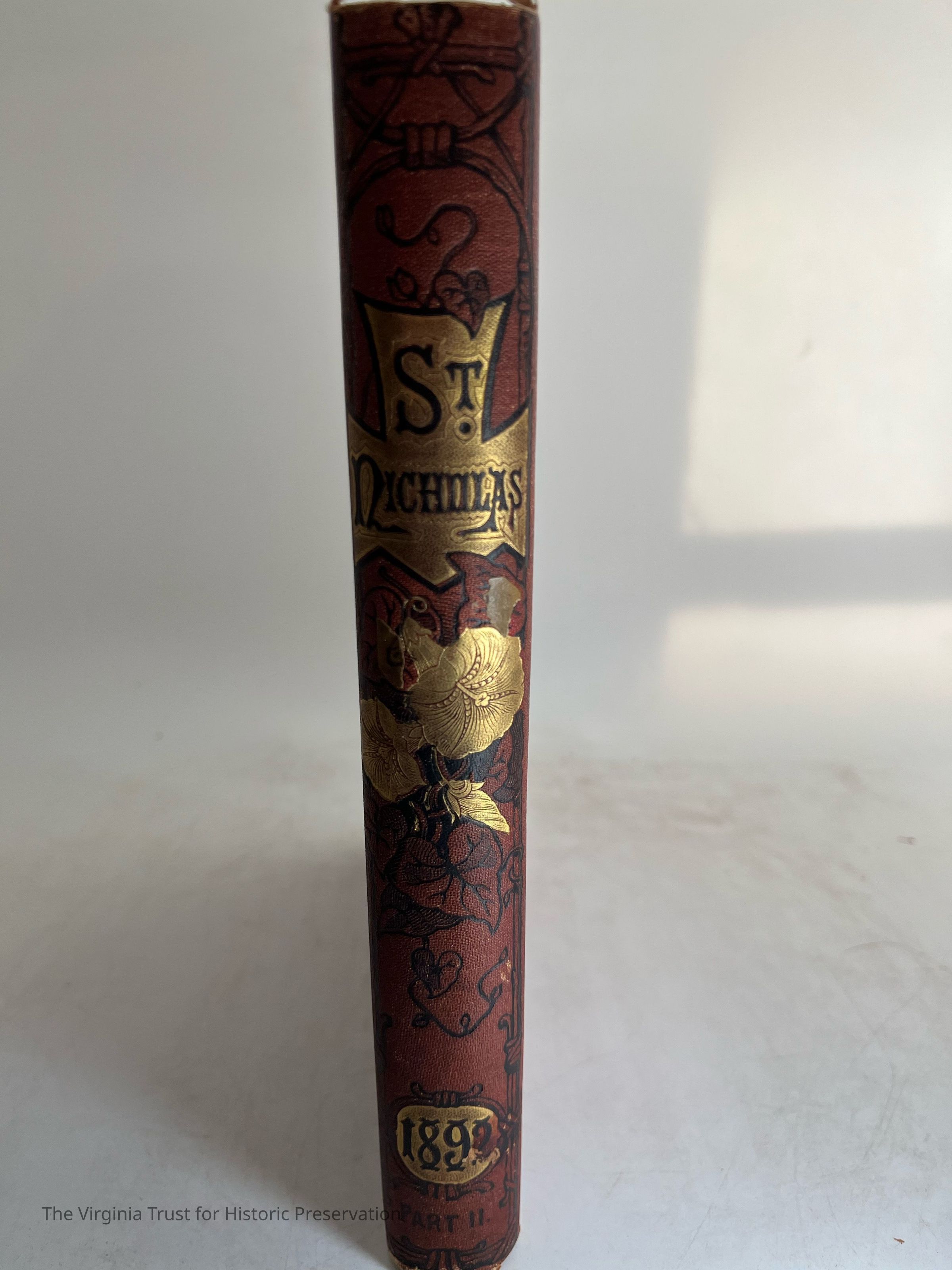 Maroon colored, flower pattern on front cover, good binding, readable spine, sticker on spine