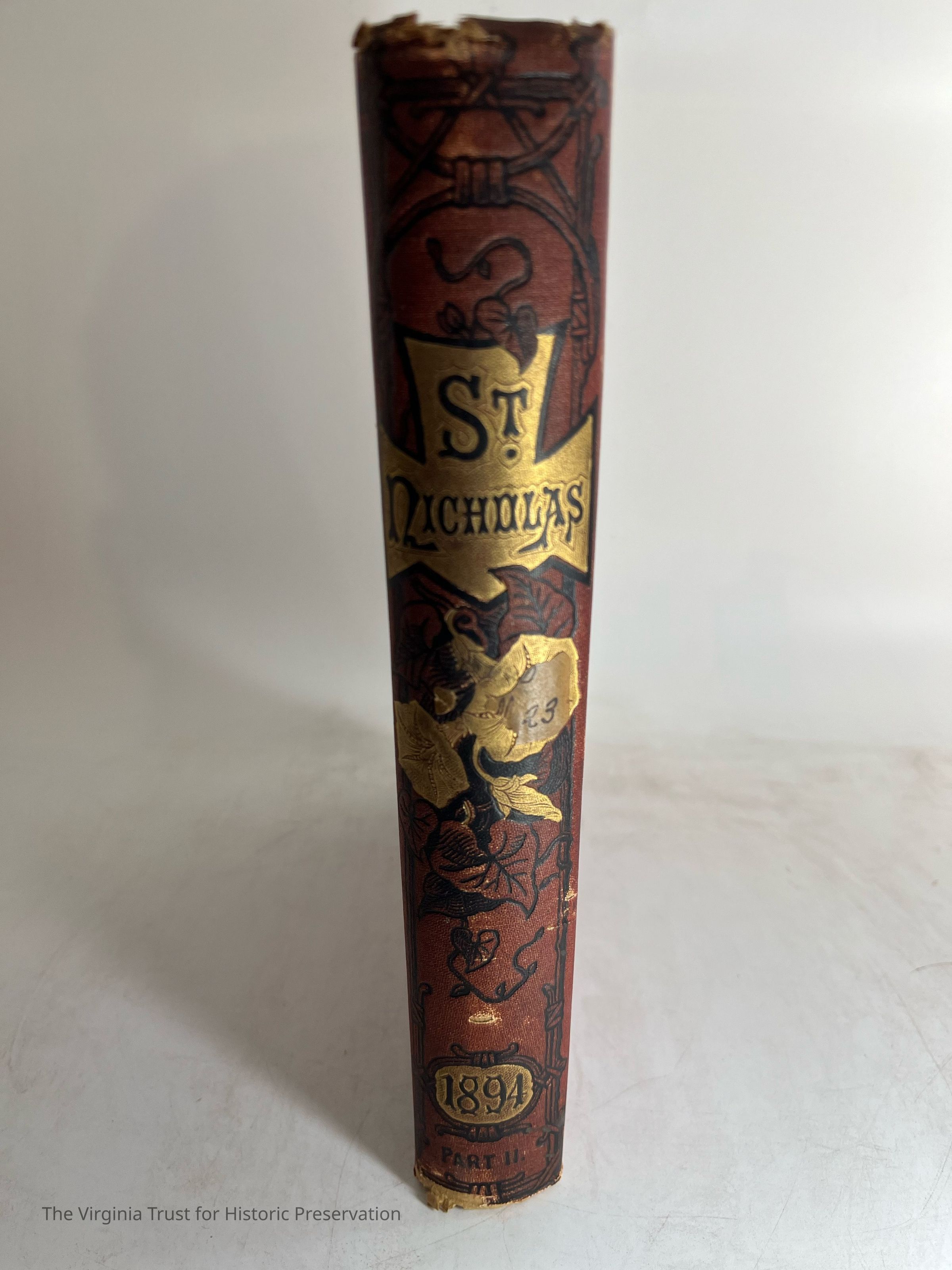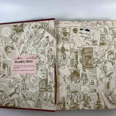 Maroon colored, flower pattern on front cover, good binding, readable spine, sticker on spine