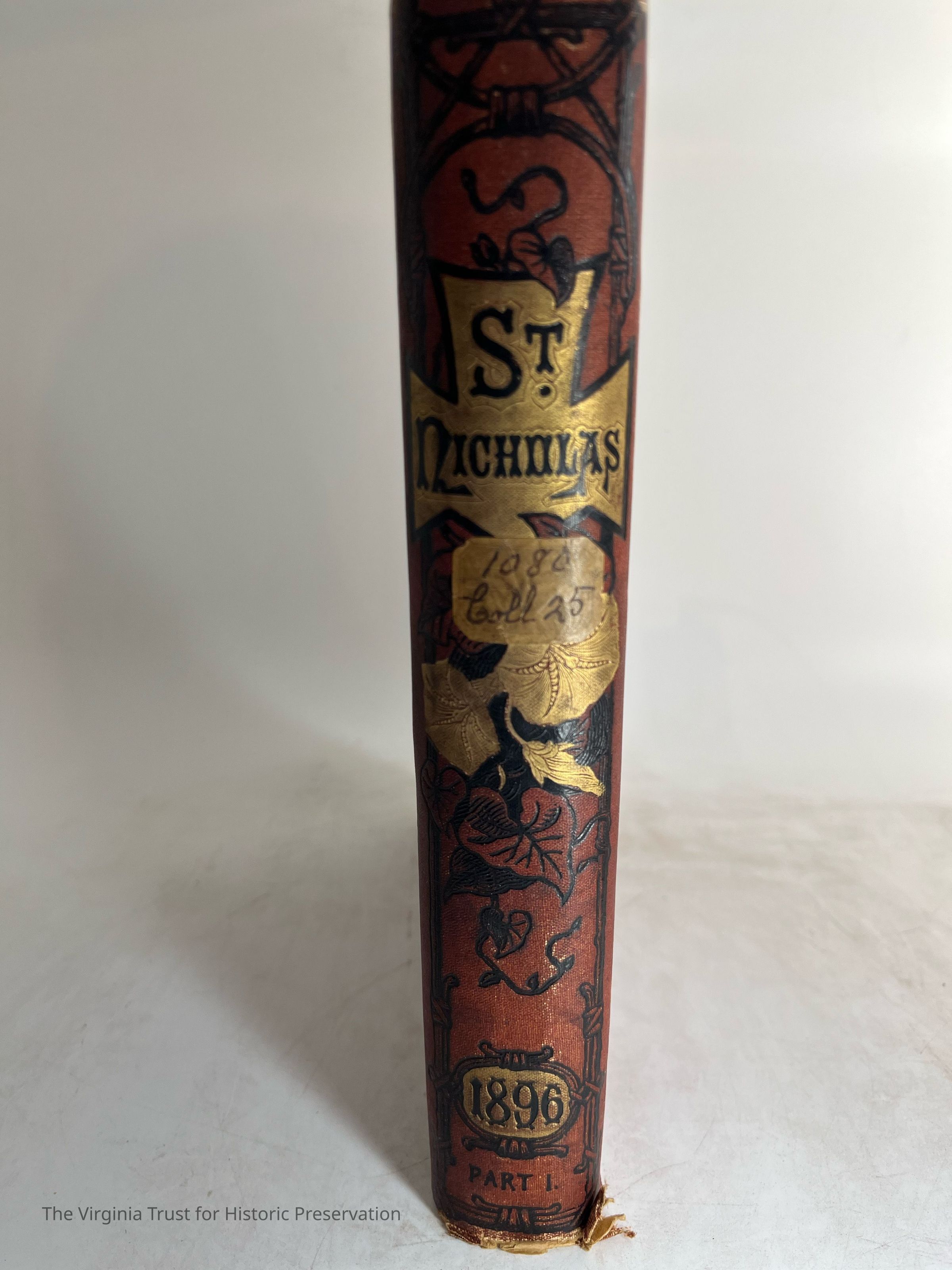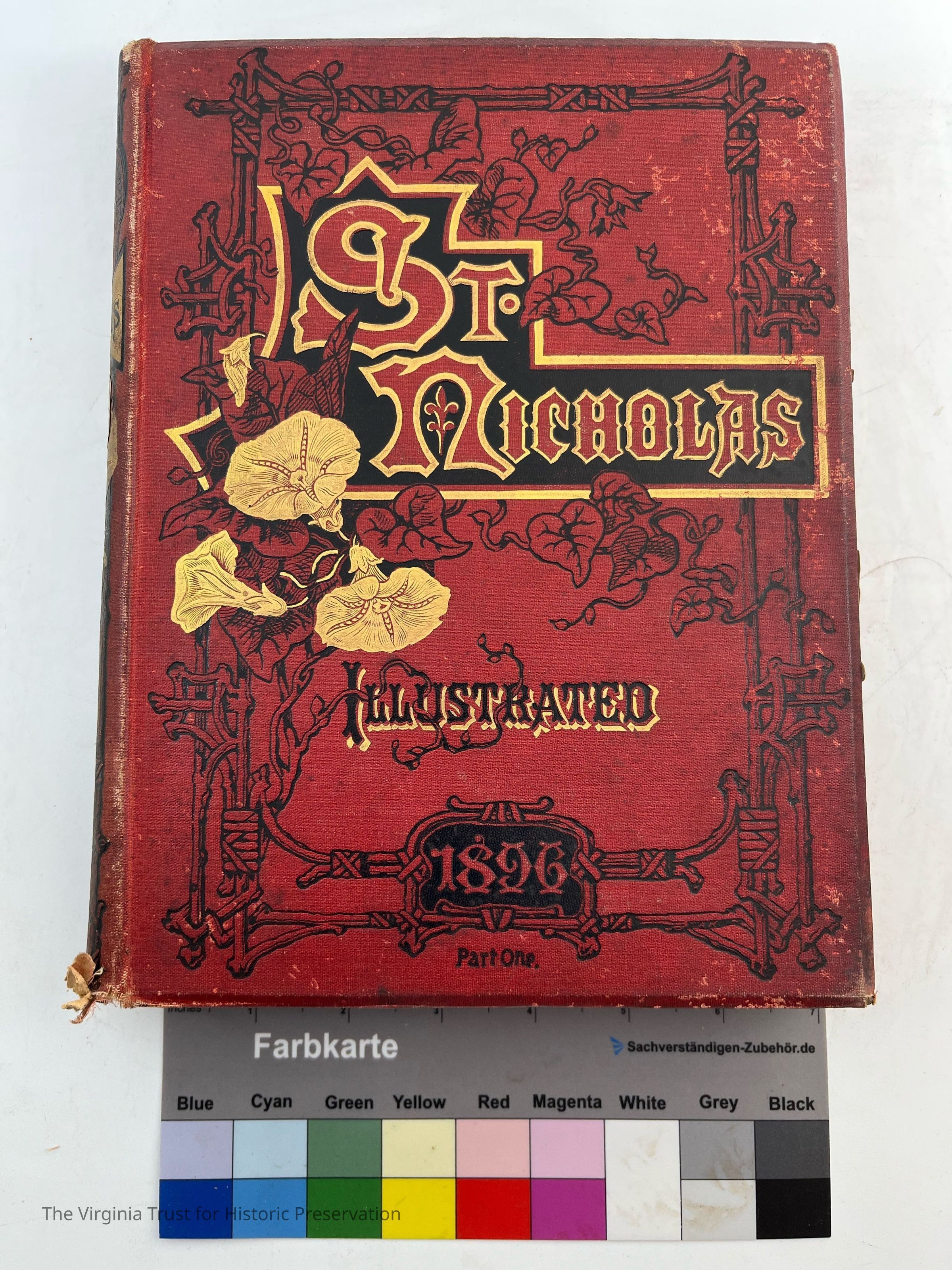 Maroon colored, flower pattern on front cover, good binding, readable spine, sticker on spine
