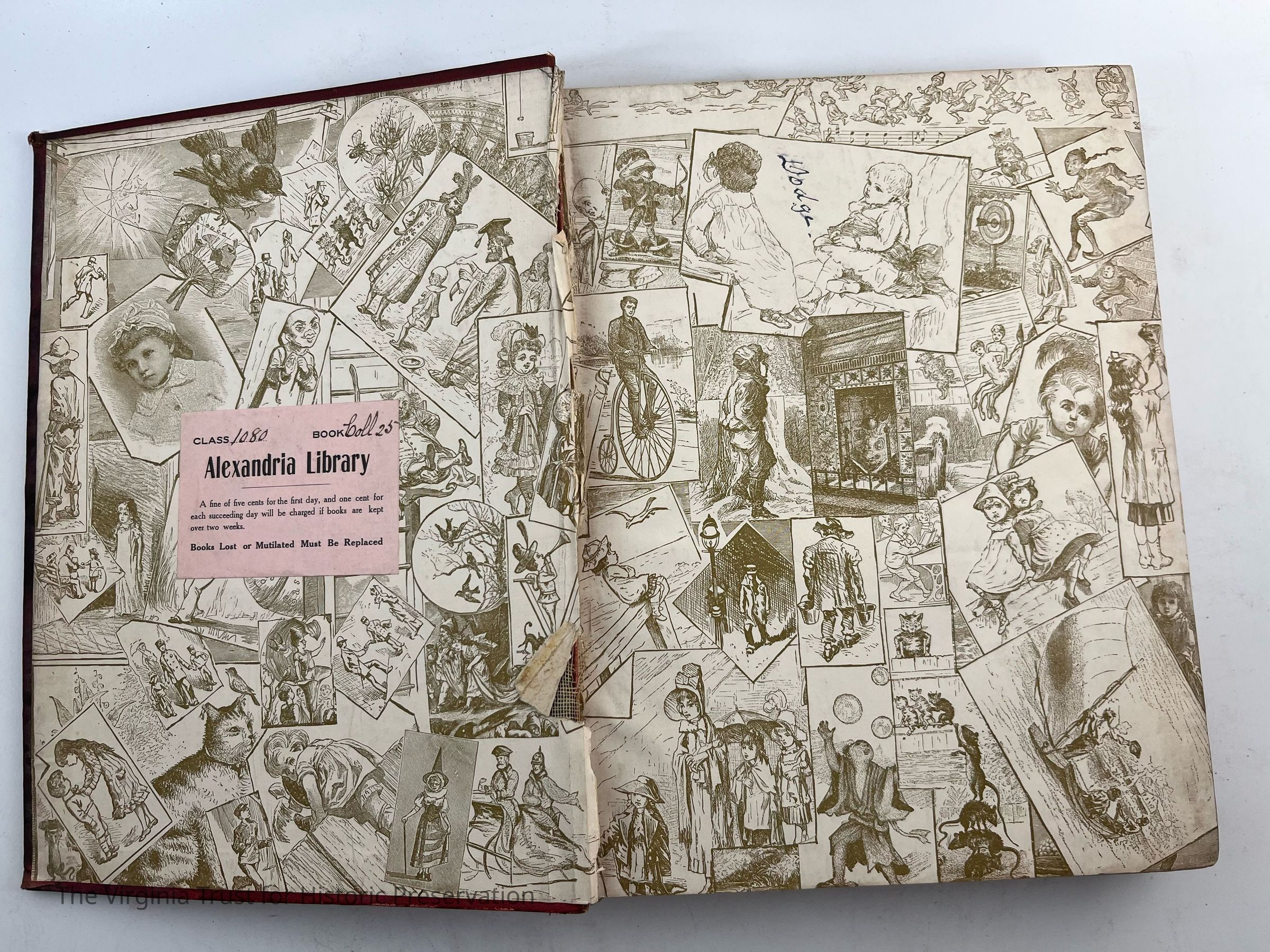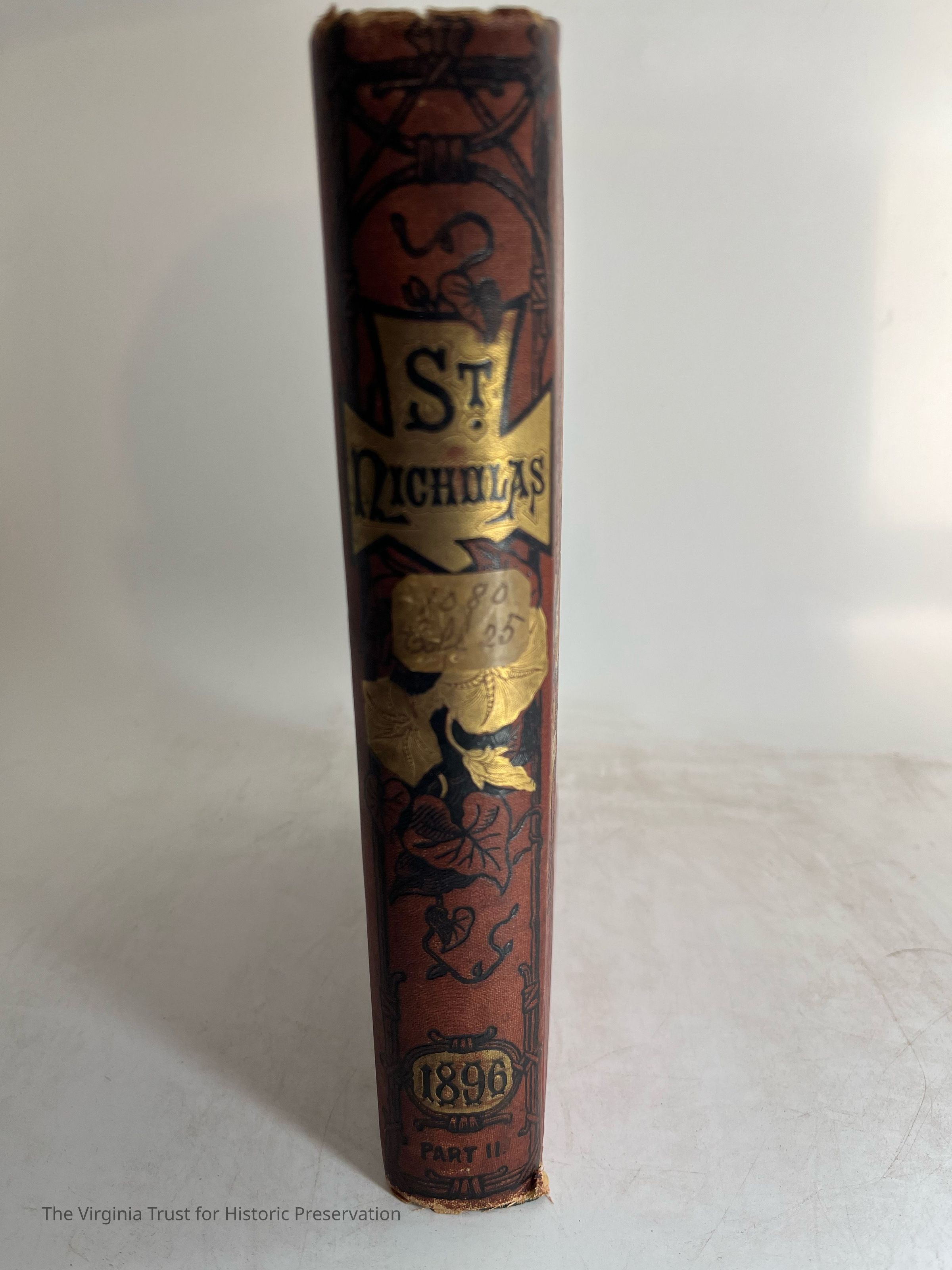 Maroon colored, flower pattern on front cover, good binding, readable spine, sticker on spine