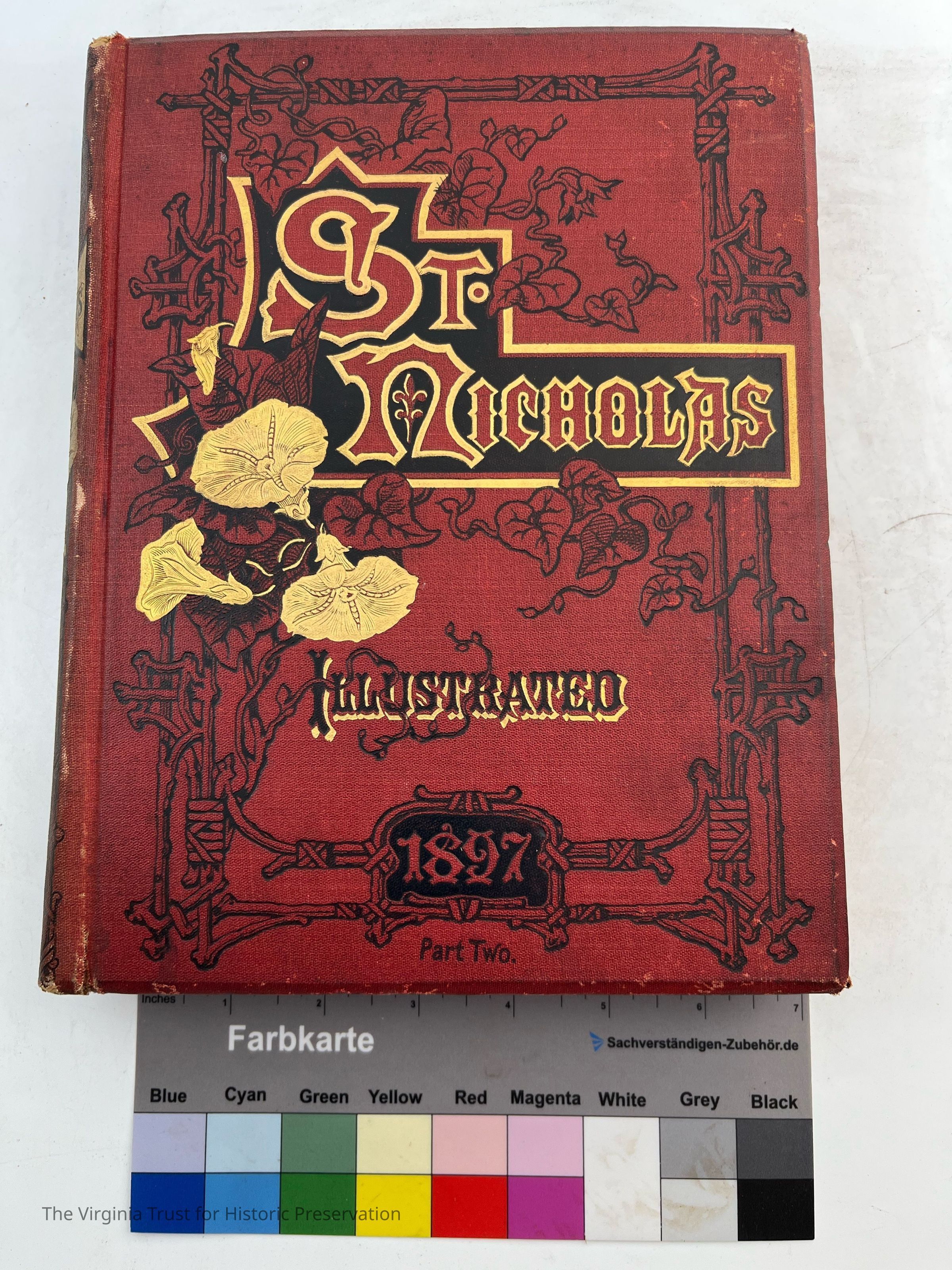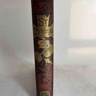 Maroon colored, flower pattern on front cover, good binding, readable spine, sticker on spine