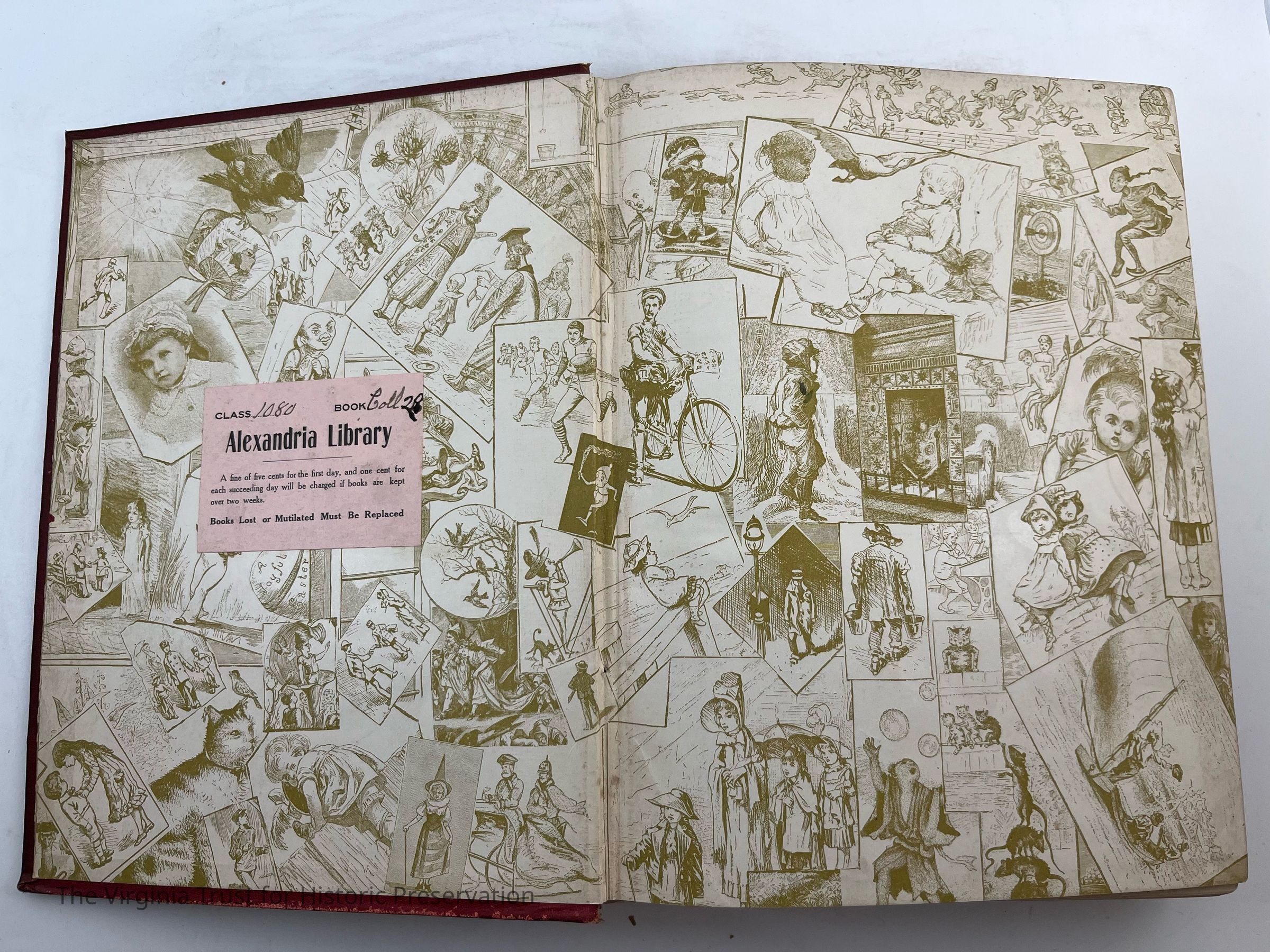 Maroon colored, flower pattern on front cover, good binding, readable spine, sticker on spine