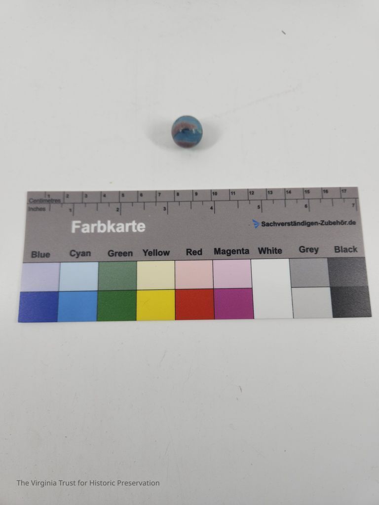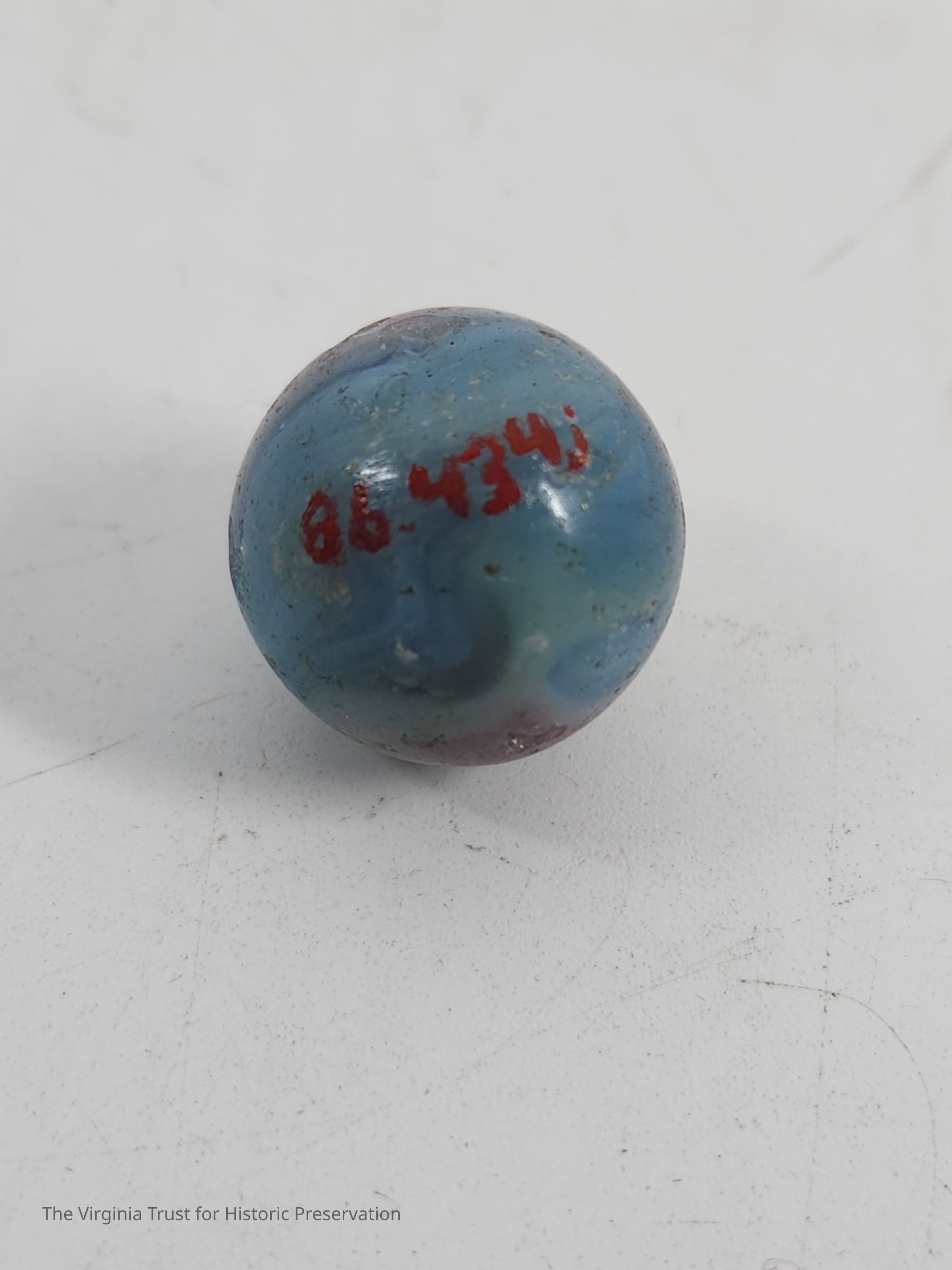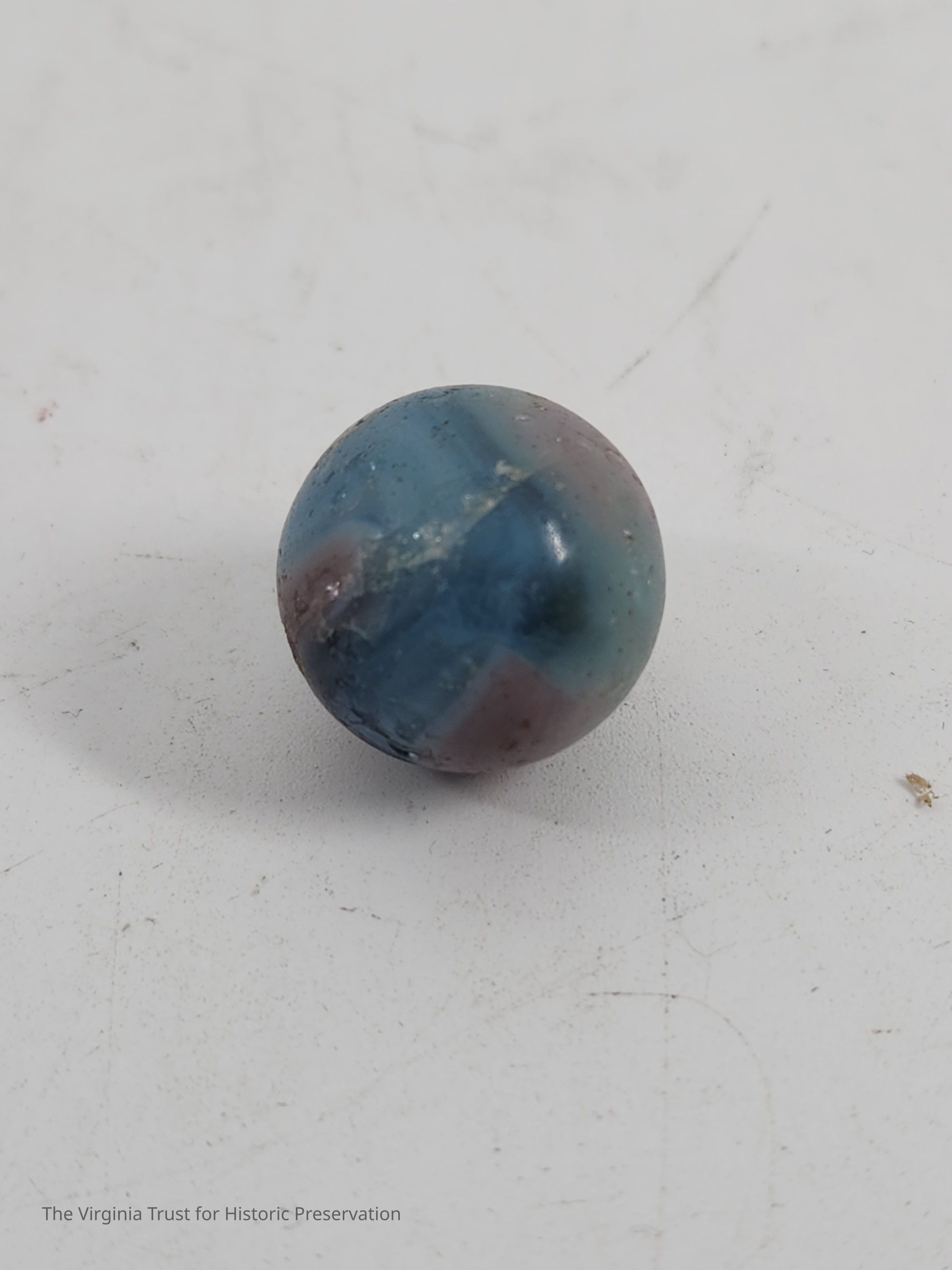 Light purple and light blue marble. One of 11 assorted marbles, various size, design and age.