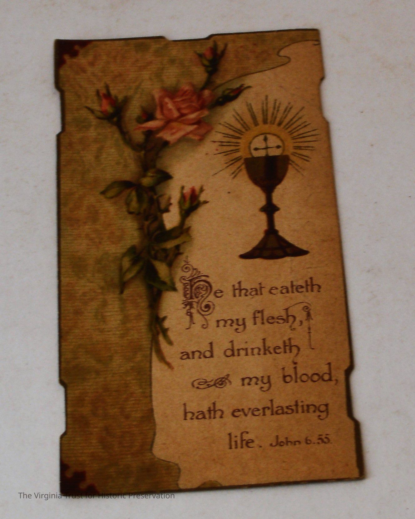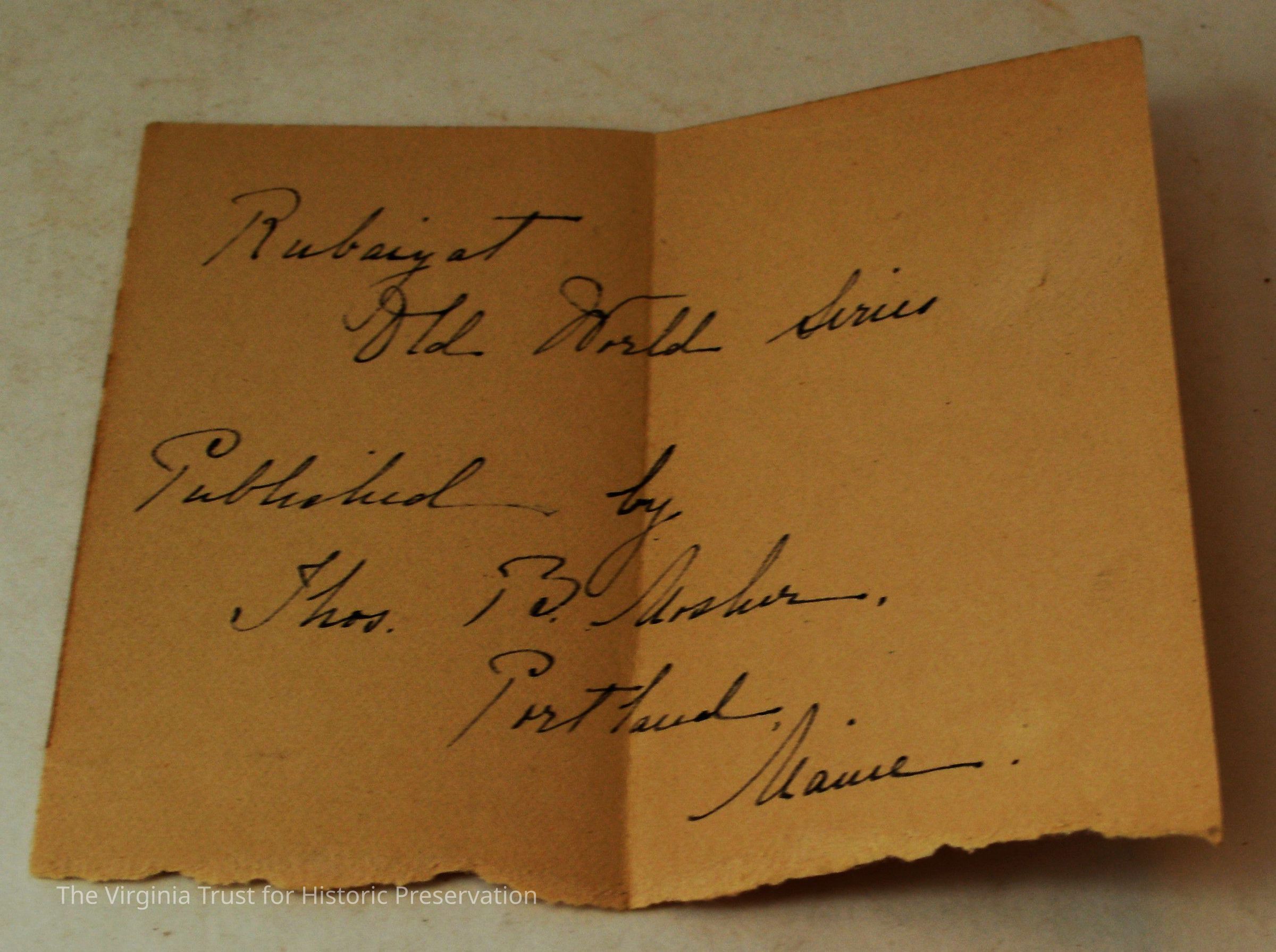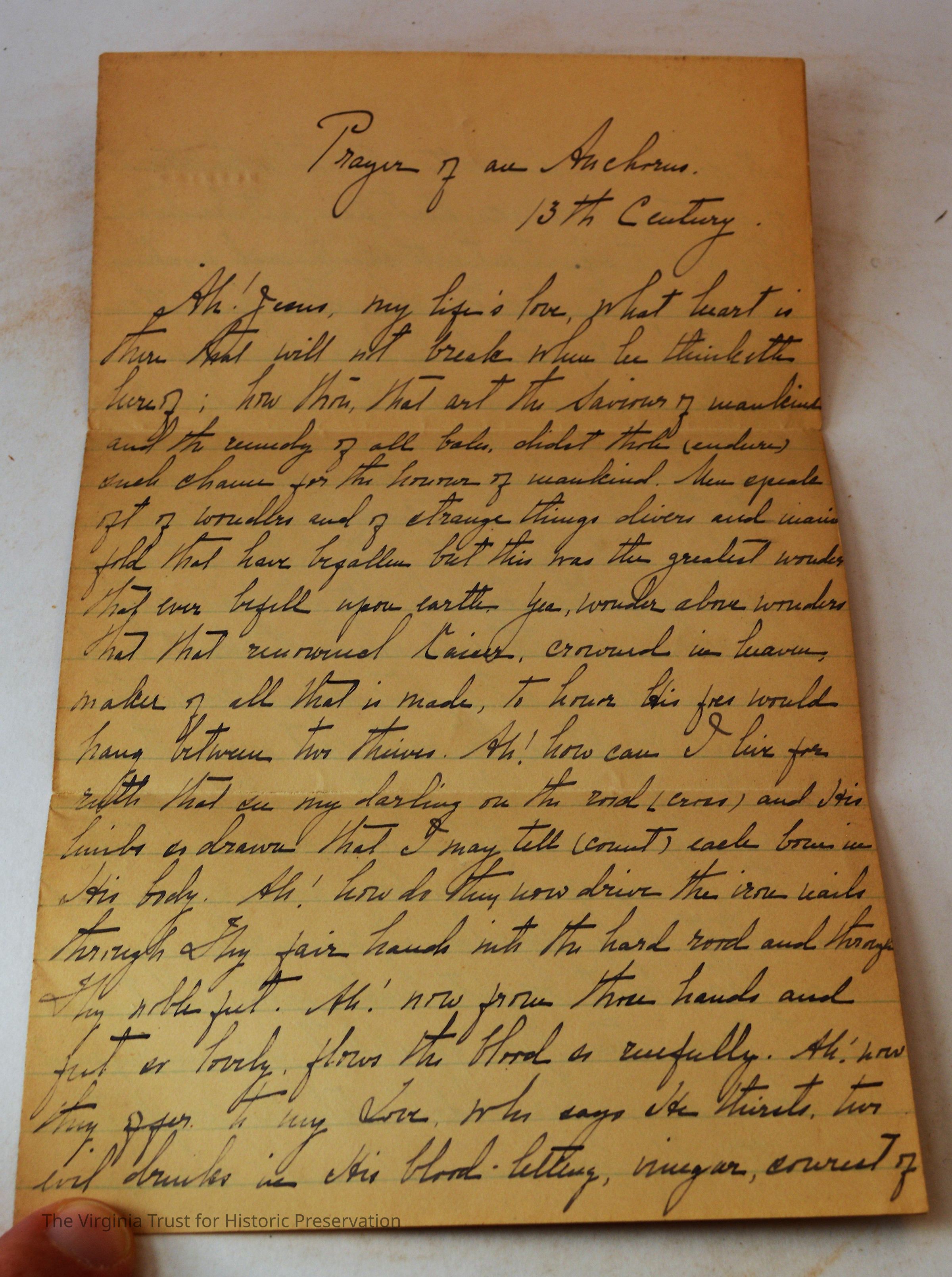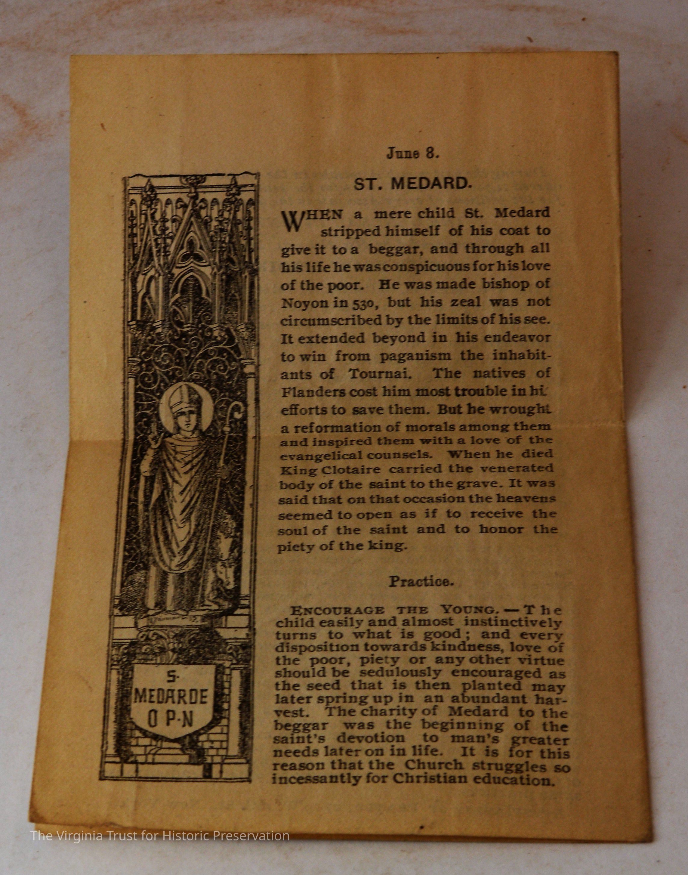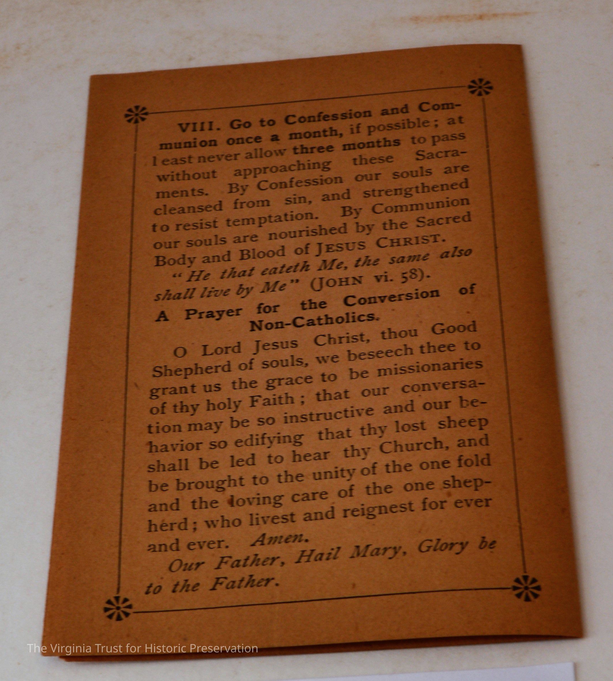 Inserts: 1) Litany of Our Lady of Montligeon in Favour of The Forsaken Souls in Purgatory. [Chapelle-Montligeon, France]: Imprimerie de Montligeon, 1895. 2) newspaper clipping of sayings; 3) lacy cut-out shepherd card; 4) folded lined paper with prayer of [au Auchorus], 13th century, written in pen, with pencil on two folded sheets, addressed to Marie; 5) Apostleship of Prayer League Leaflet; 6) A Pious Contract with Our Savior, Jesus Christ; 7) two book titles on scrap of paper; 8) Offerings to the Infant Jesus prayer card; 9) A Remembrance of the Mission of the Paulist Fathers; 10) folded scrap of lined paper with prayer [?], addressed to Antoinette; 11) two leaves; 12) lacy cut-out A Visit to the Crib card; 13) lacy cut-out Le saint temps de Noel card; 14) communion card; 15) In Honor of the Sacred Heart of Jesus